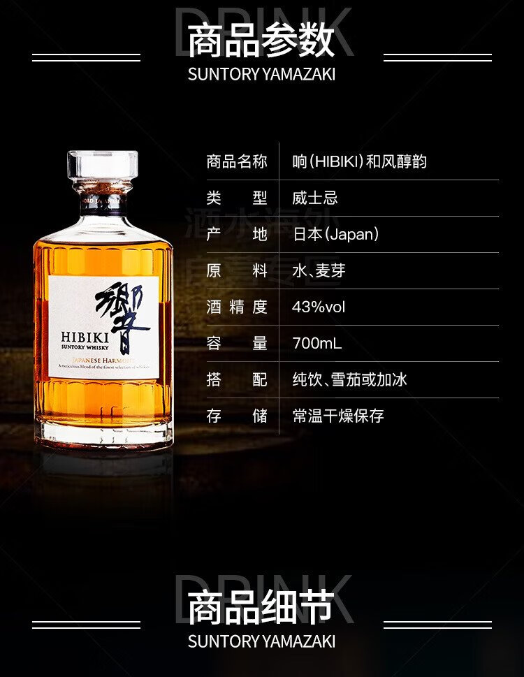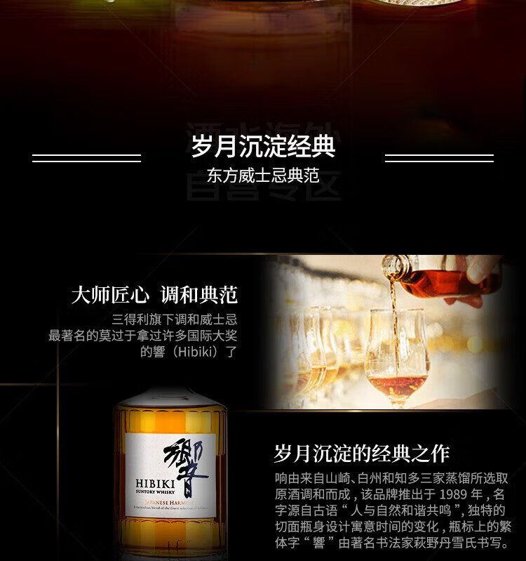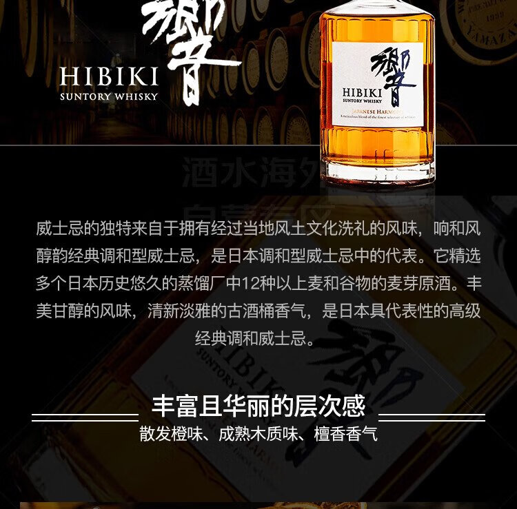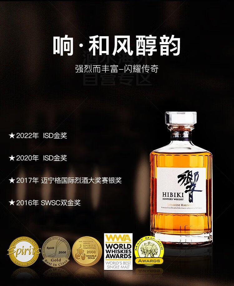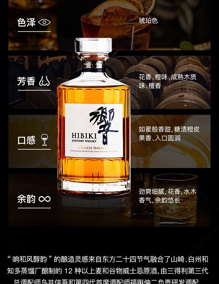 响(Hibiki)和风醇韵 日本 调和型威士忌 700ml 43度 进口洋酒 裸瓶装