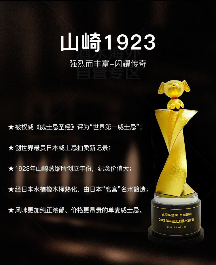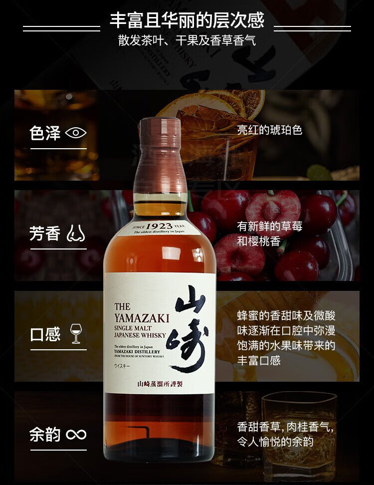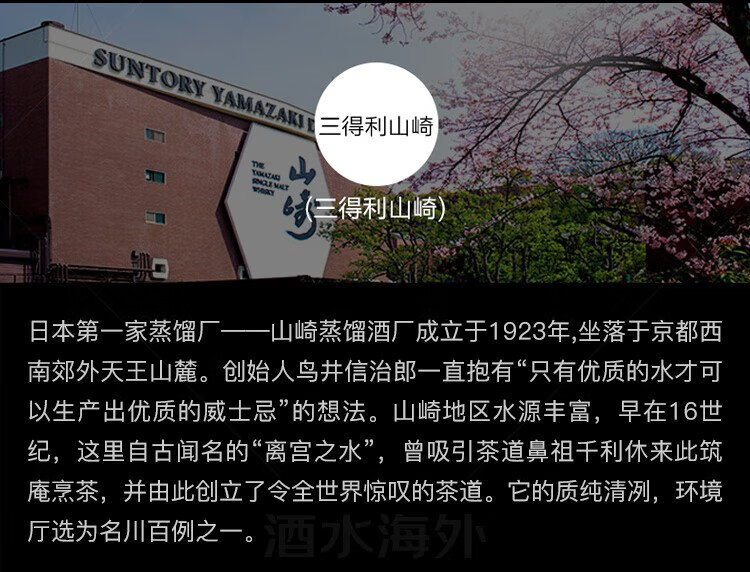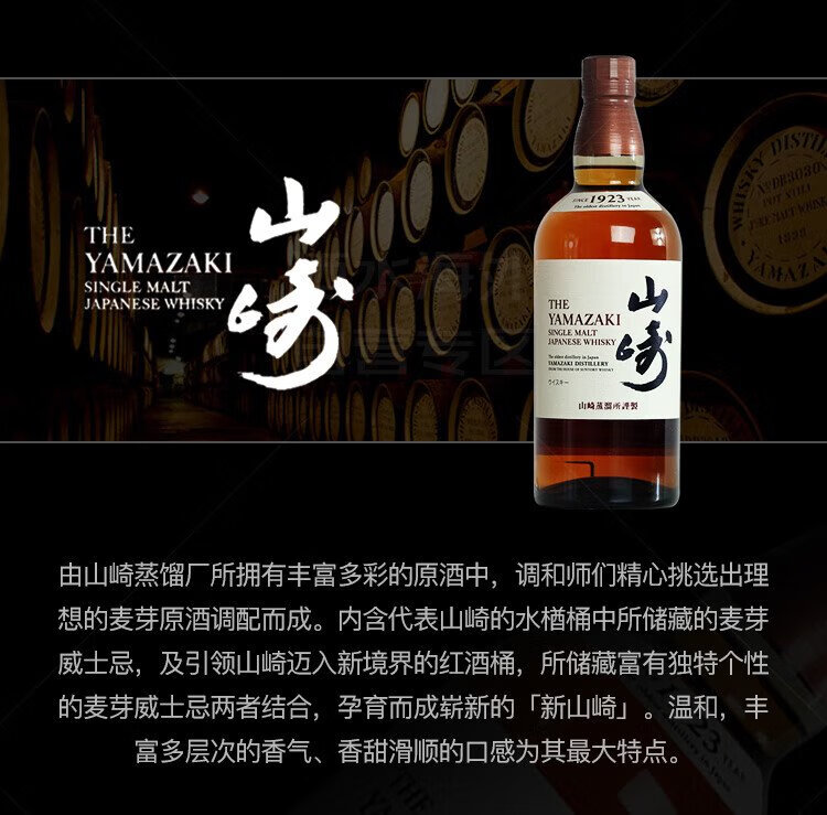 山崎(Yamazaki)1923 日本 单一麦芽威士忌 700ml 43度 进口洋酒