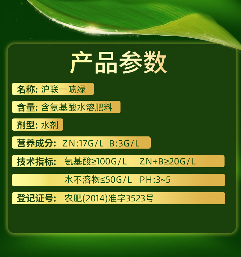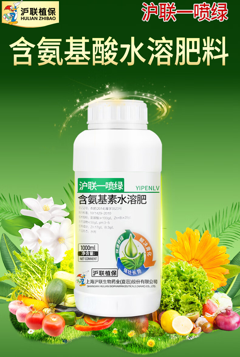 沪联植保沪联一喷绿含氨基酸水溶肥果树蔬菜园林黄叶卷叶快绿叶靓叶叶面肥