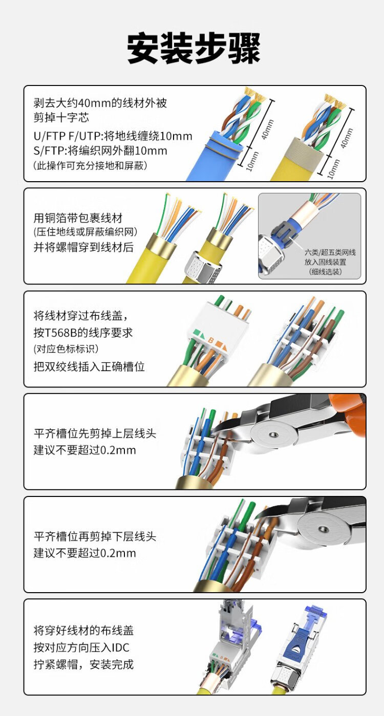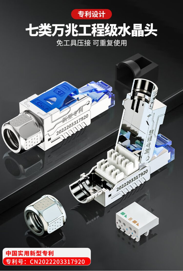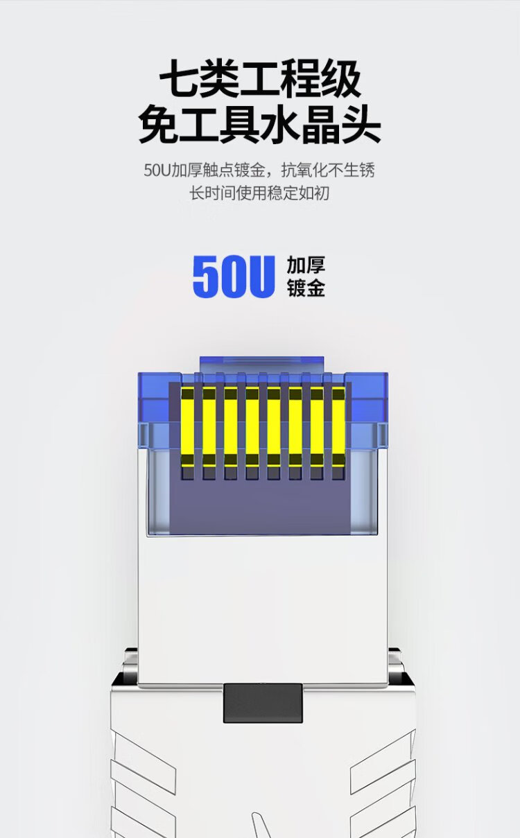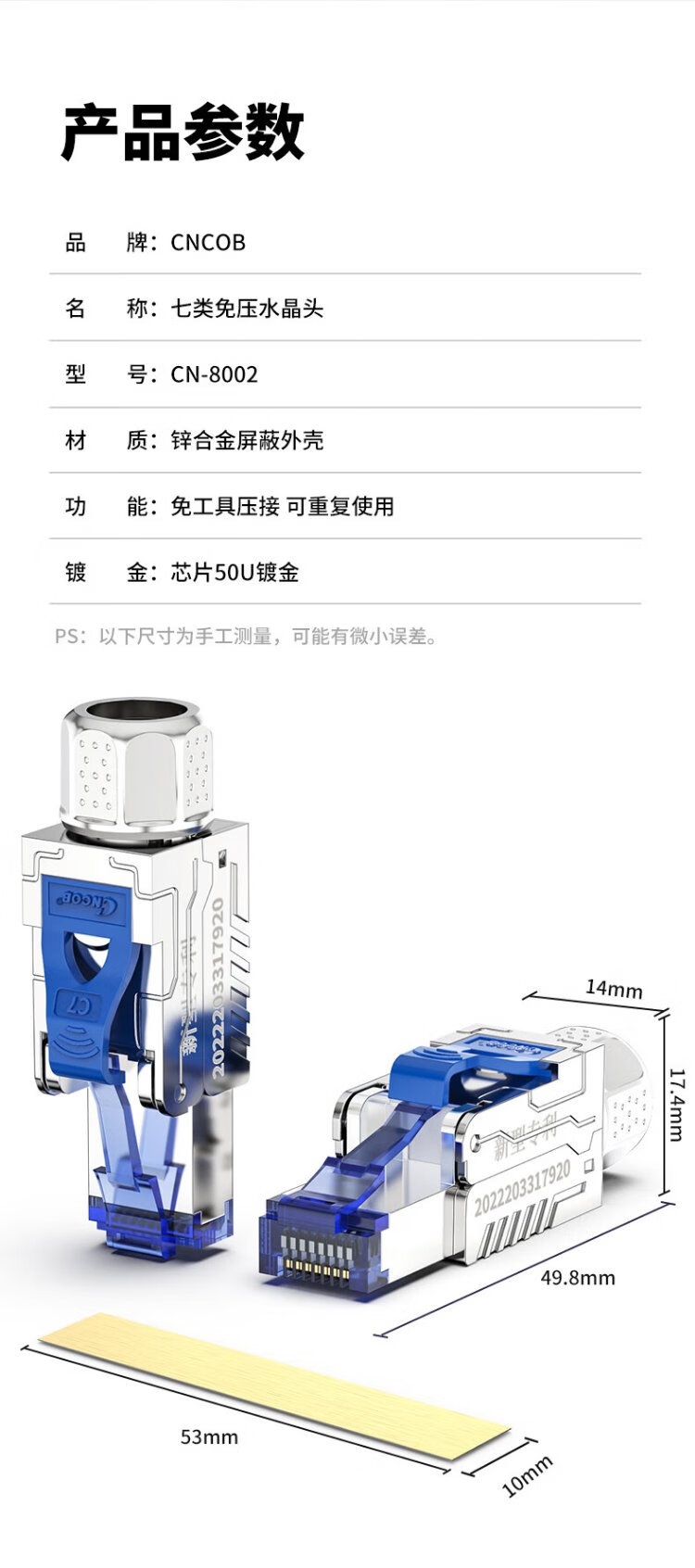 CNCOB Category 7 network cable voltage-free crystal plug, engineering-grade CAT7 10G network voltage-free crystal plug, 1 piece set CN-8002