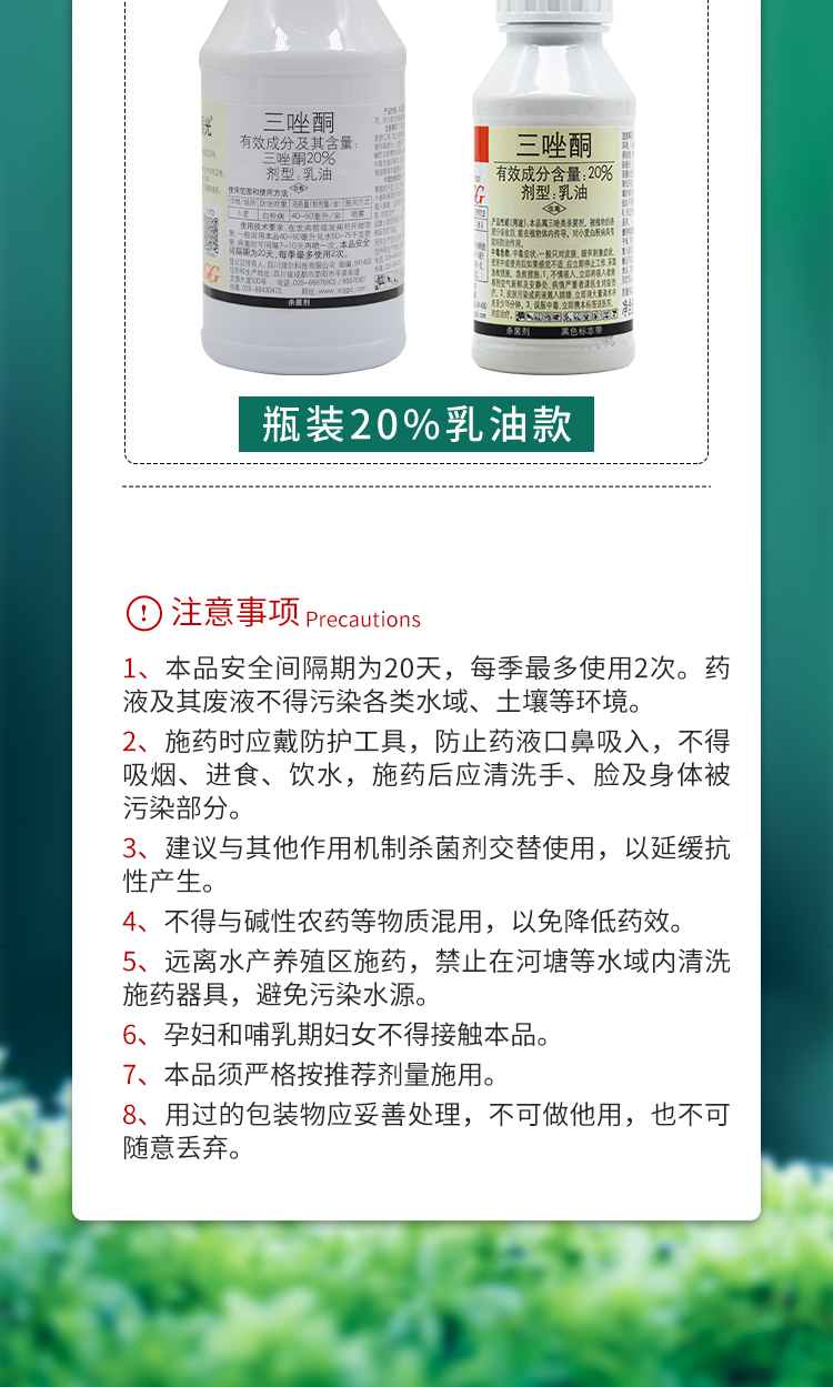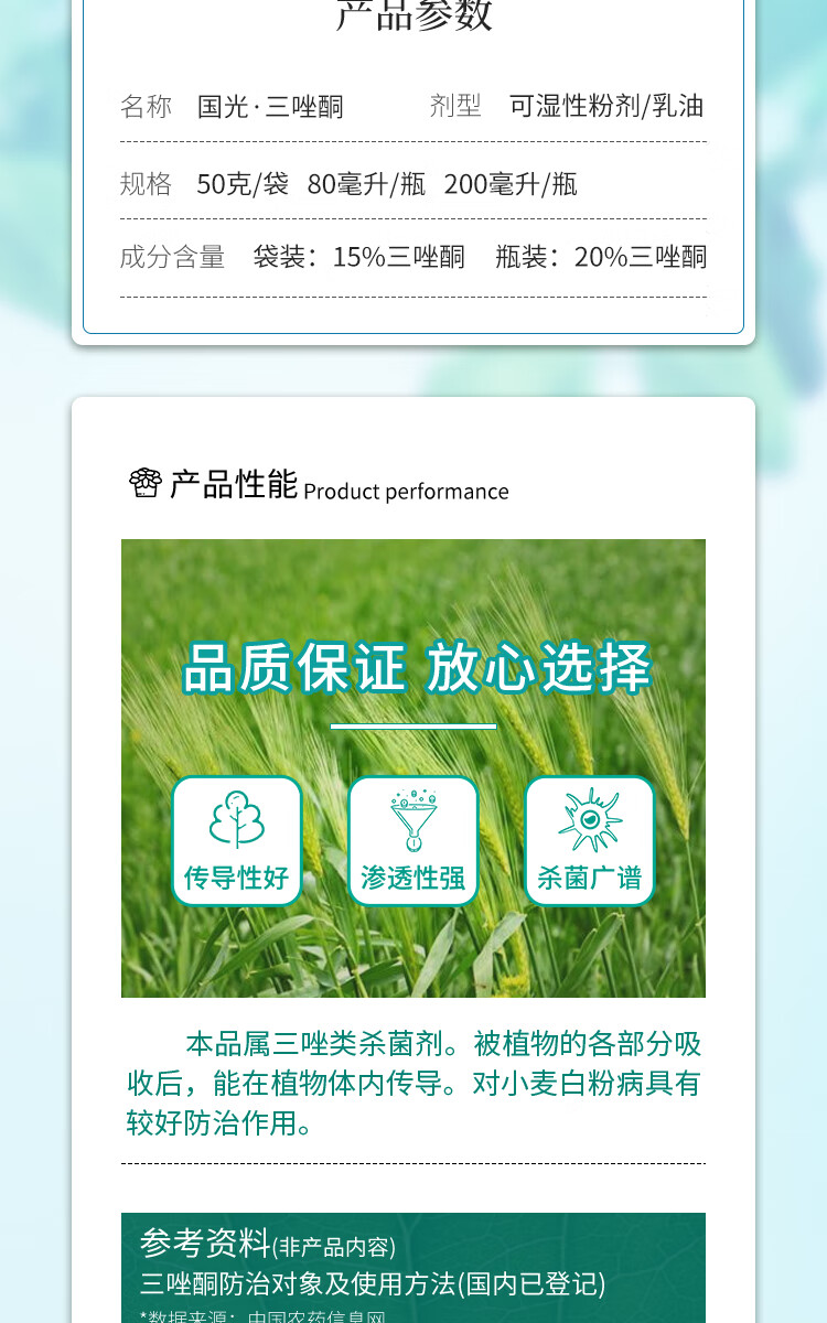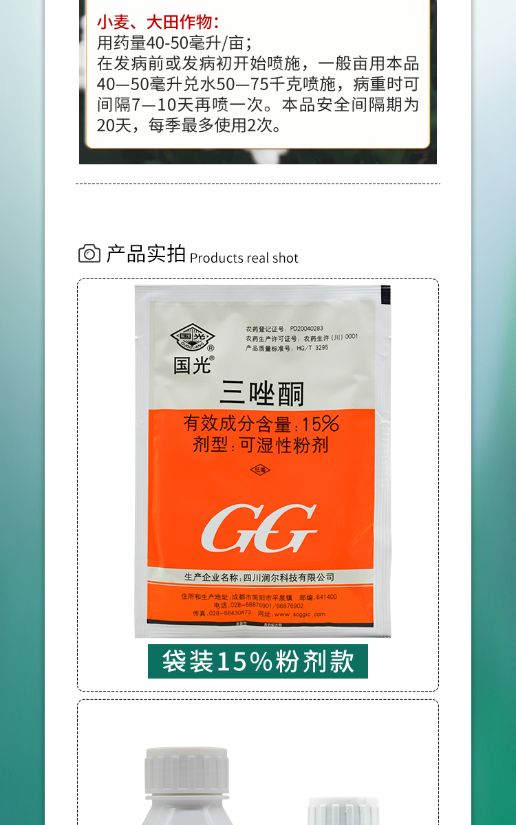 国光20%三唑酮花卉植物果树白粉病粉锈宁黄瓜植物锈病农药杀菌剂200ml