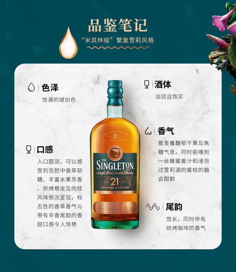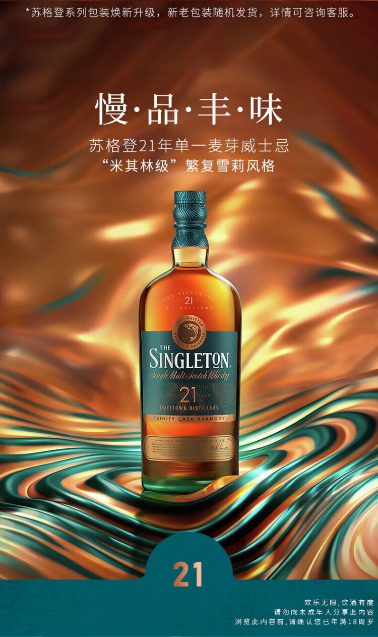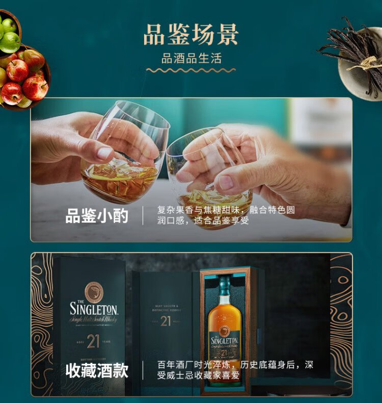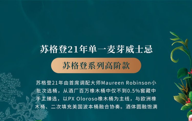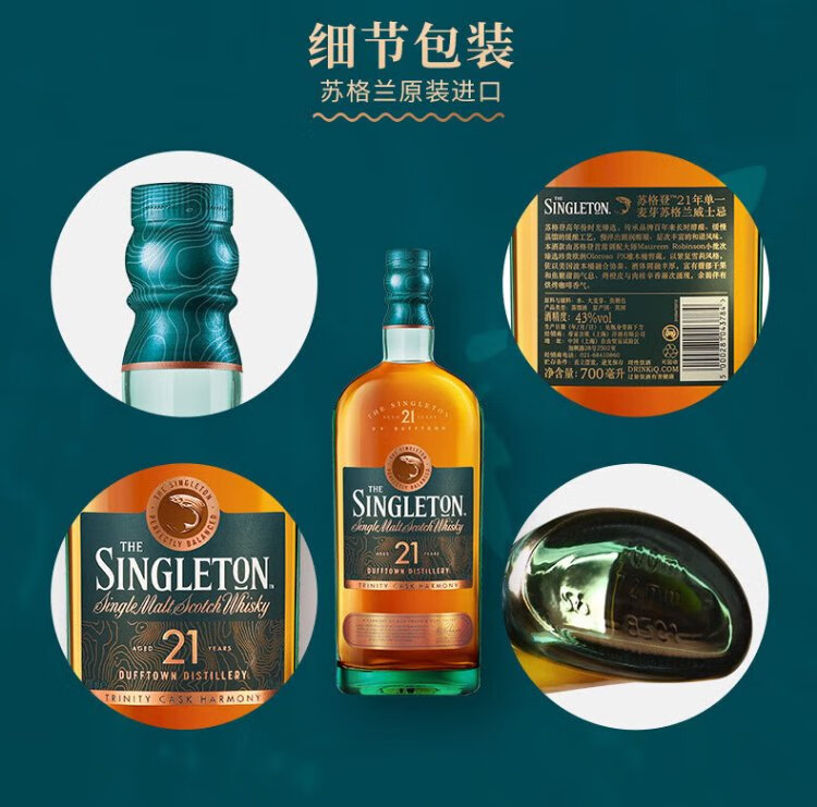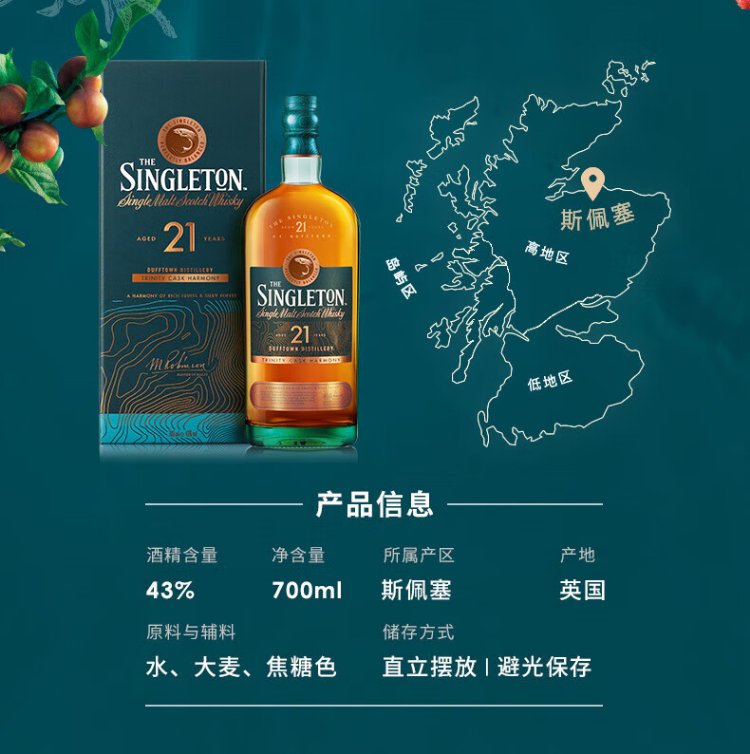 苏格登(Singleton)21年 达夫镇 苏格兰威士忌 700ml 43度 礼盒装 洋酒