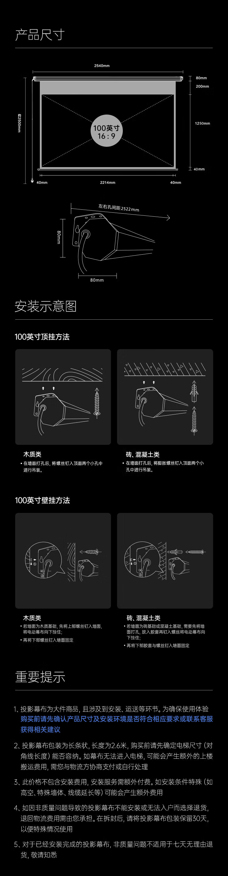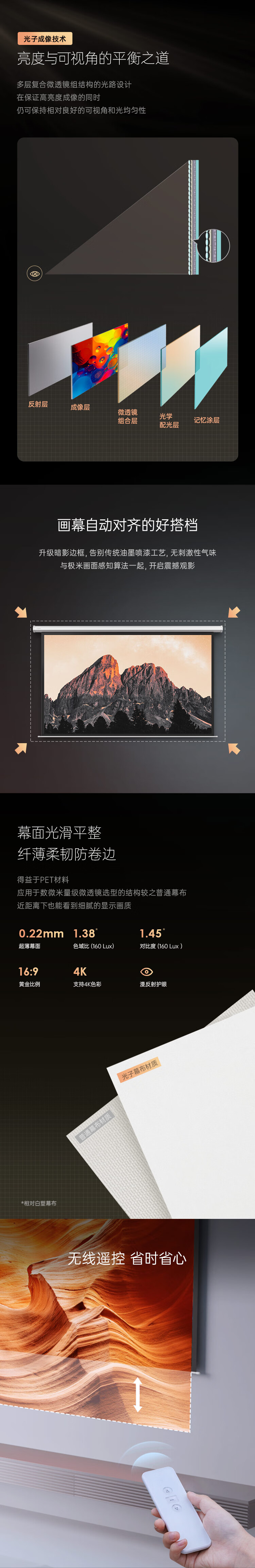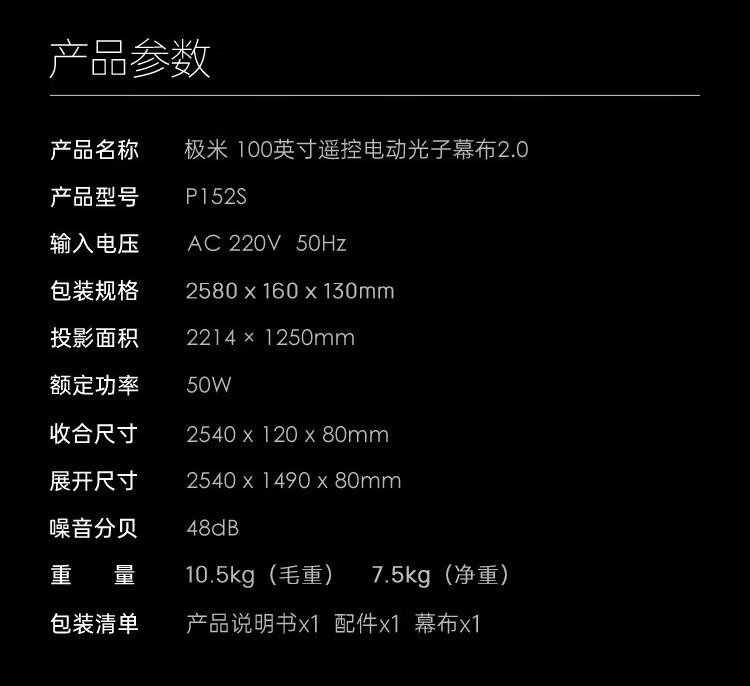极米(XGIMI )100英寸16:9遥控电动光子幕布2.0(更大可视角度 卷边自动恢复 画面更亮更好看)