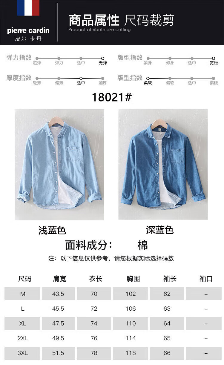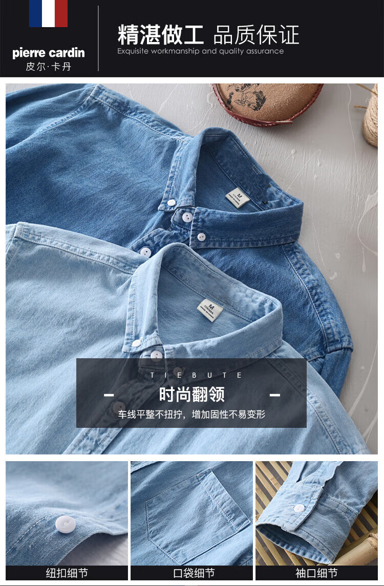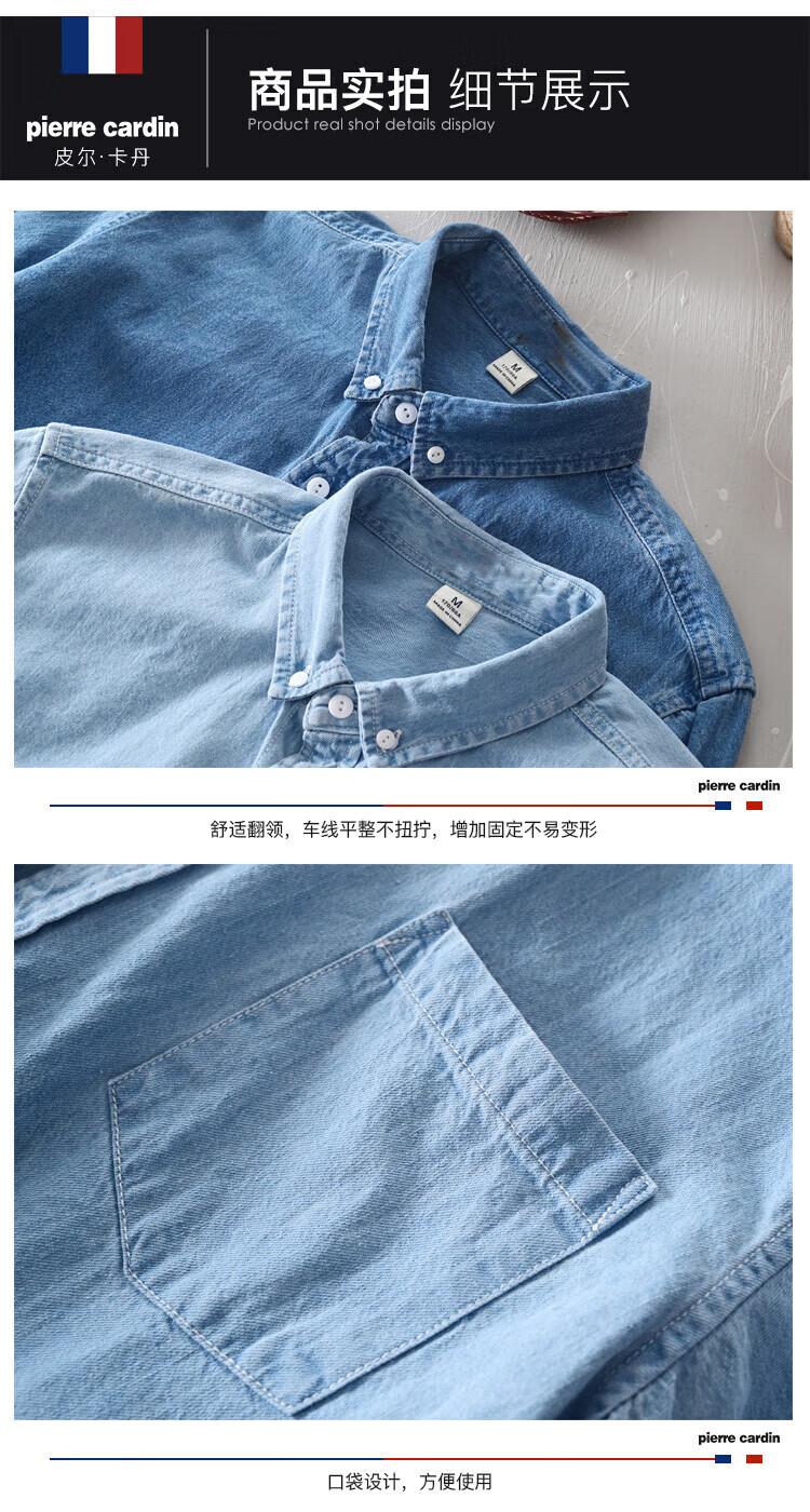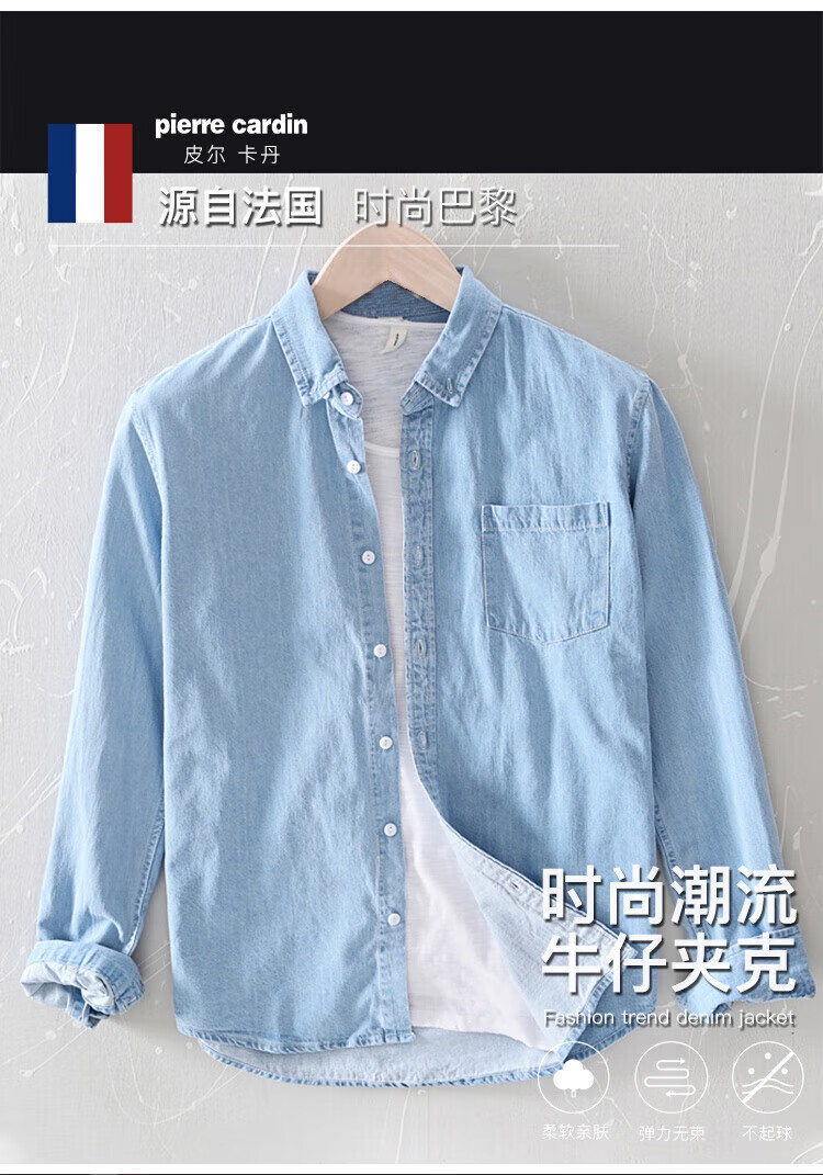 Рубашка Pierre Cardin, мужская зимняя, приятная для кожи, мягкая модная тонкая джинсовая рубашка с длинными рукавами, мужской джинсовый светло-голубой размер L
