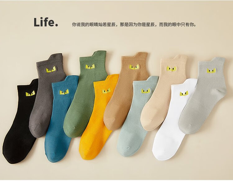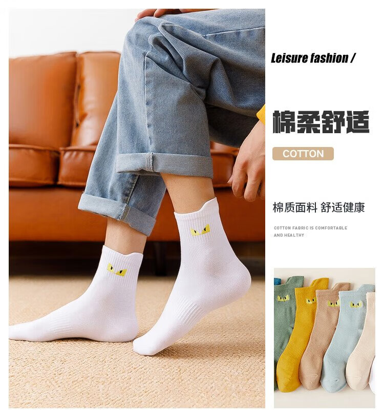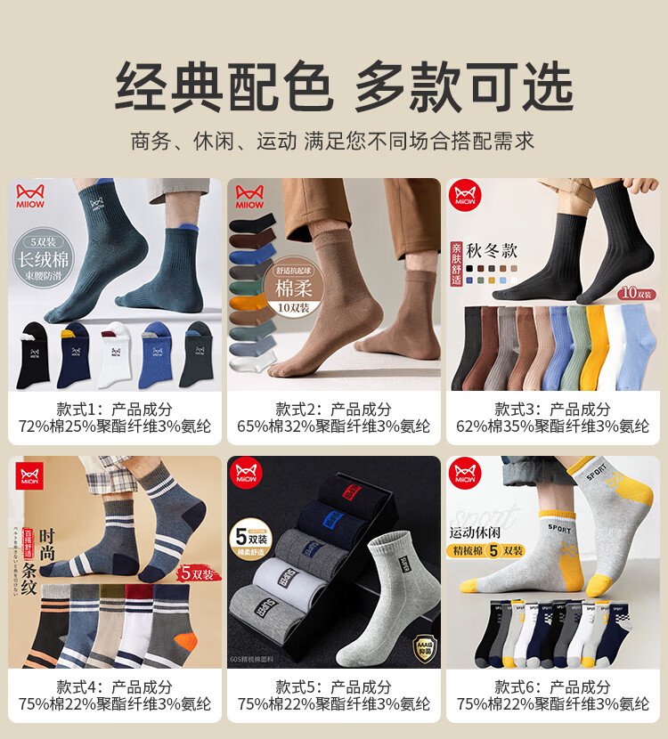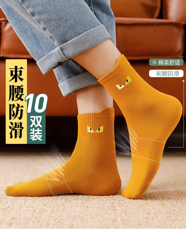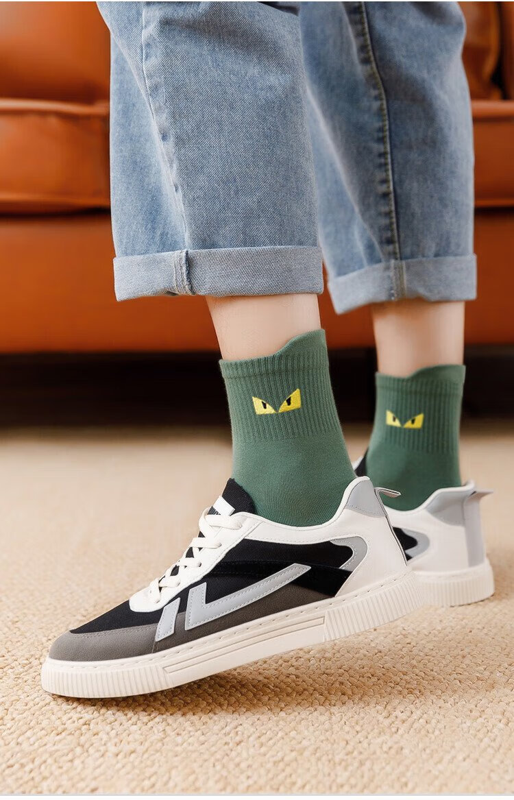 猫人10双装男士袜子男秋冬中筒袜棉袜男休闲棉袜运动篮球袜男潮袜