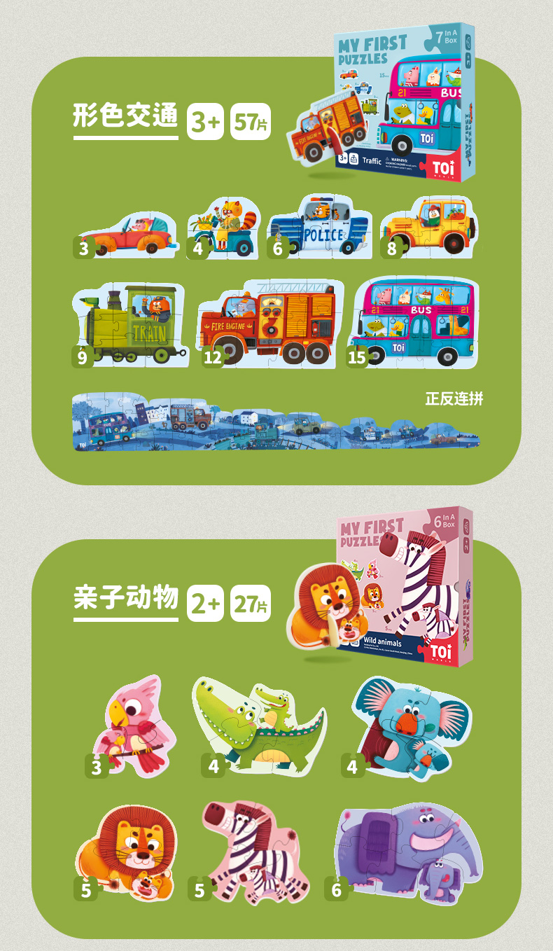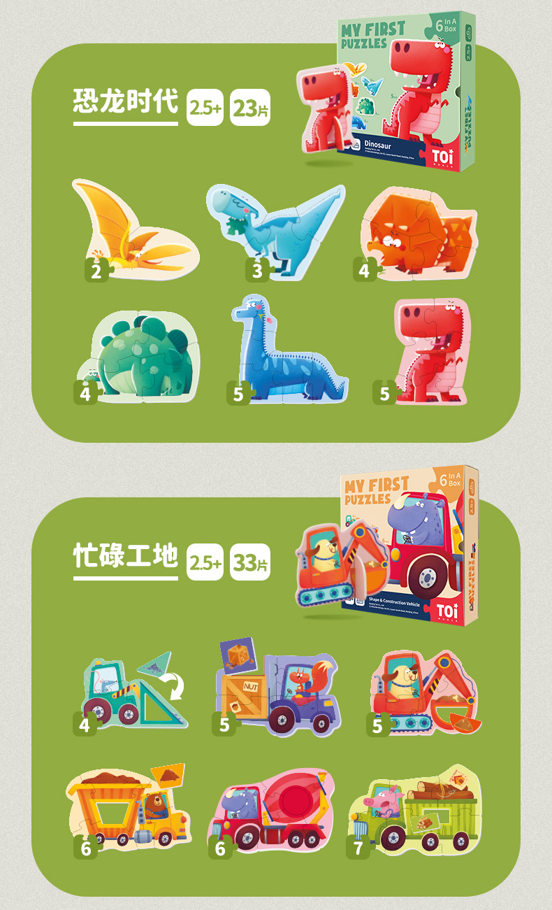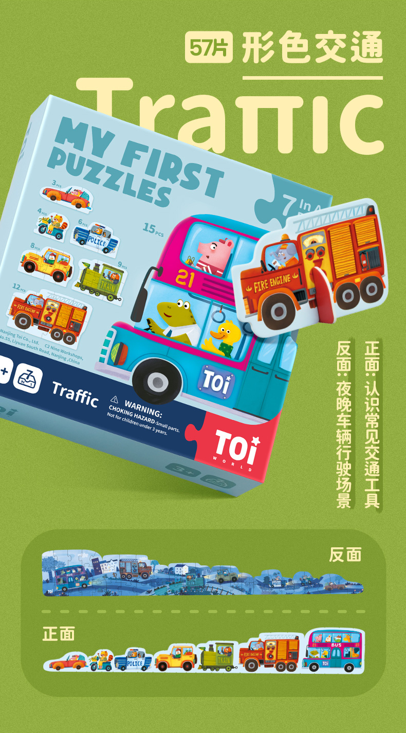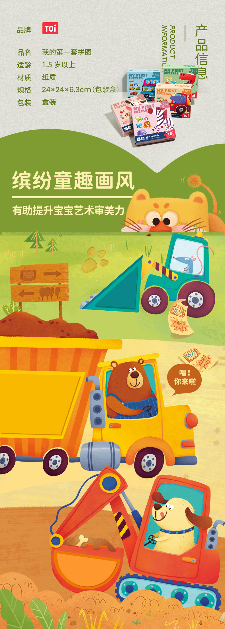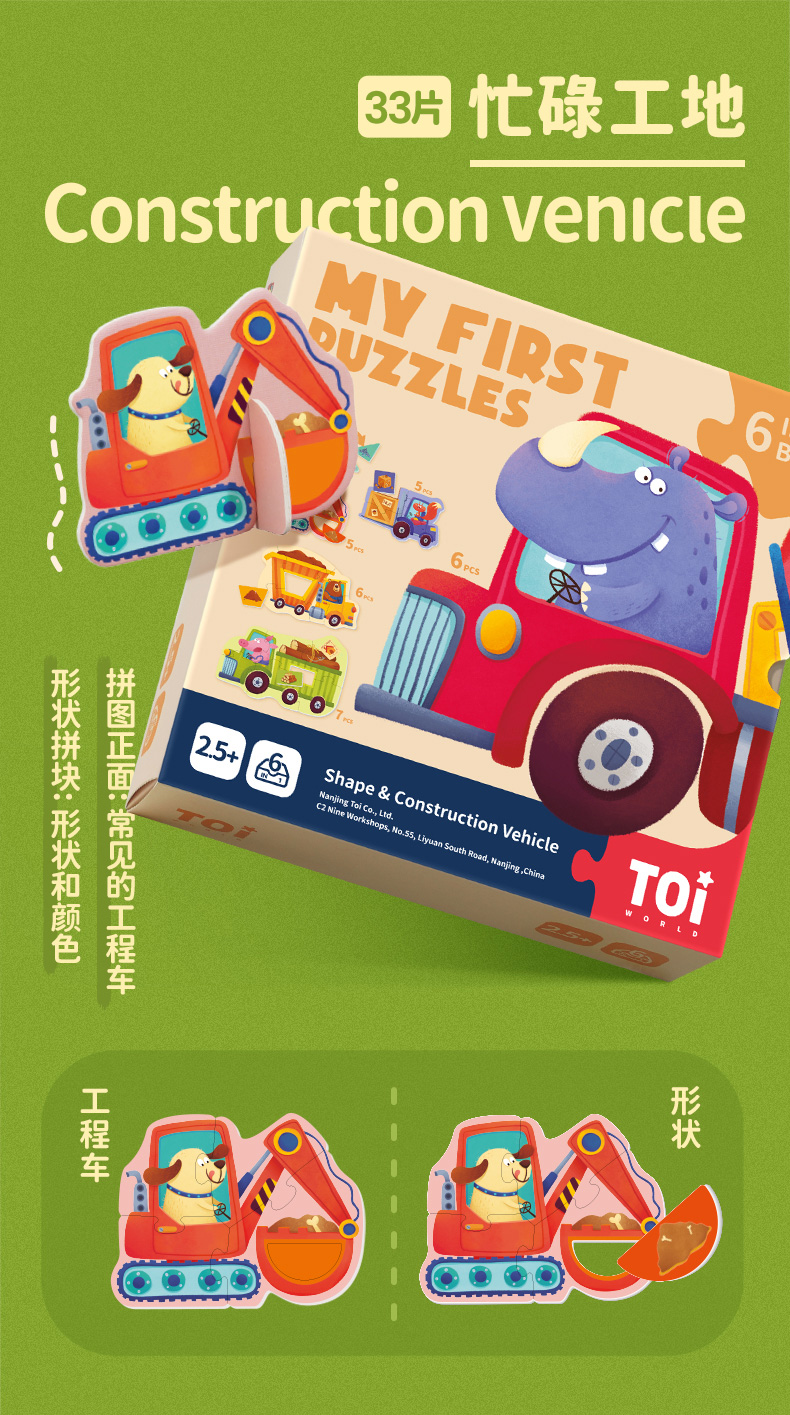 TOI children's puzzle toys early education large piece of paper boys and girls toys Christmas gift 2-year-old baby shape engineering vehicle