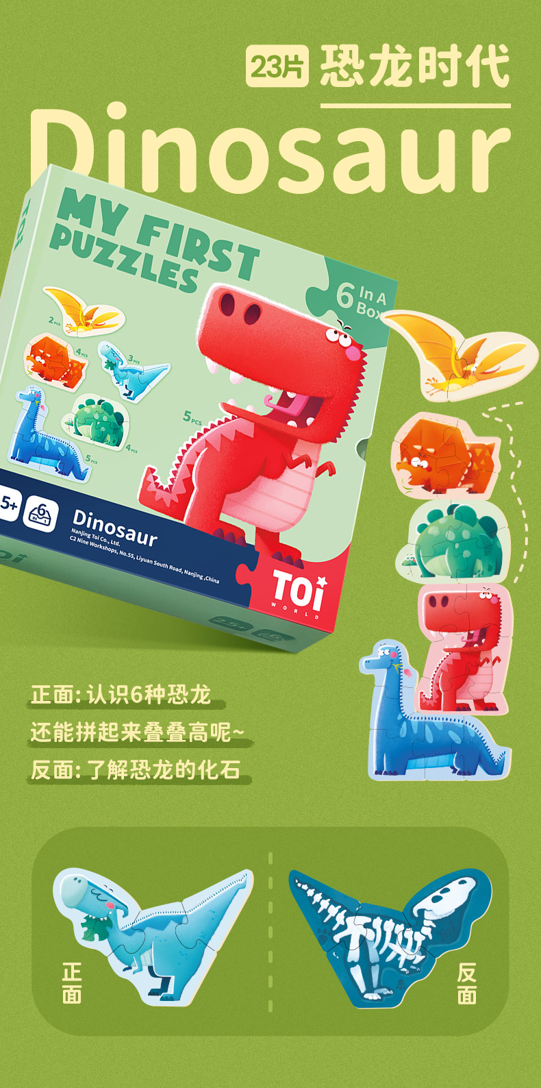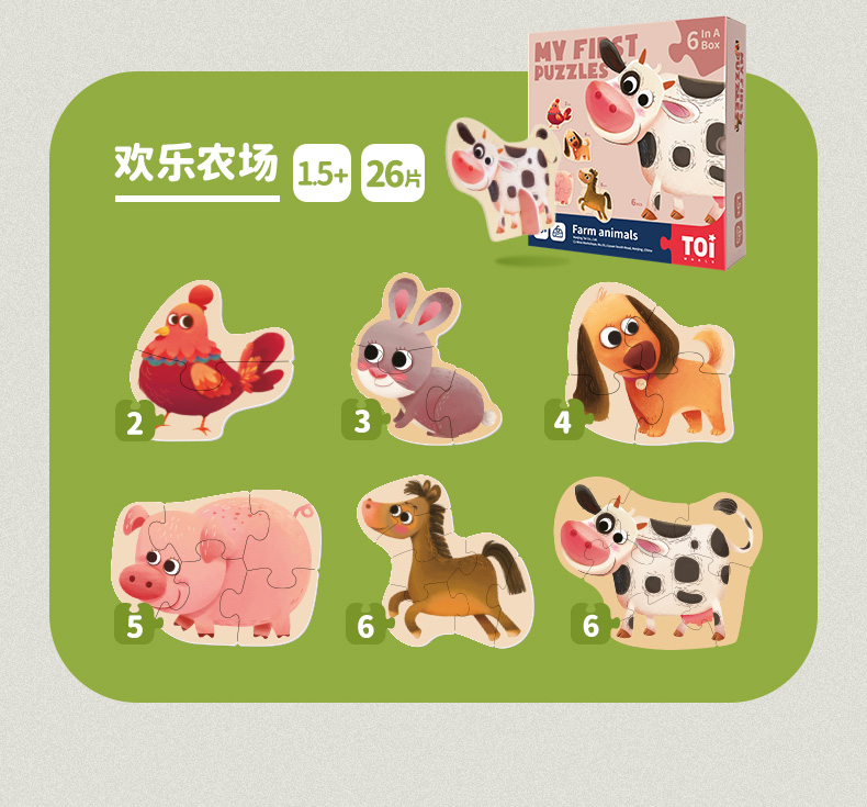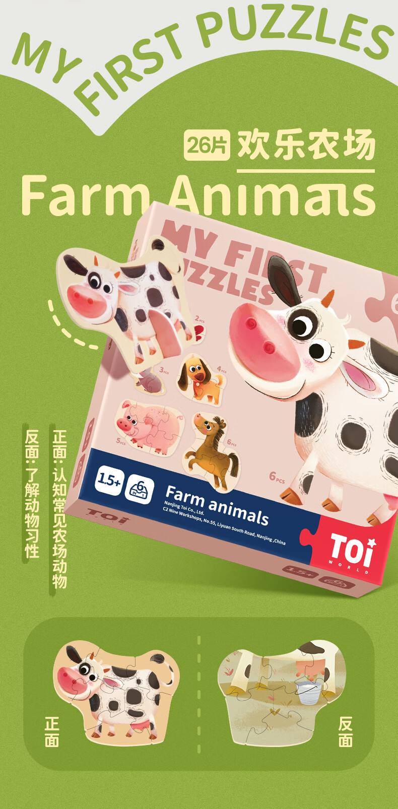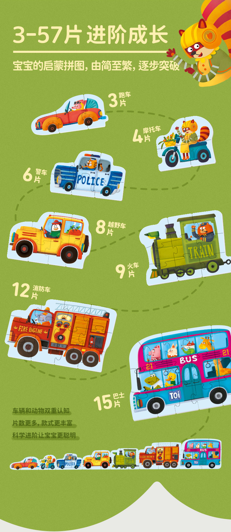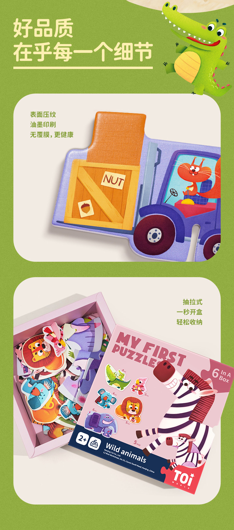 TOI children's puzzle toys early education large piece of paper boys and girls toys Christmas gift 2-year-old baby shape engineering vehicle