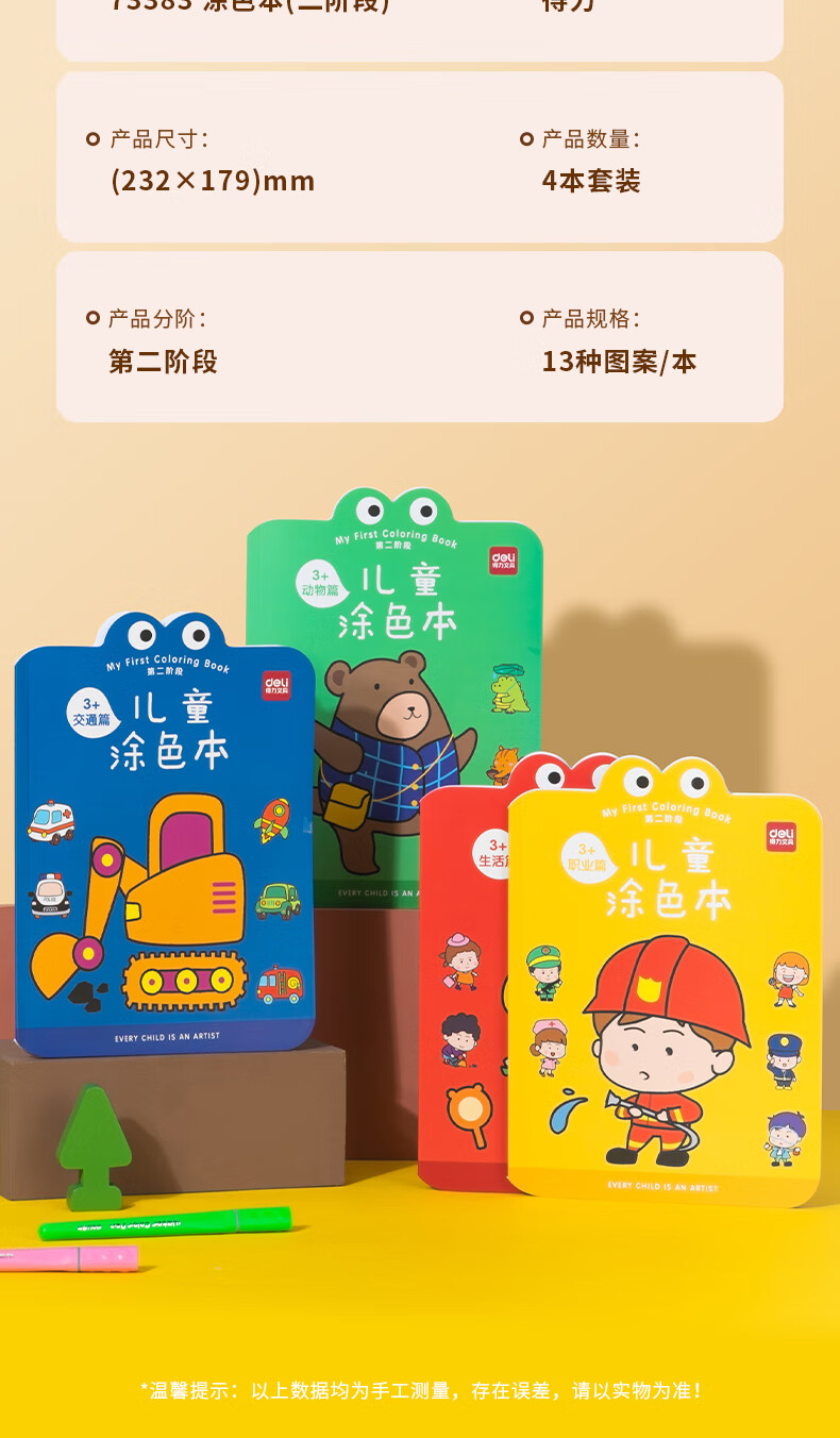 Deli – livre d'images pour enfants, livre de peinture, livre de coloriage pour tout-petits de 3 à 6 ans, paquet de 4, jouet de rentrée scolaire, cadeau d'anniversaire, 73383