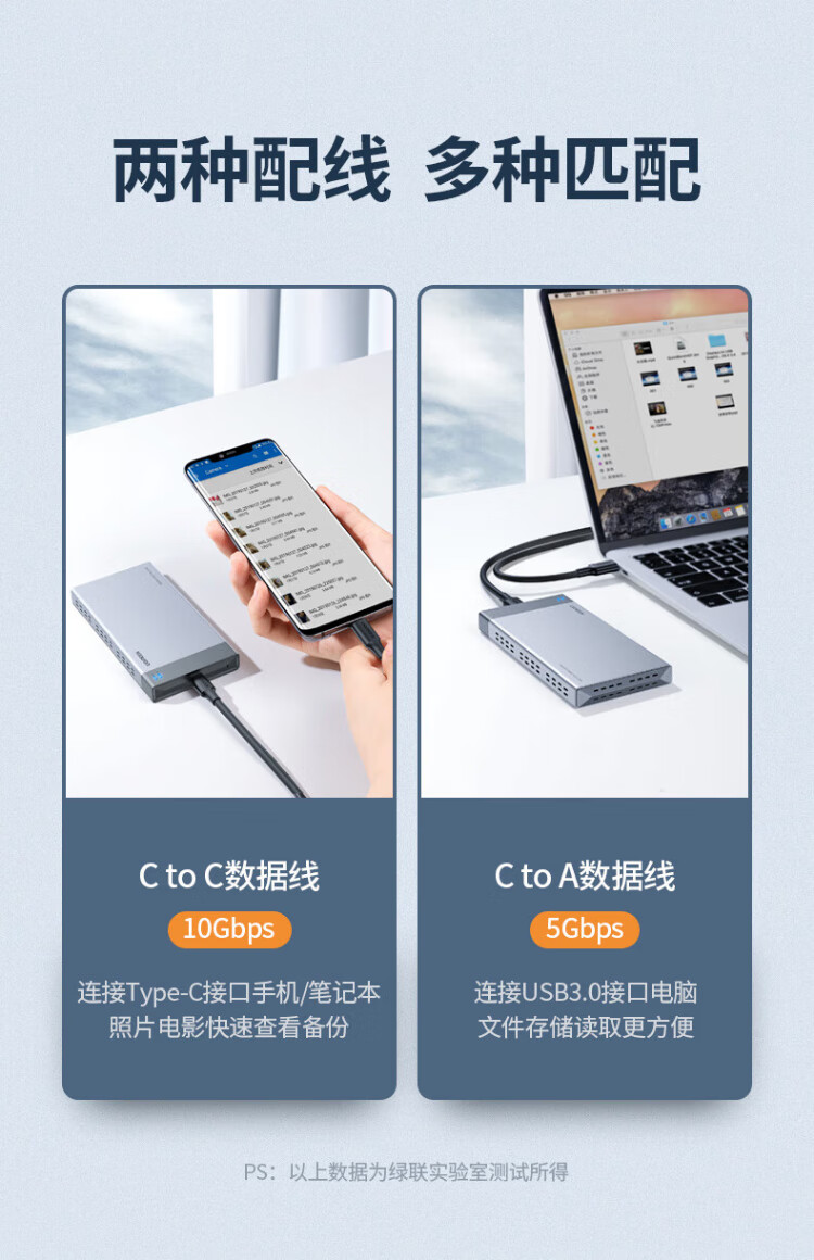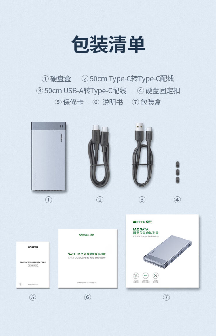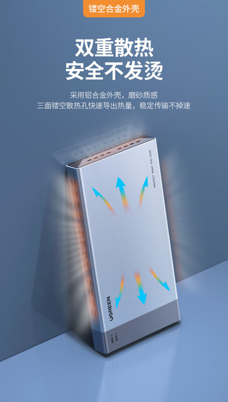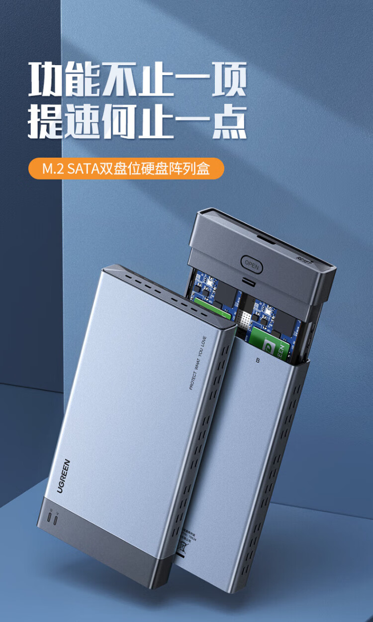 绿联  M.2磁盘阵列硬盘盒 双盘多盘位硬盘笼(带RAID存储)外置硬盘仓 适用SATA串口机械固态移动硬盘