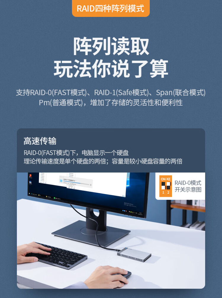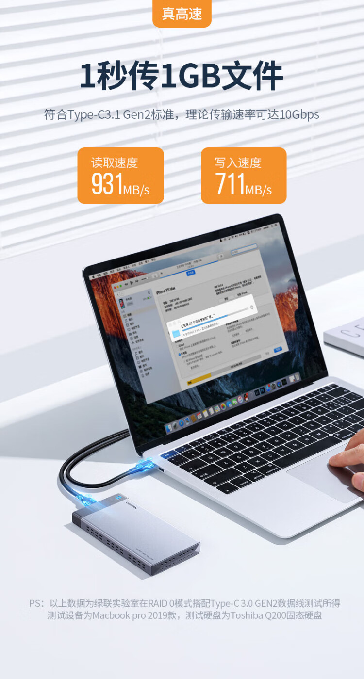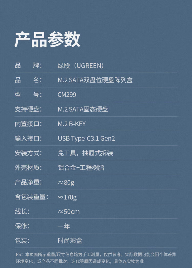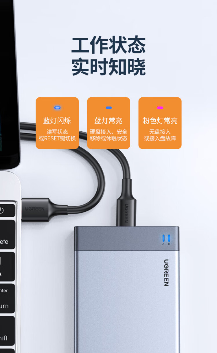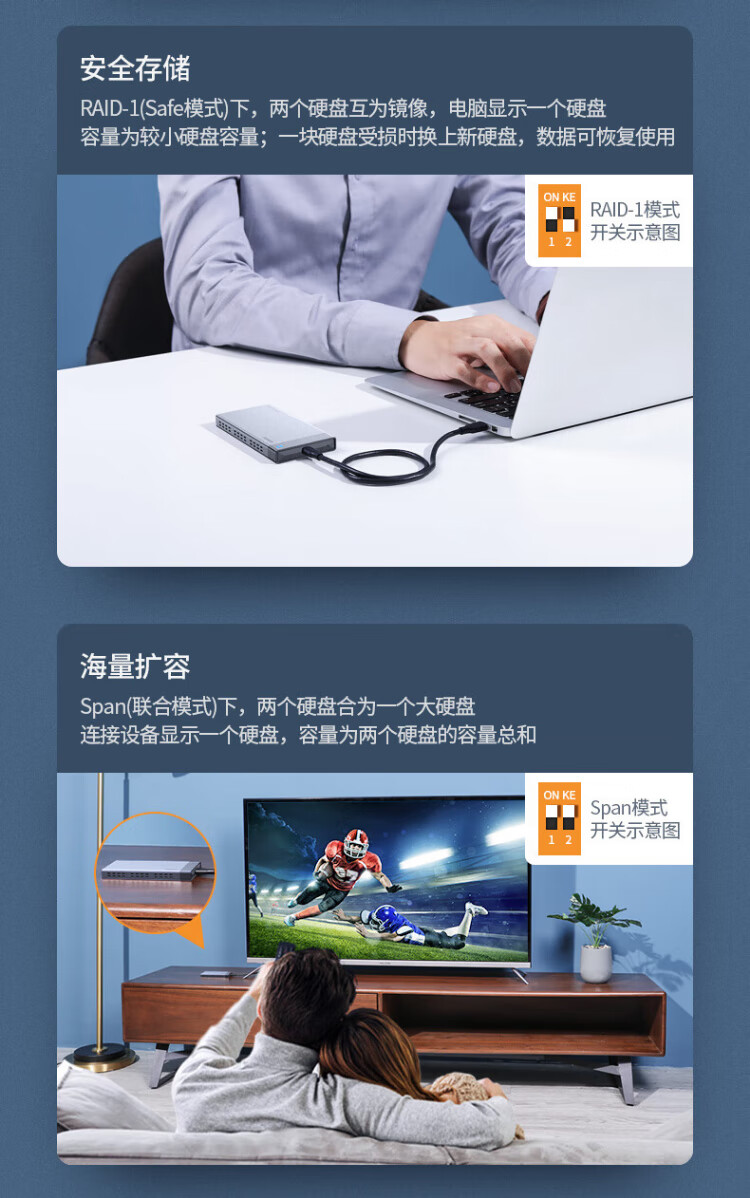 绿联  M.2磁盘阵列硬盘盒 双盘多盘位硬盘笼(带RAID存储)外置硬盘仓 适用SATA串口机械固态移动硬盘