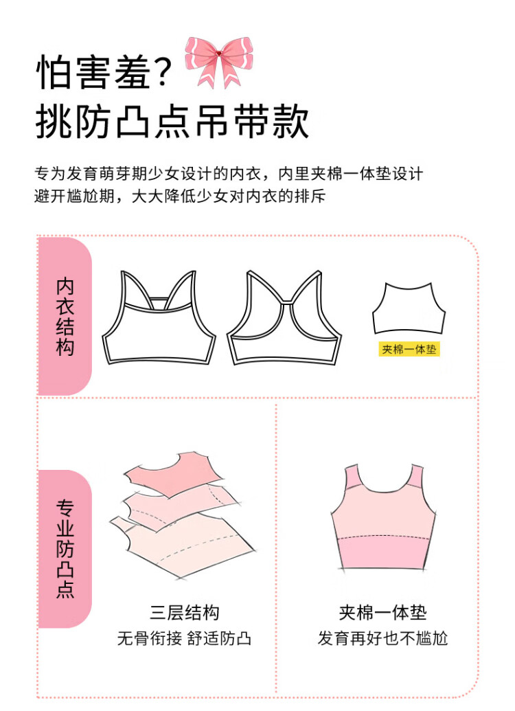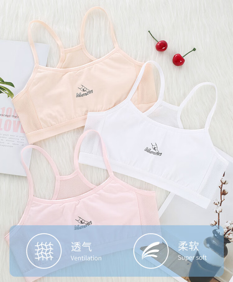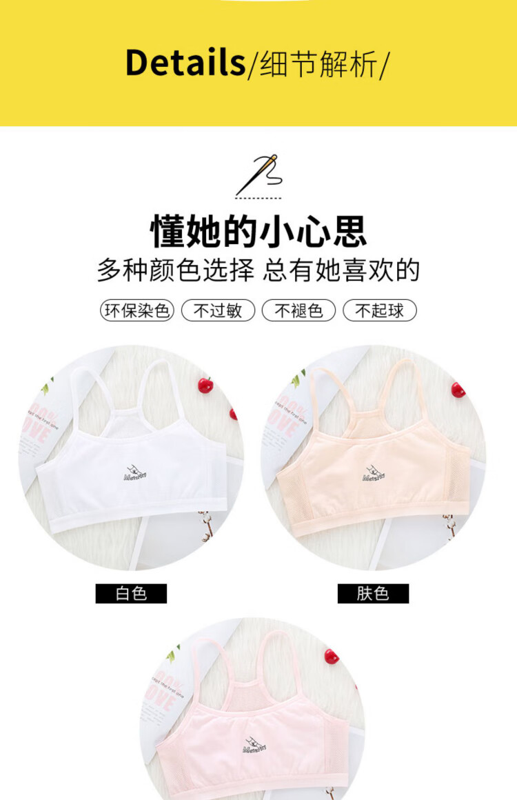 俞兆林2件装儿童内衣女纯棉小背心青春发育期9-12岁小初中学生少女文胸