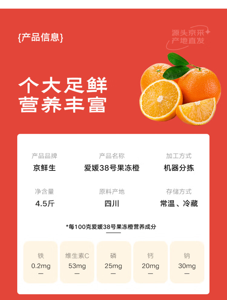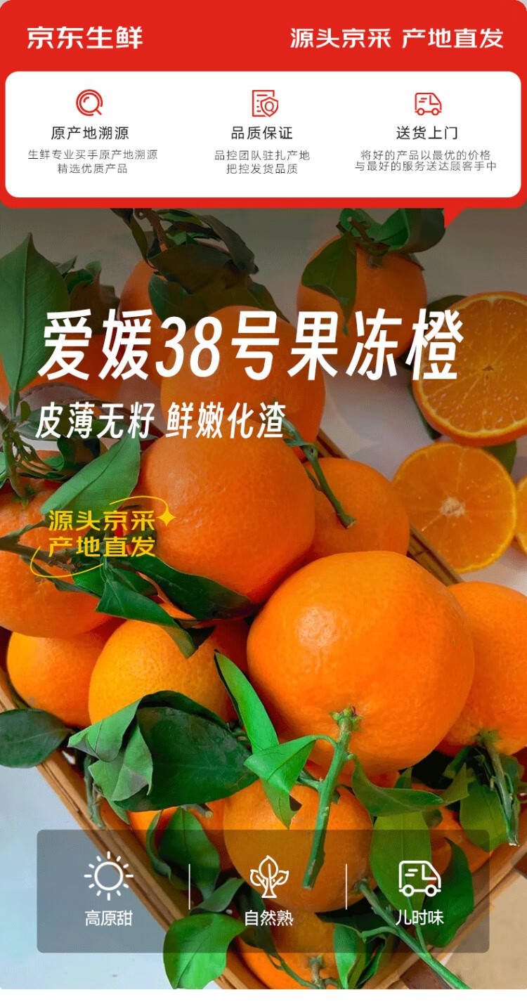 Jingxiansheng Sichuan Ehime No. 38 Jelly Orange 4.5-5 Jin Jin is equal to 0.5 kg, single fruit 65mm+, fresh with leaves, straight from the source