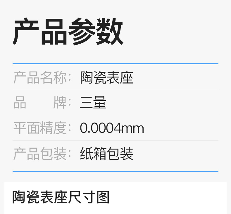 三量大理石百千分表陶瓷表座支架花岗石高度规比测台测量座平台 JD201 200*300mm直身杆(00级)