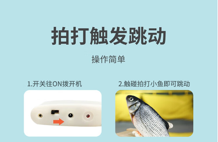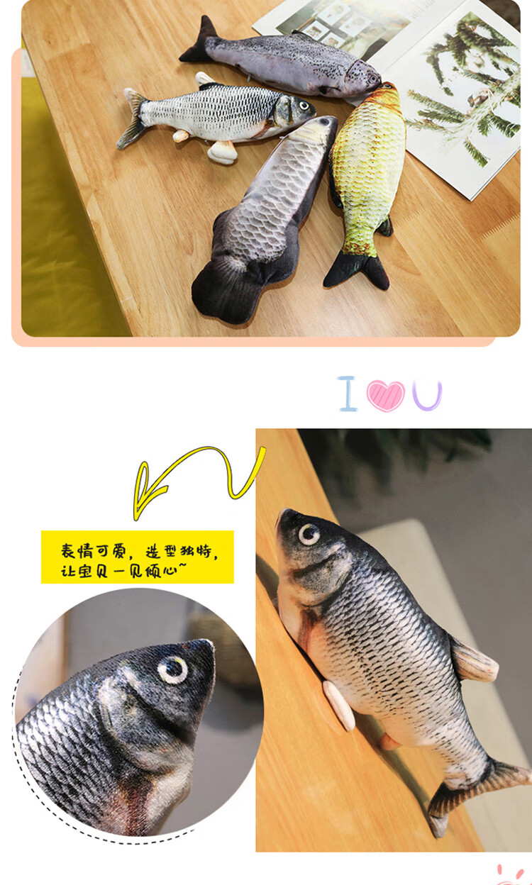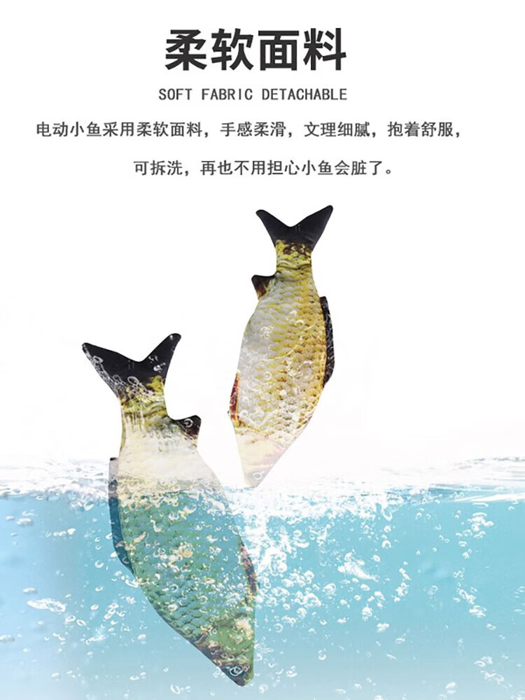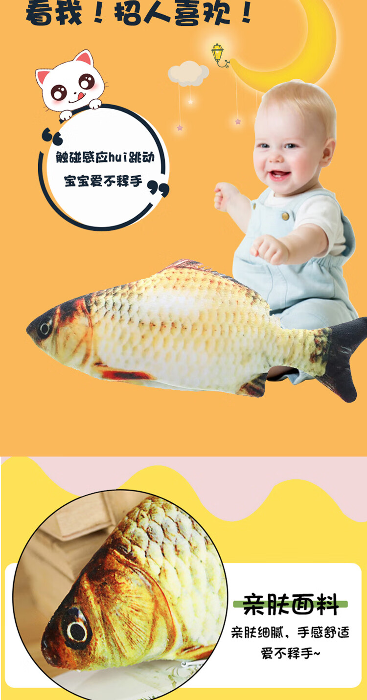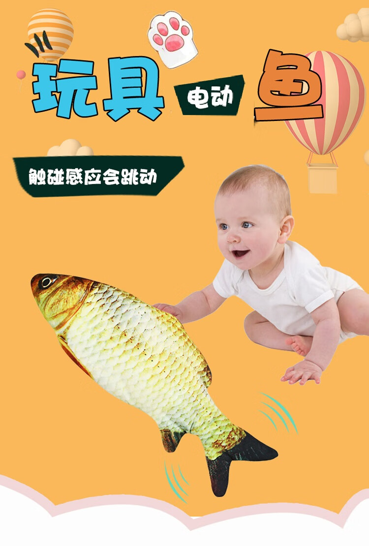 爱尚熊电动鱼玩具拍拍鱼哄娃神器宝宝儿童婴儿哄睡神器会跳动的仿真跳跳鱼摇摆鱼0一1岁逗猫玩偶毛绒玩具充电款