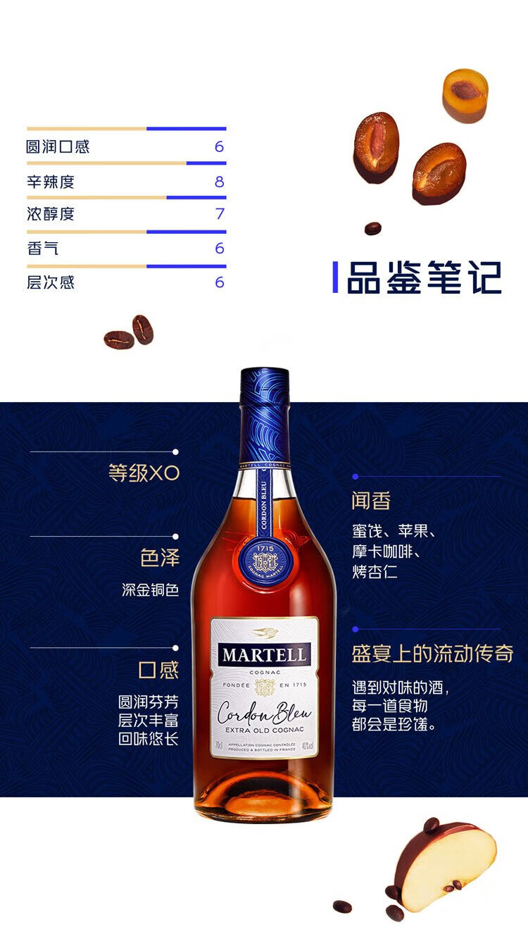 马爹利(Martell)蓝带 法国 XO级干邑白兰地 700ml
