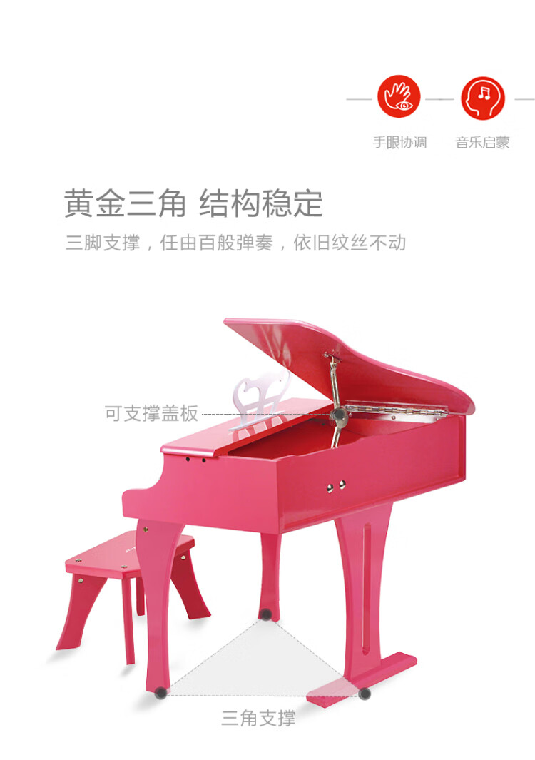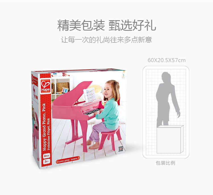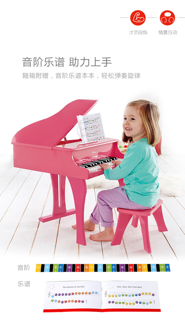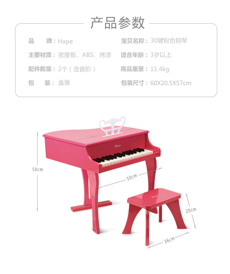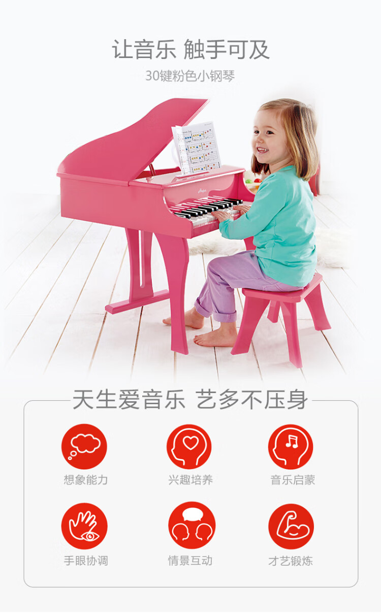 Hape (Germany) children's early education enlightenment music piano toy 30-key mechanical piano pink holiday gift E0319