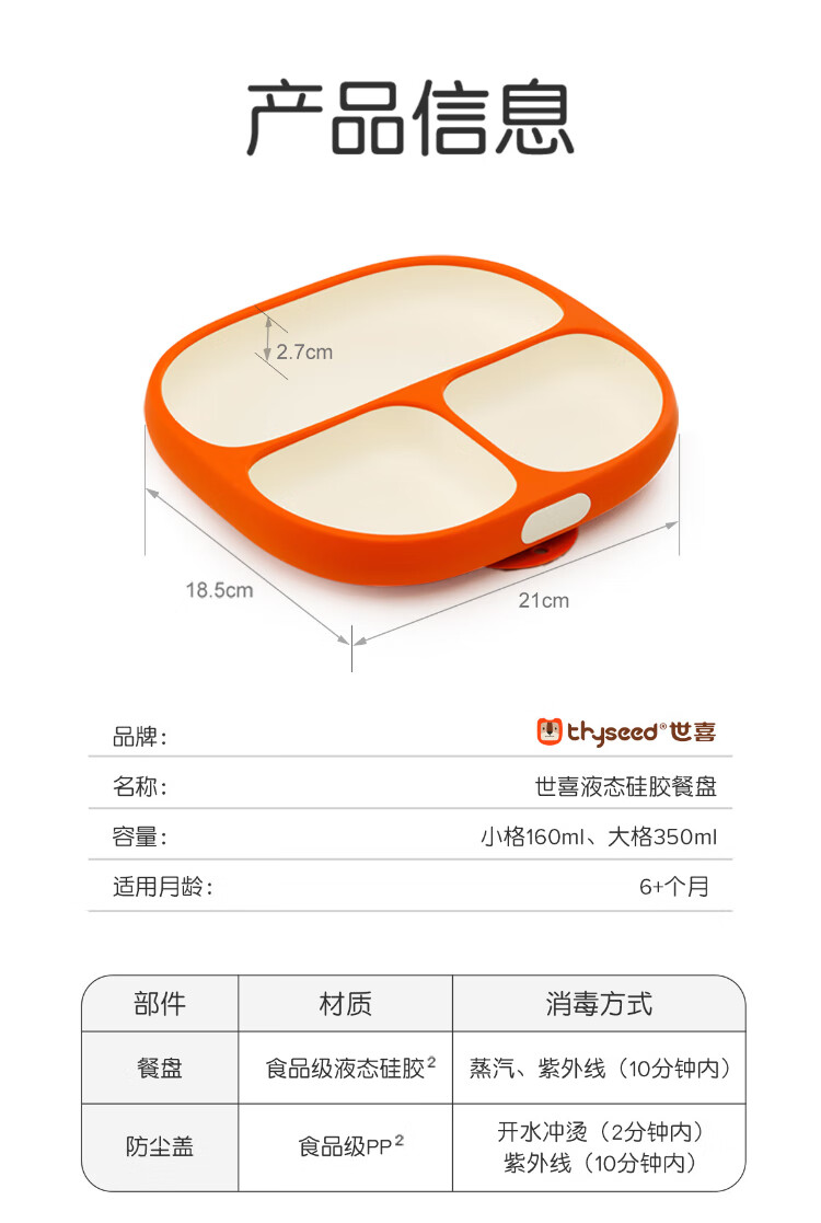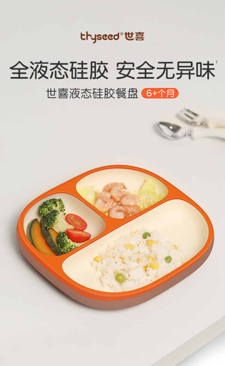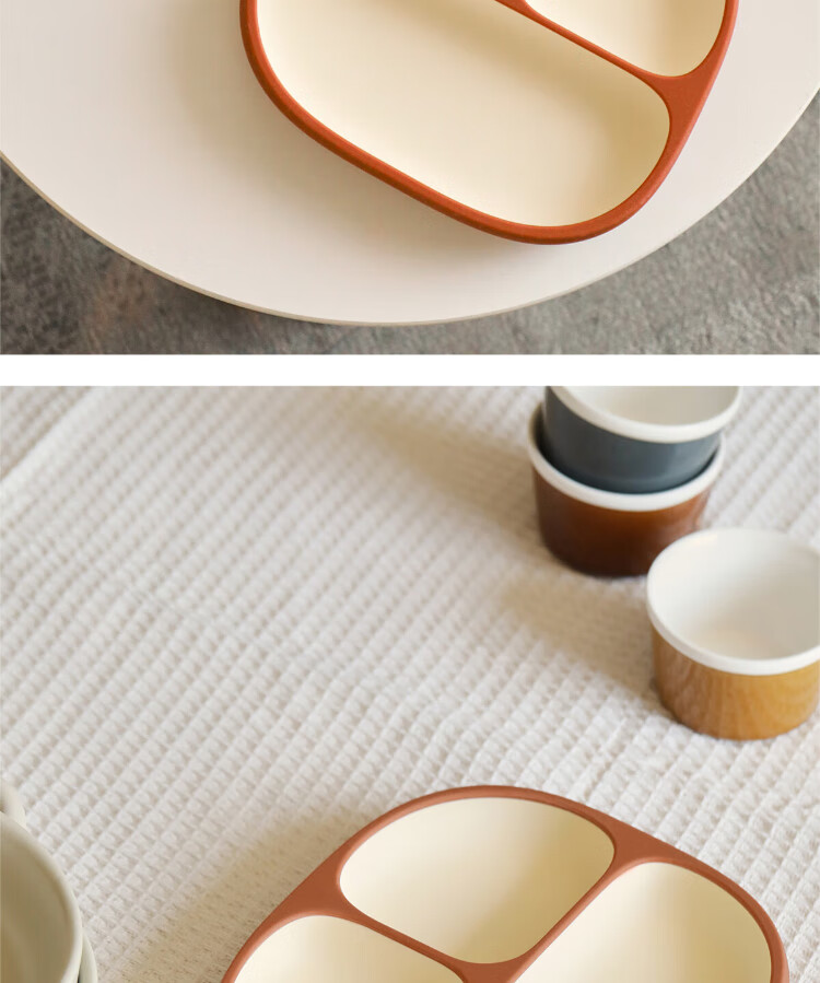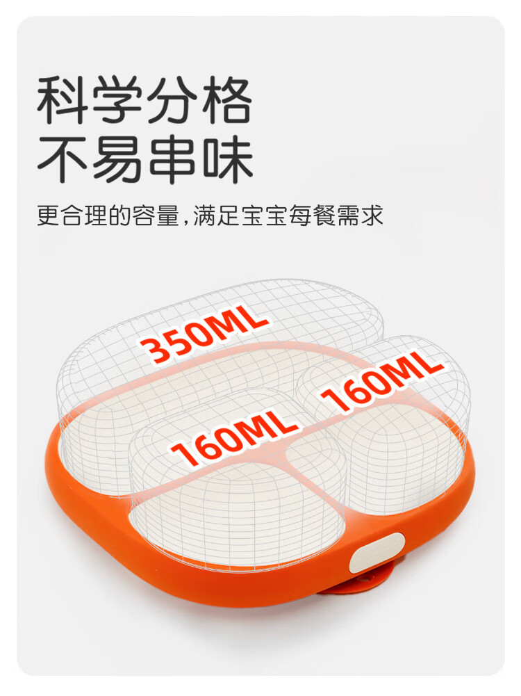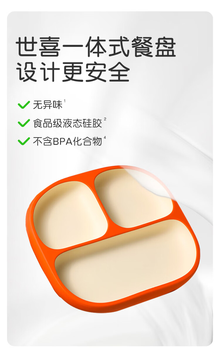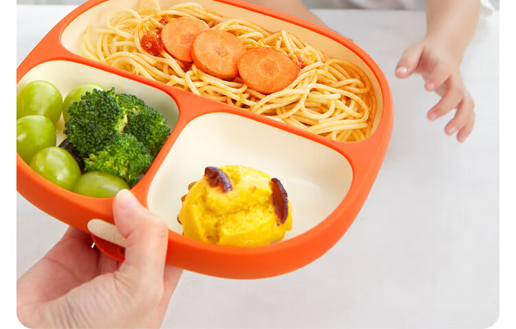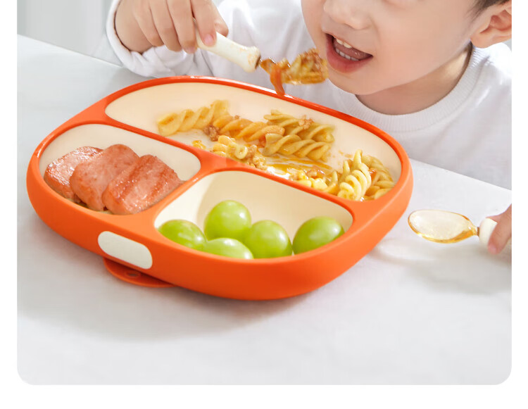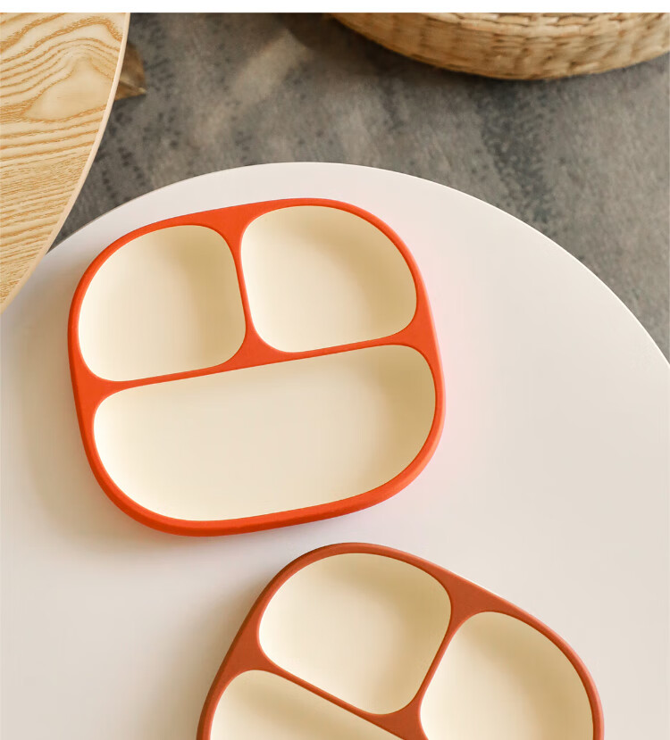 Shixi Plato de Cena de Silicona para bebés Compartimento para bebés Plato de Cena para niños Ventosa una Vajilla Supletoria de Comida para Comer Independiente para Estudiantes