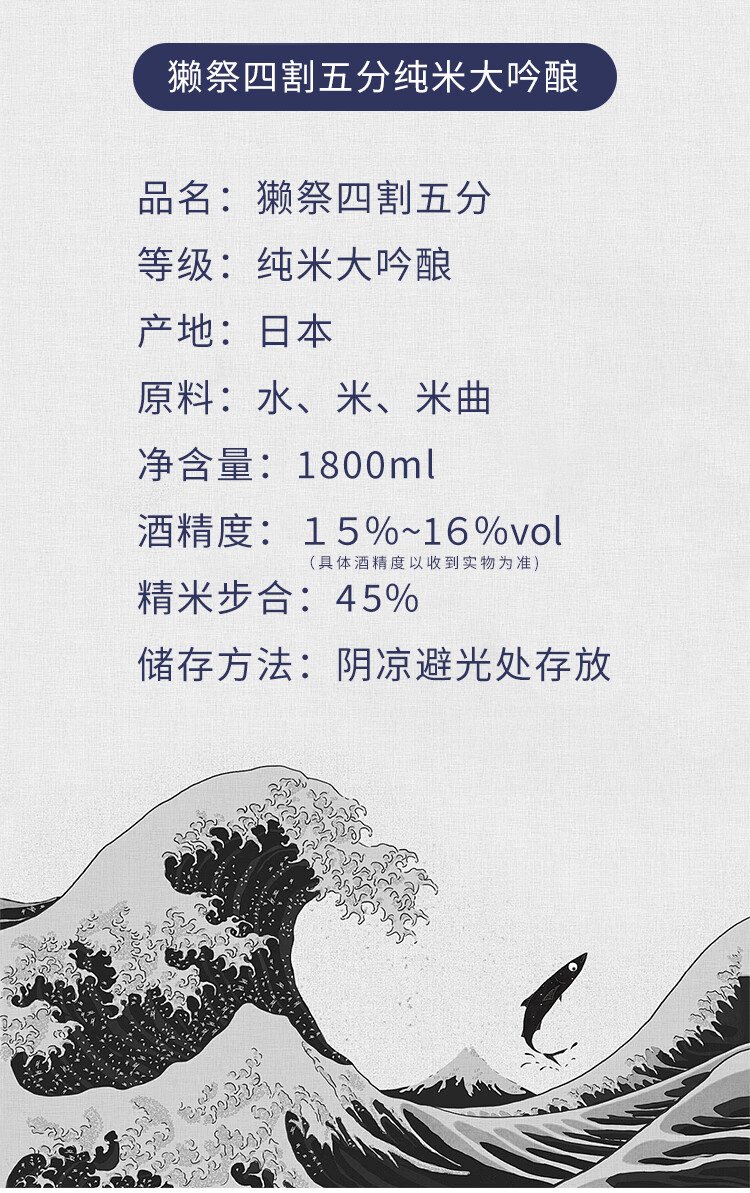 獭祭Dassai 45四割五分1.8L 纯米大吟酿 日本清酒 原装进口