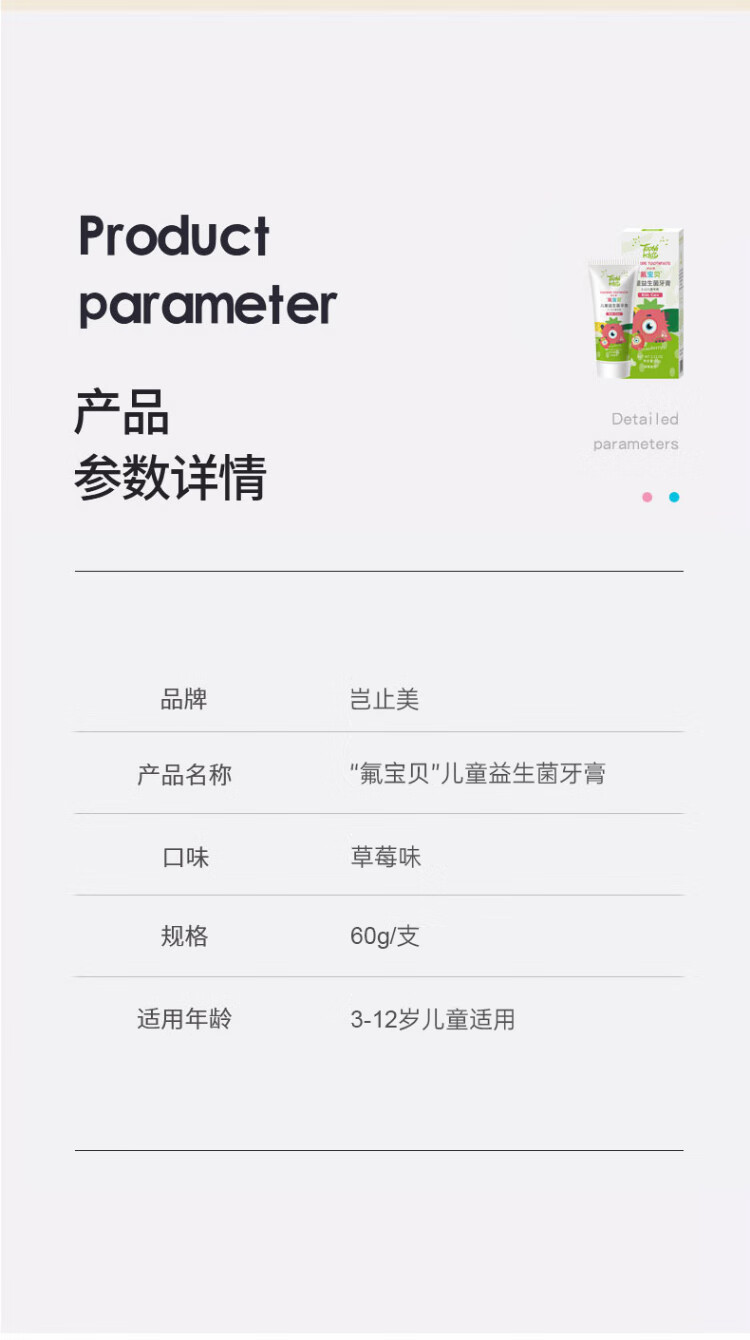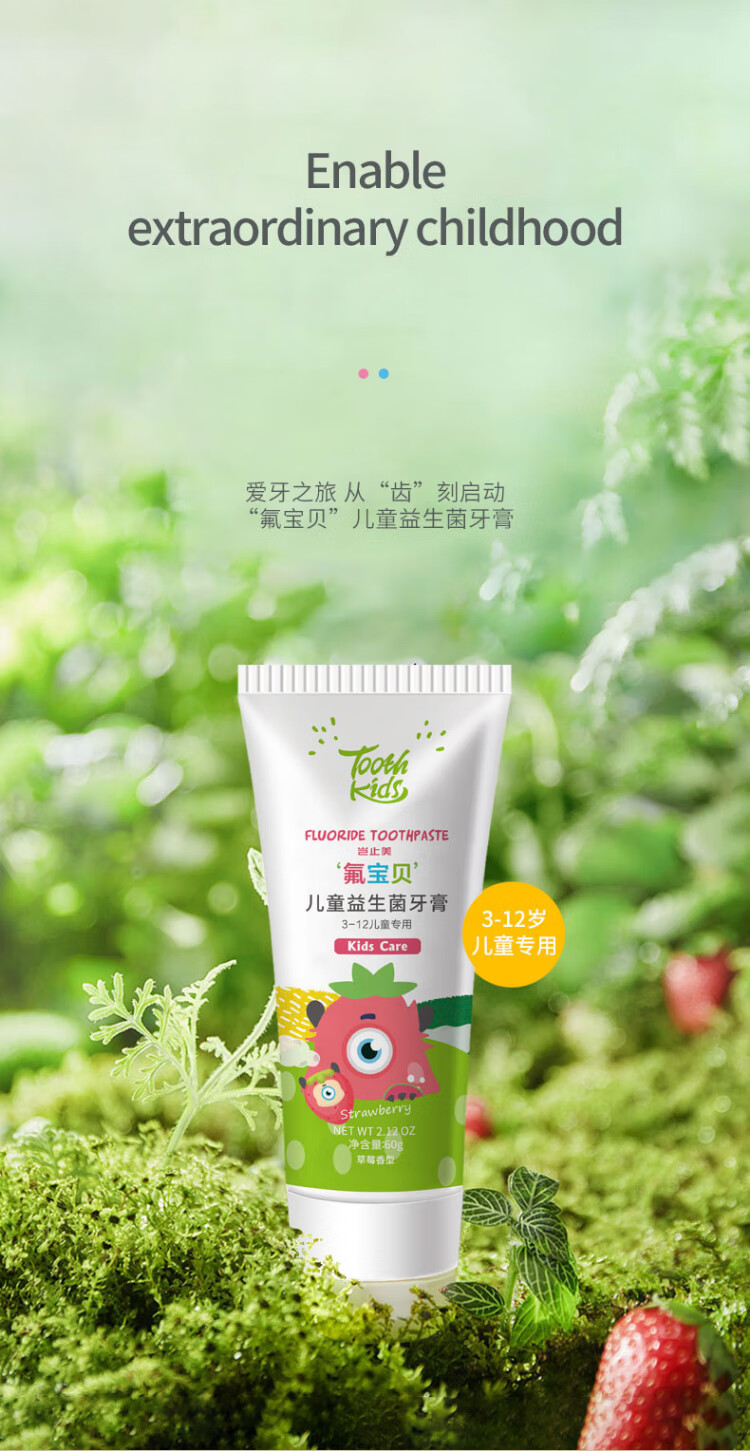 岂止美益生菌儿童牙膏 3-6-12岁宝宝含氟防蛀固齿 青少年学生强健牙釉质
