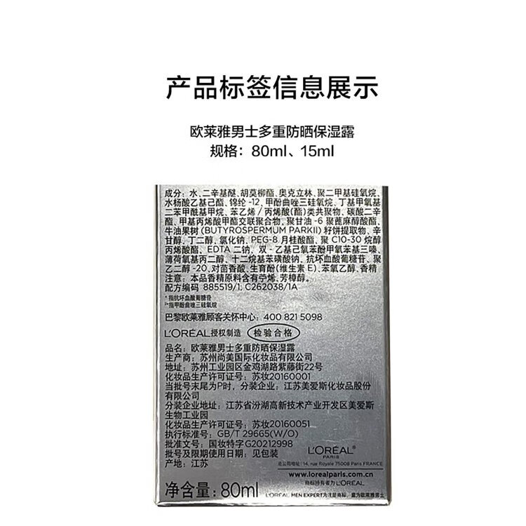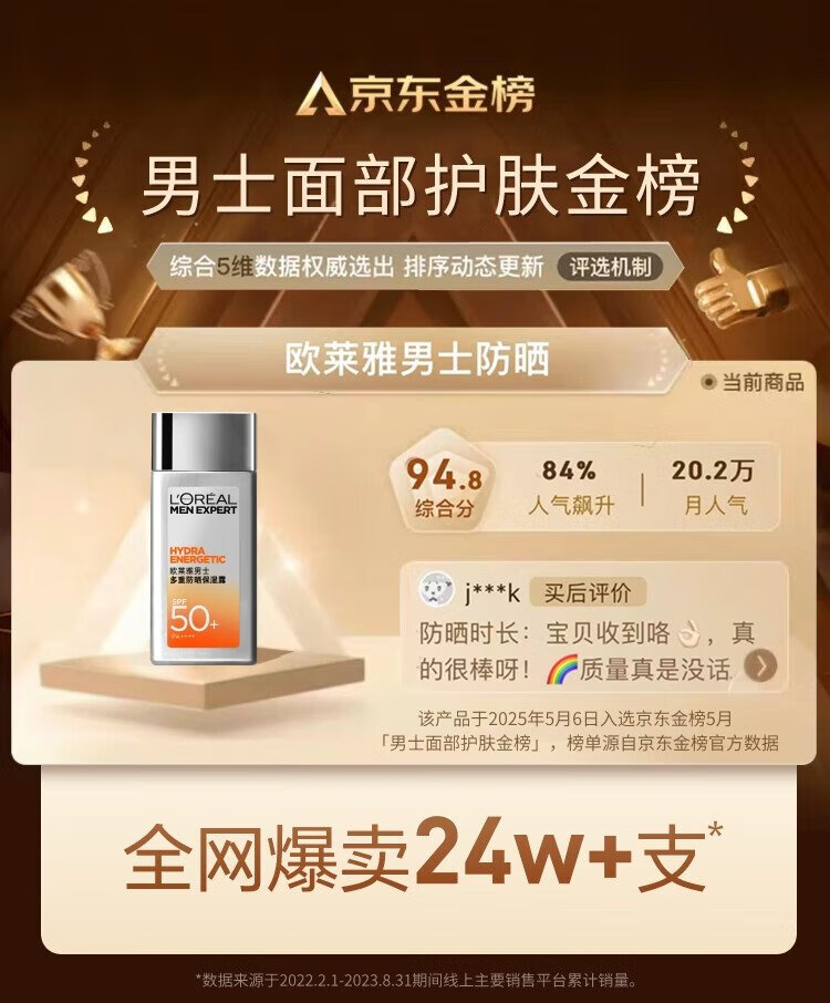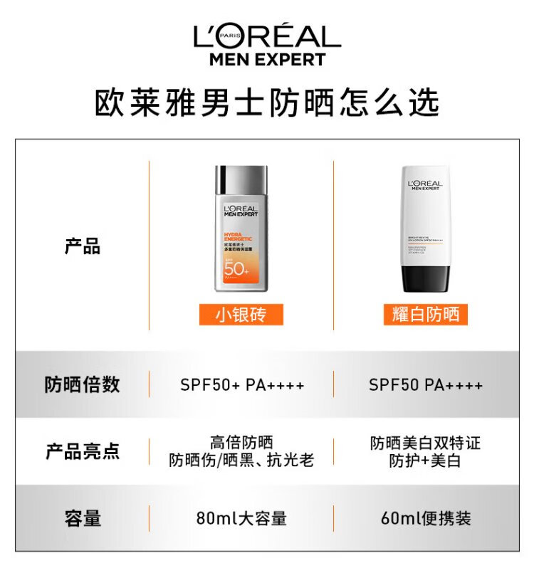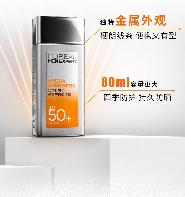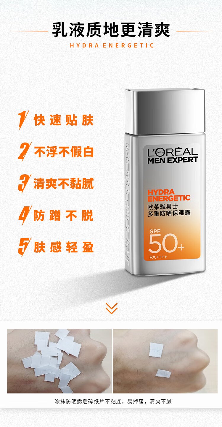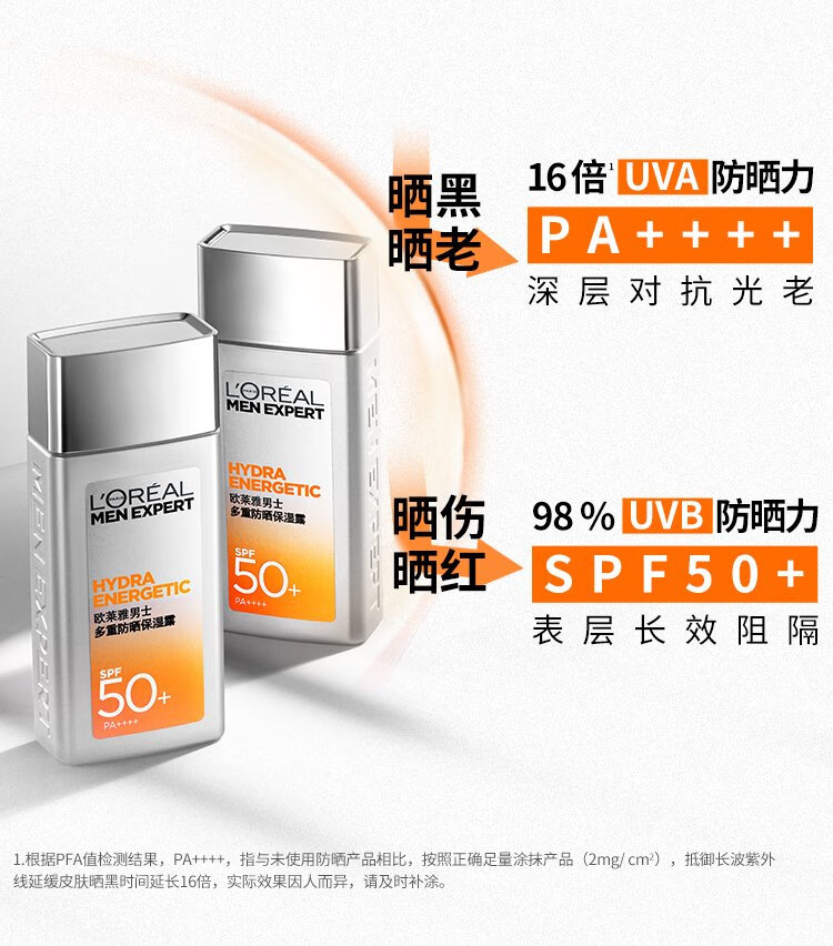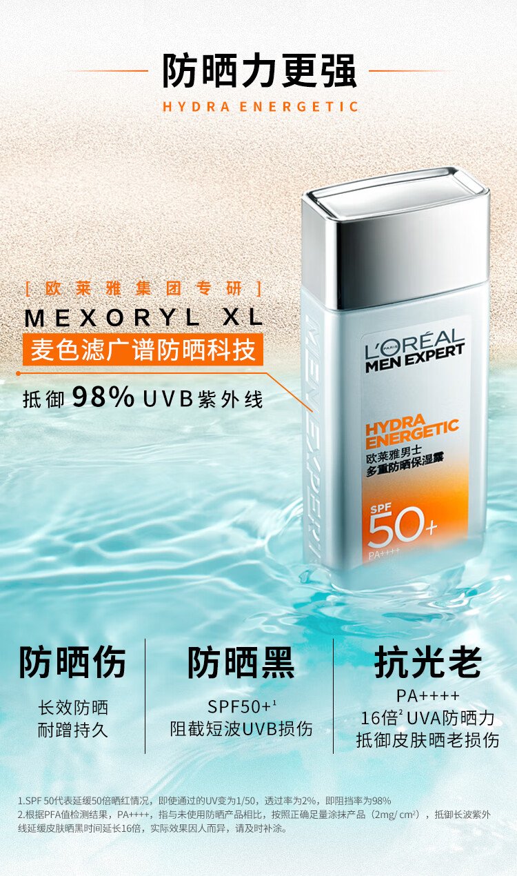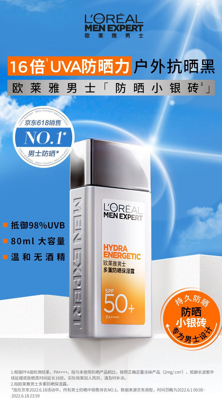 欧莱雅男士专用高倍防晒霜乳隔离SPF50+户外军训抗晒黑紫外线护肤品学生
