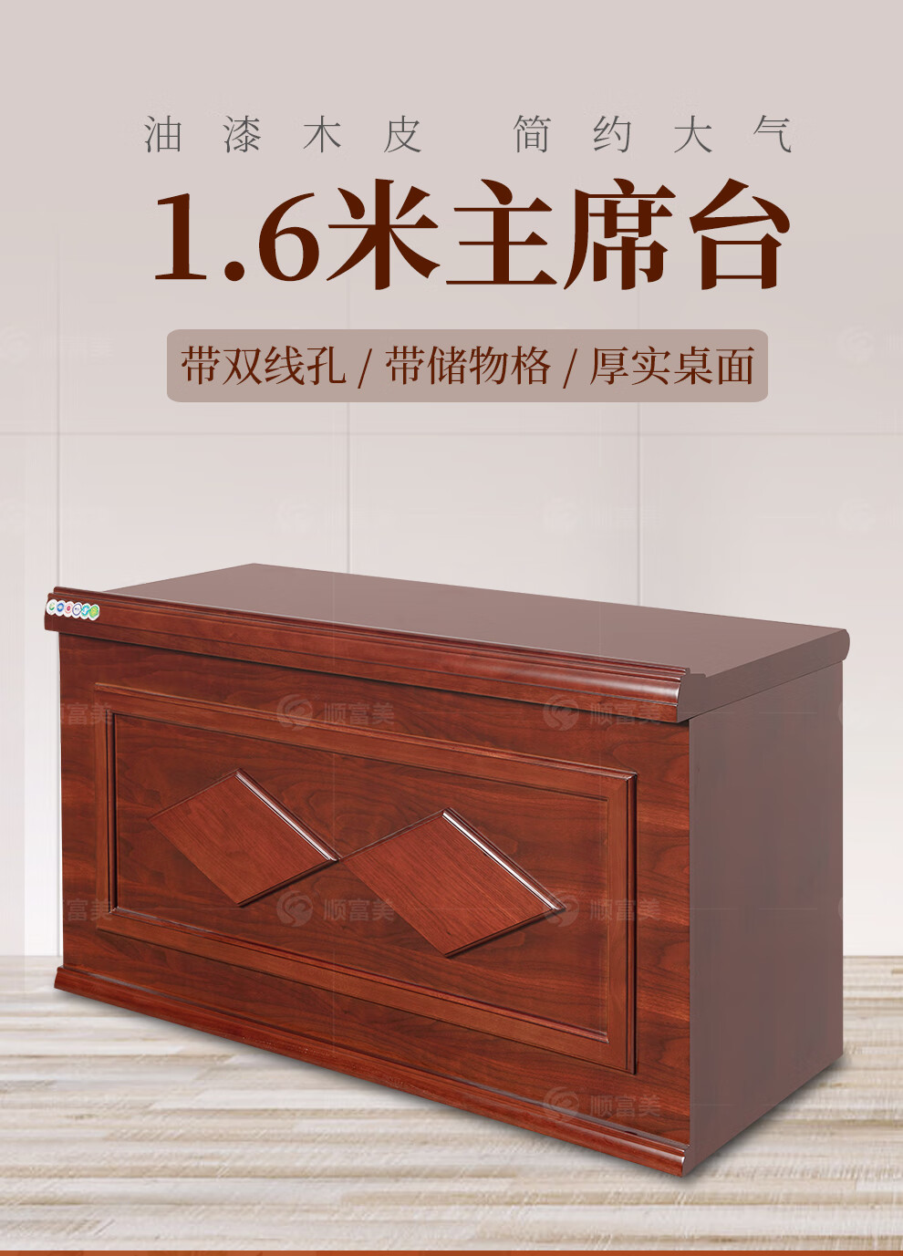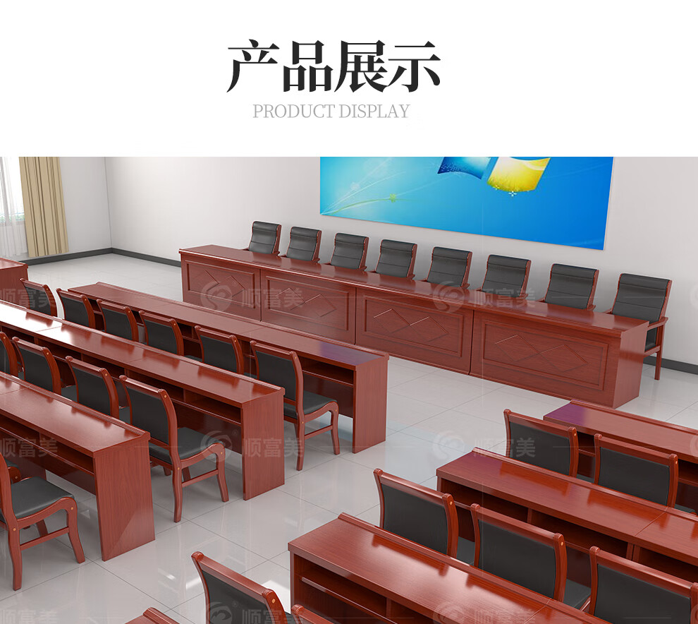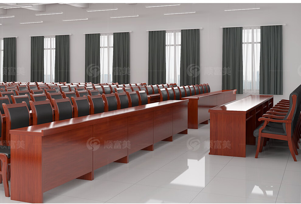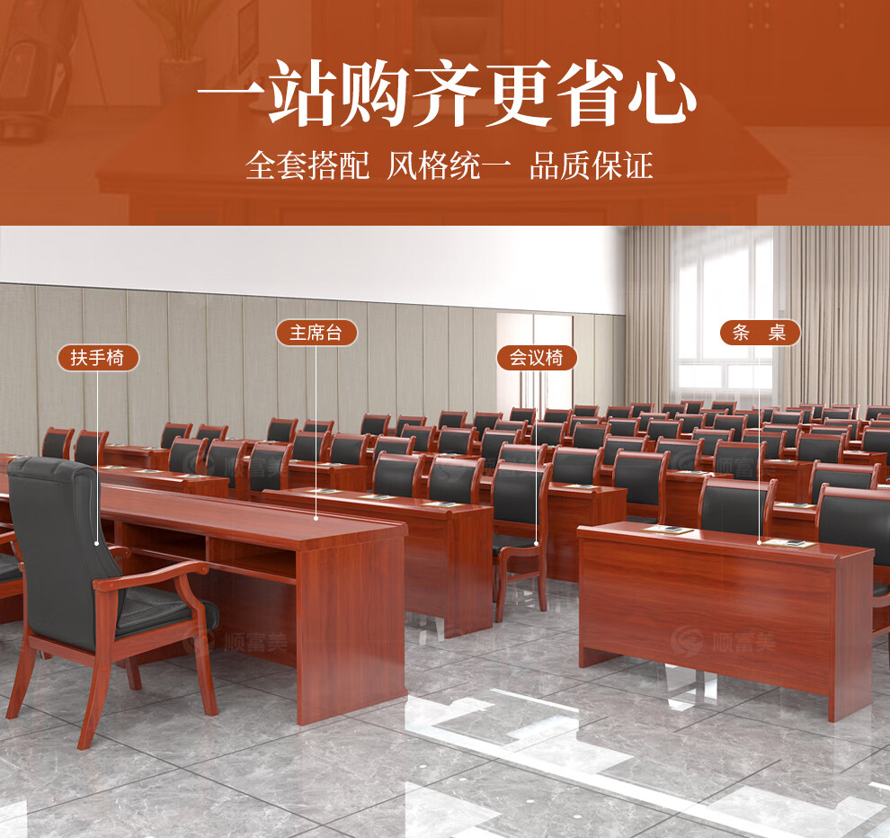 顺富美主席台会议桌大型会议室培训演讲红棕色光面单桌SZX1816