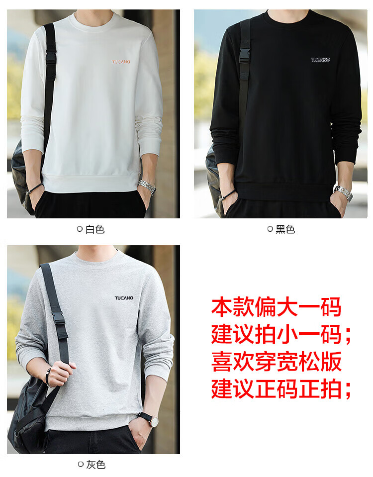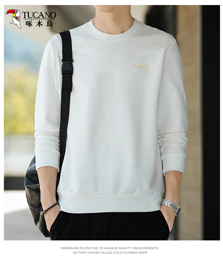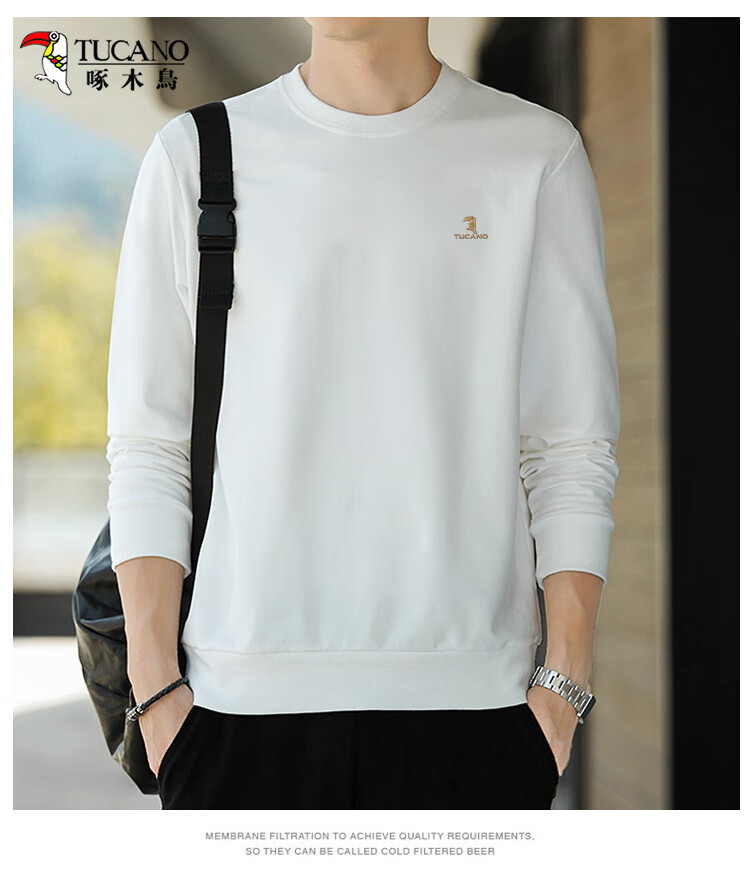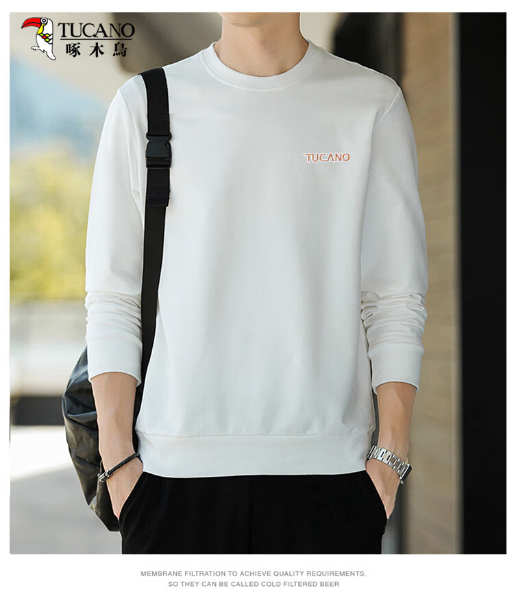 啄木鸟(TUCANO)卫衣男士潮流宽松圆领长袖t恤学生时尚休闲套头上衣男 白色 L