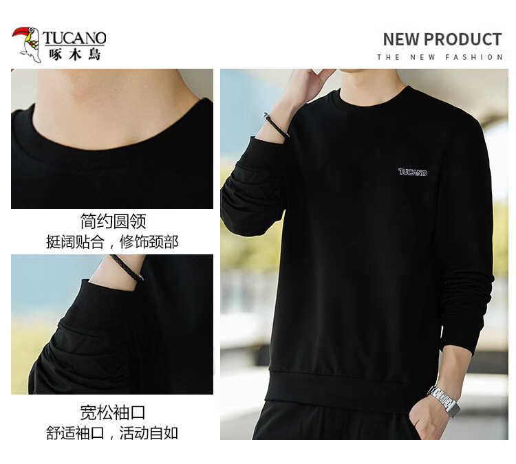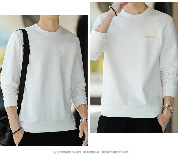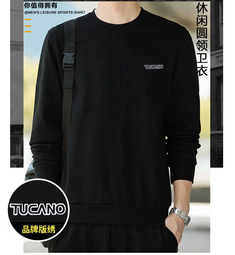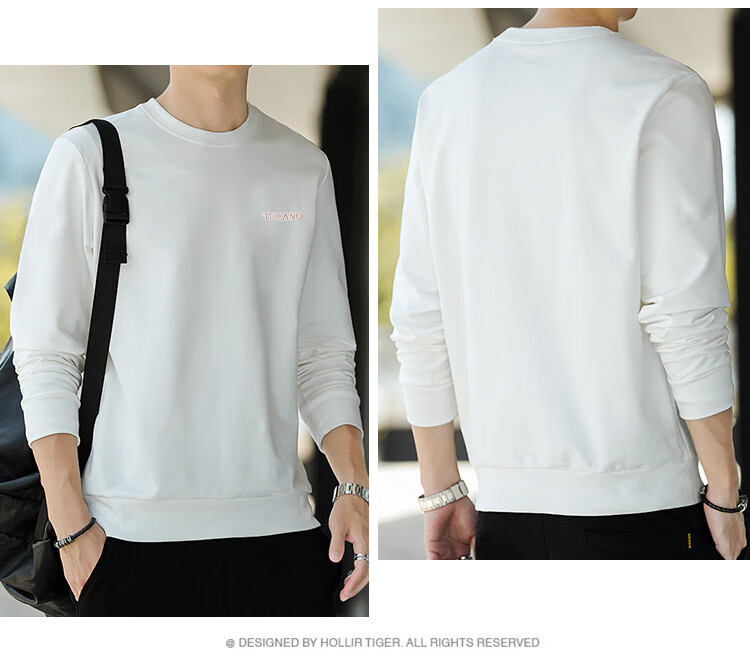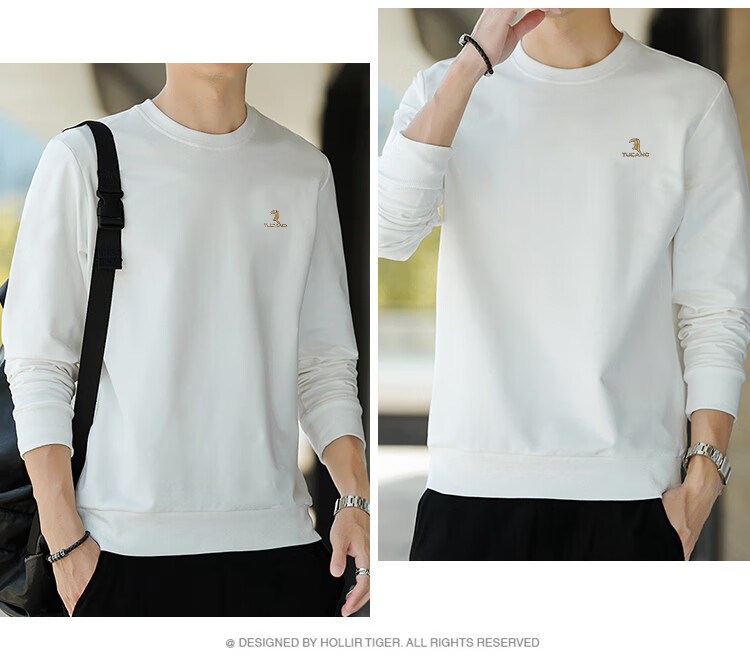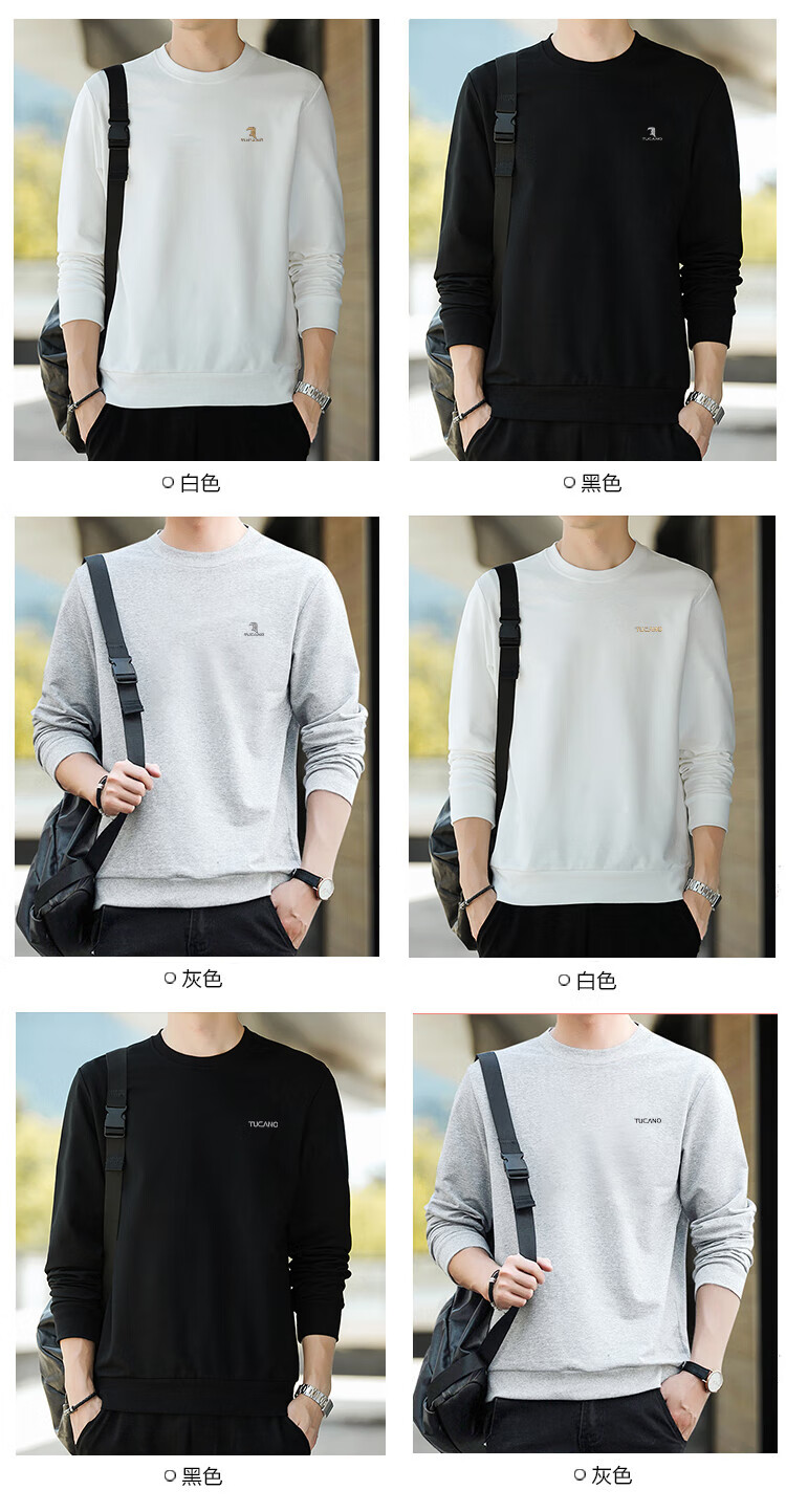 啄木鸟(TUCANO)卫衣男士潮流宽松圆领长袖t恤学生时尚休闲套头上衣男 白色 L