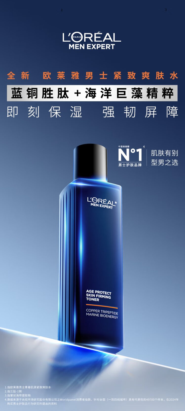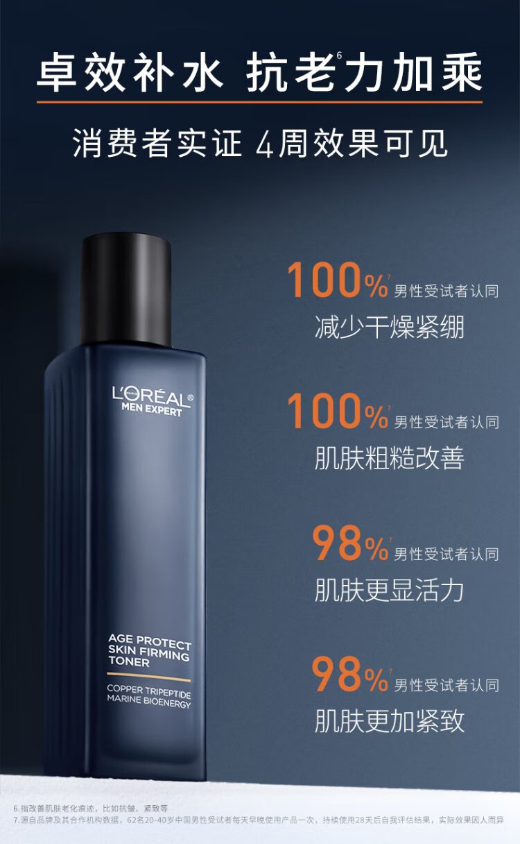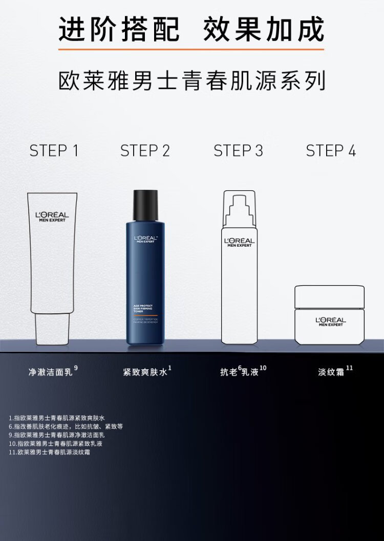 欧莱雅男士青春肌源抗皱紧致爽肤水180ml补水保湿须后护肤品礼物送男友