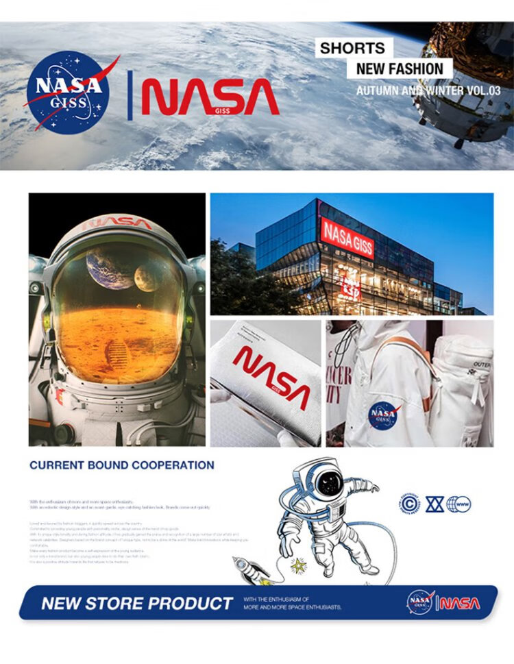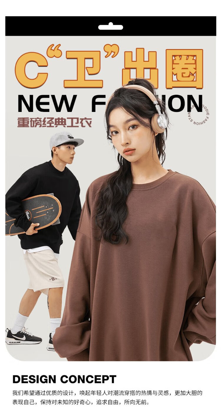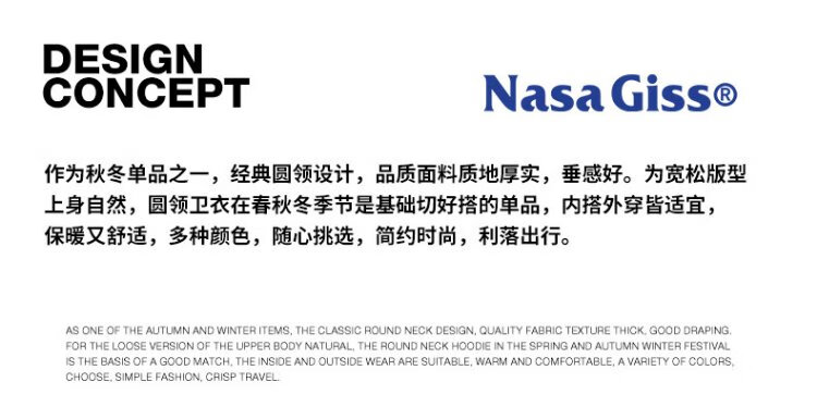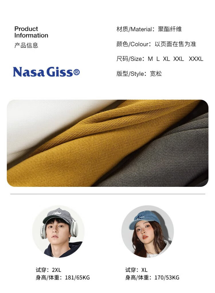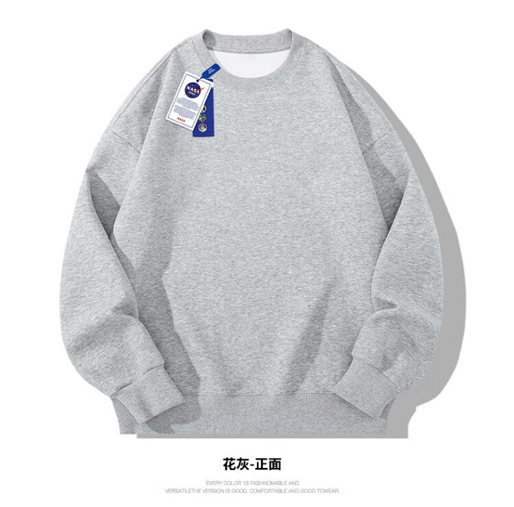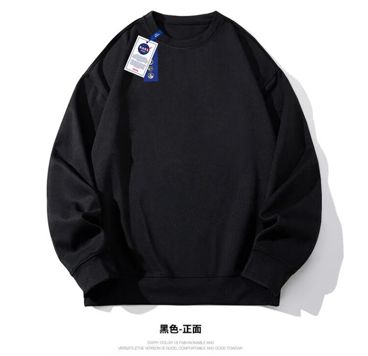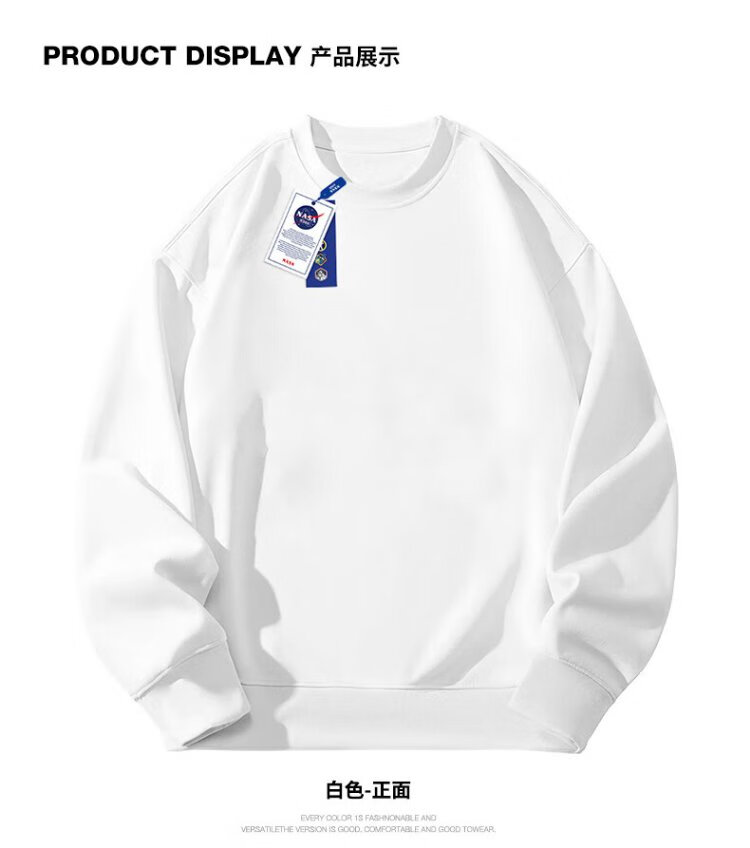 NASA GISS圆领卫衣男纯色基础款上衣情侣款百搭长袖T恤 白色圆领常规 L
