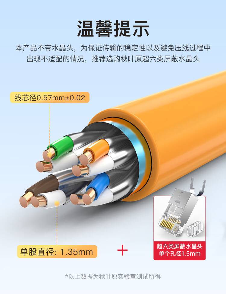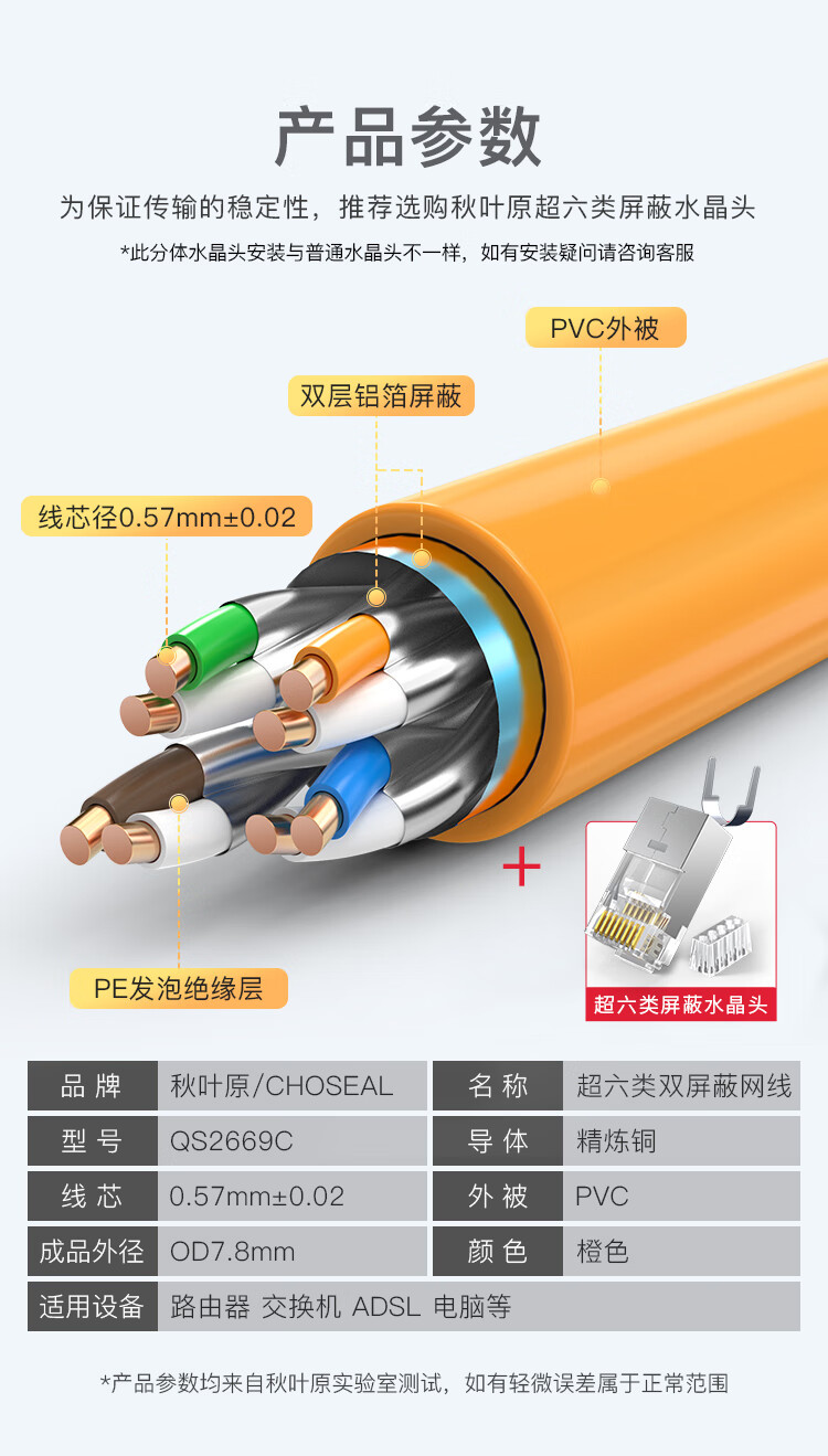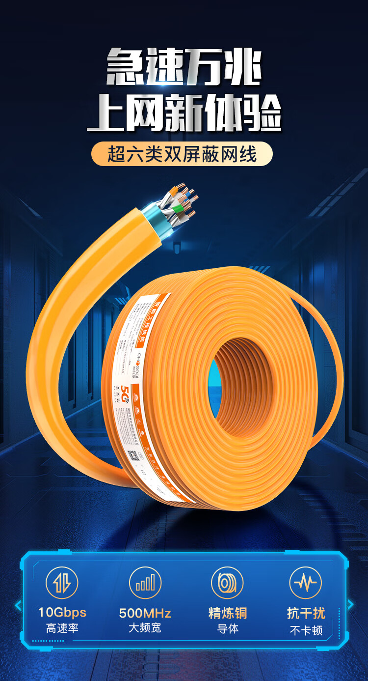 Akihabara (CHOSEAL) Category 6e double shielded network cable CAT6A 10G anti-interference and attenuation pure copper engineering home improvement network broadband cable orange 100 meters QS2669CT100