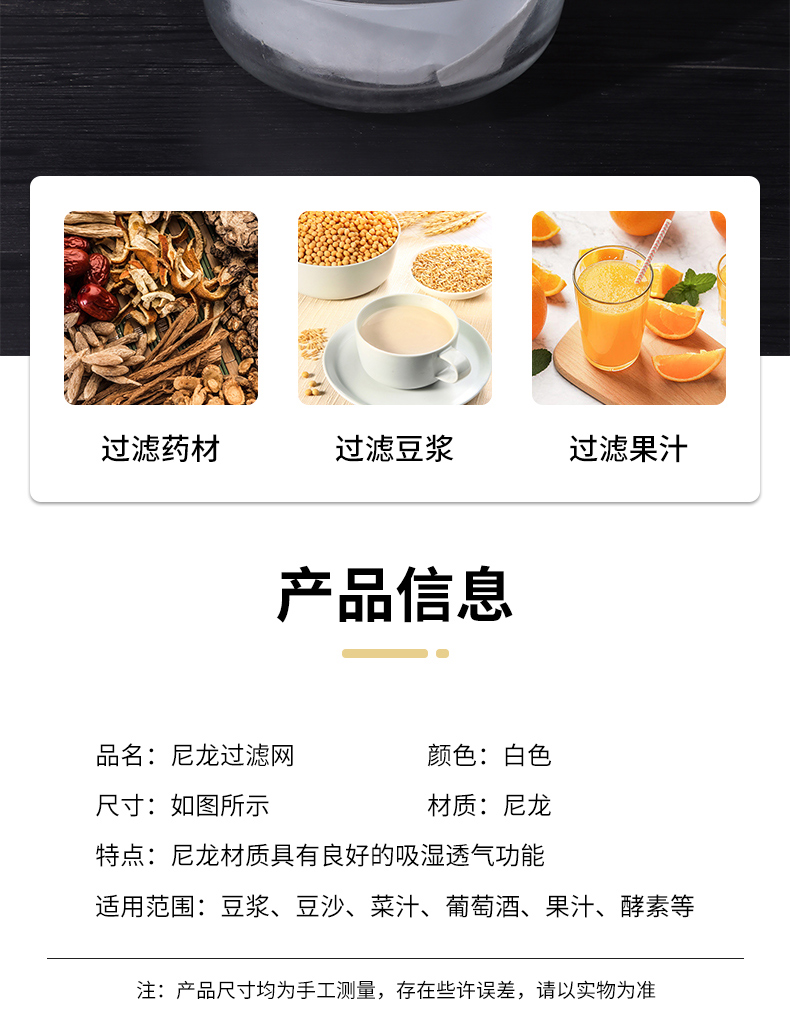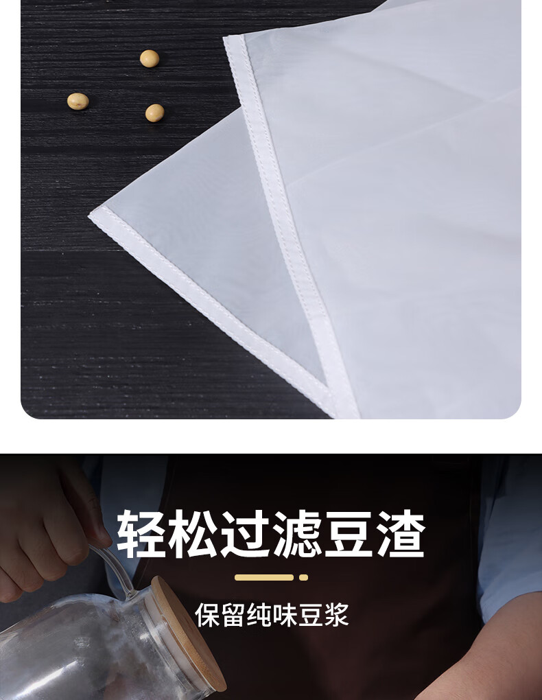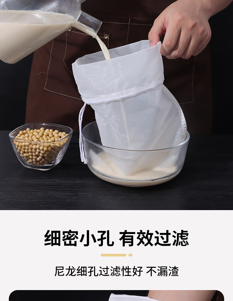 拜杰(Baijie)厨房豆浆过滤网 纱布过滤隔渣袋 细密中药滤网筛 家用挤馅袋 2只30*40cm 100目