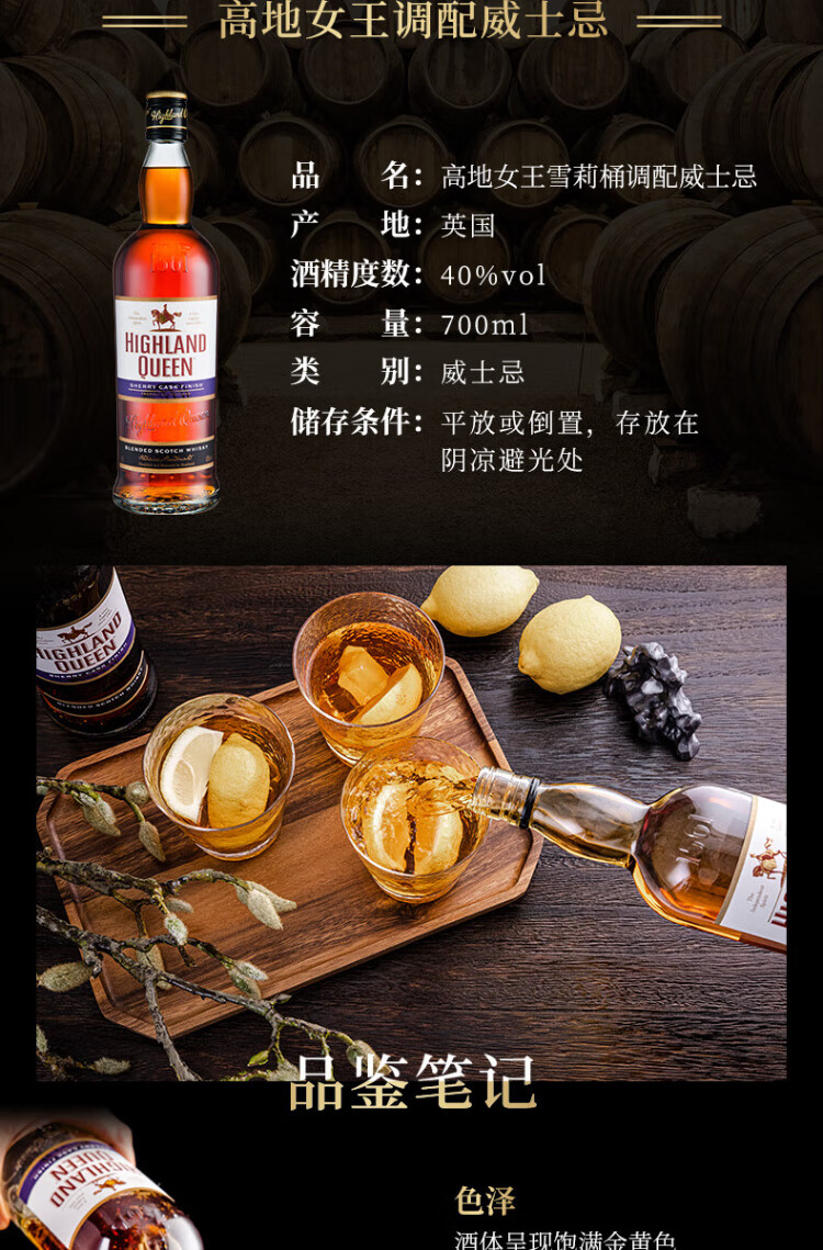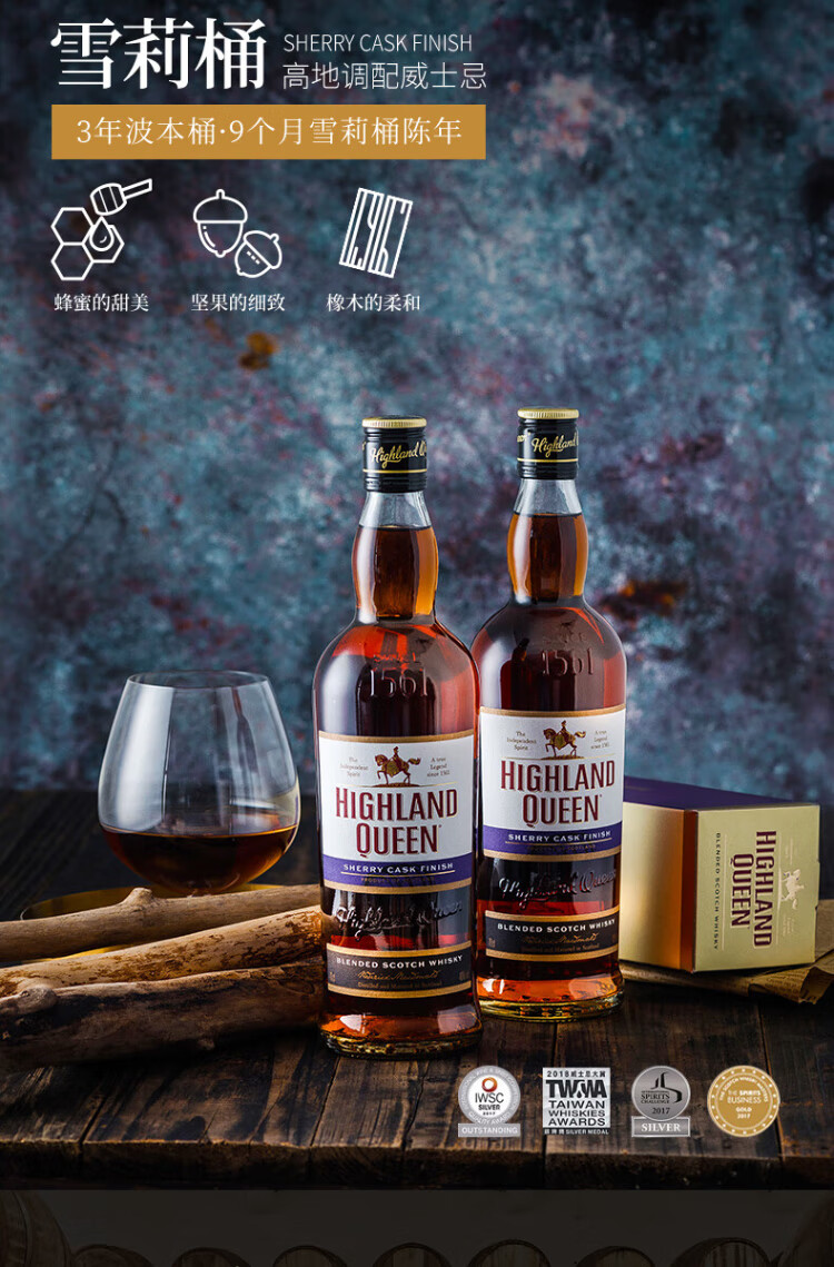 HIGHLAND QUEEN高地女王 洋酒 苏格兰威士忌雪莉桶3年 进口洋酒700ml