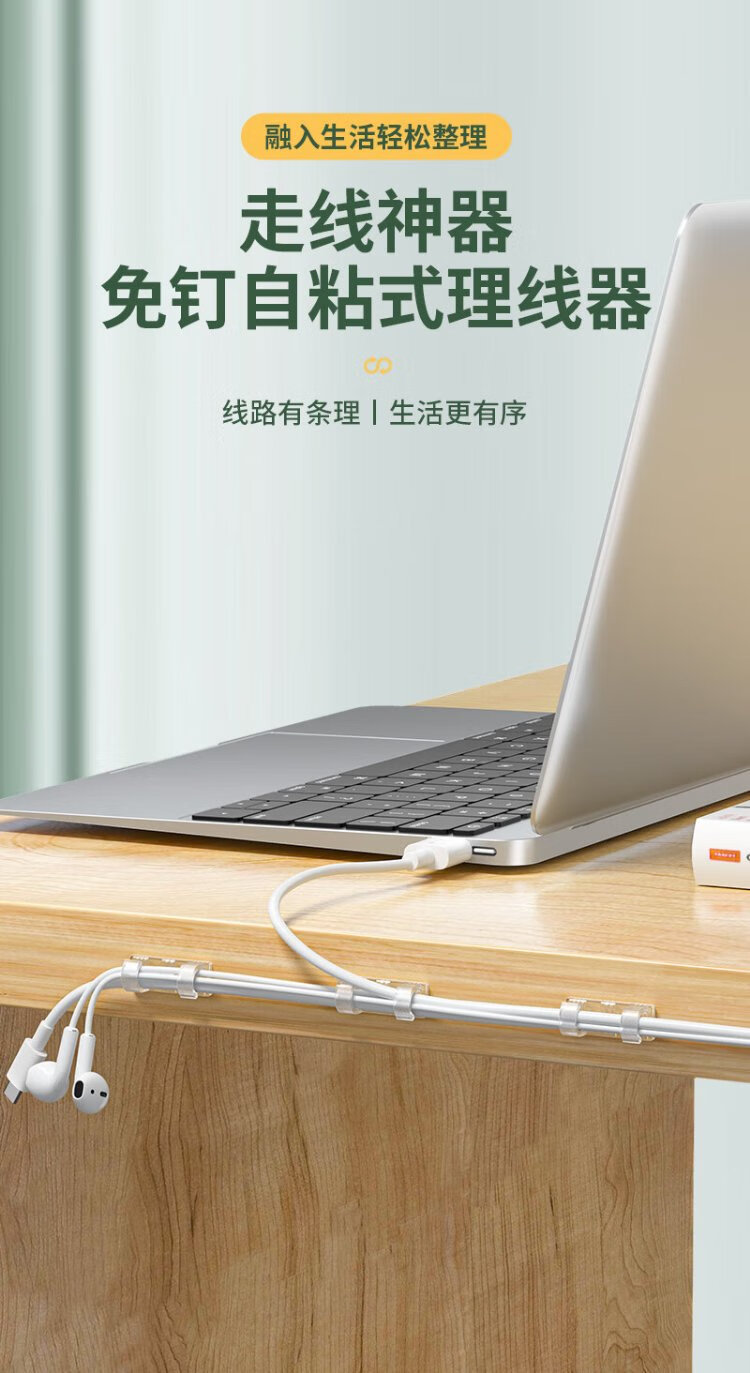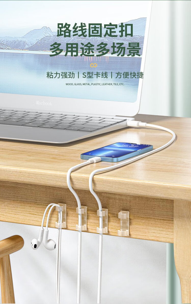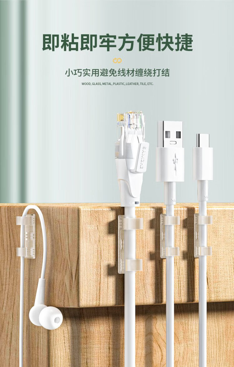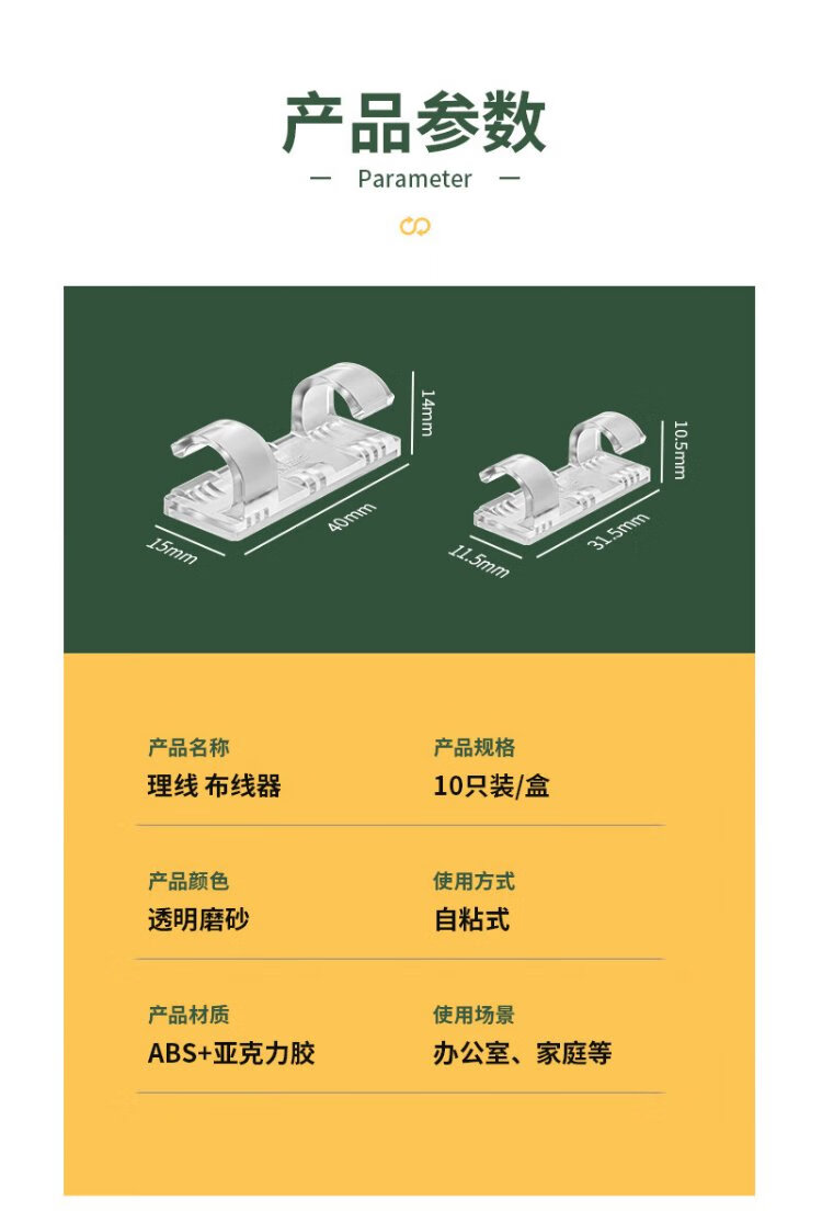 山泽理线器 免打孔免钉理线器 电线网线固定扣固定夹走线夹网线卡扣自粘神器10只装SZ-LXK02