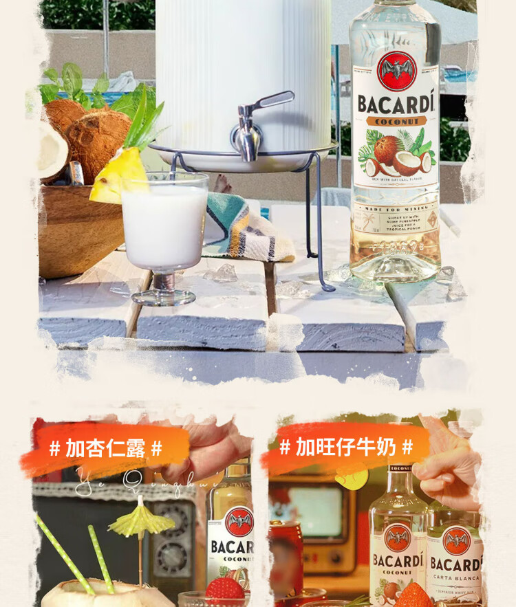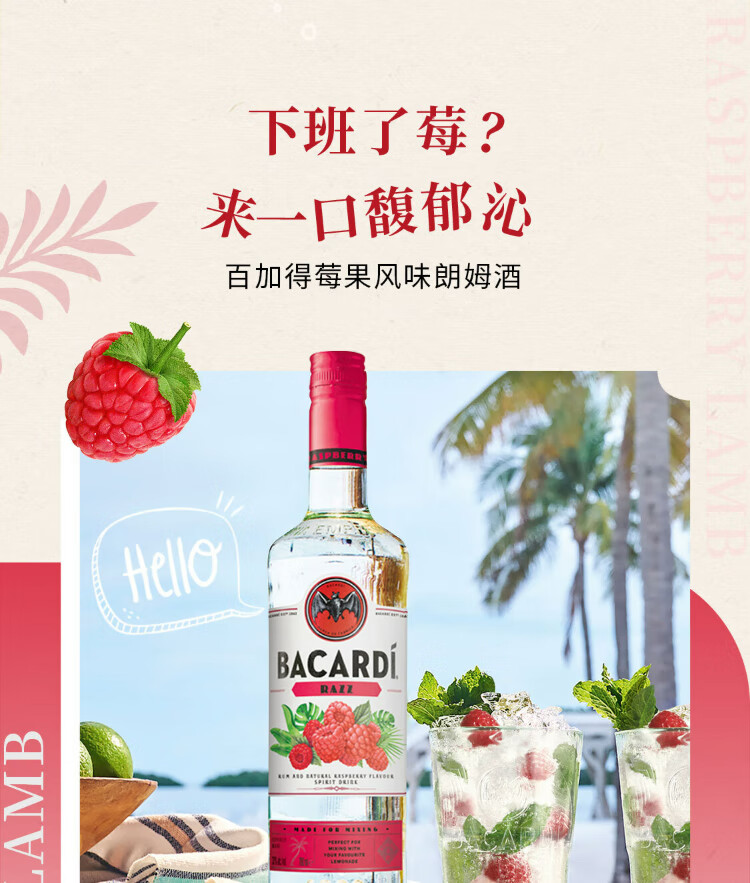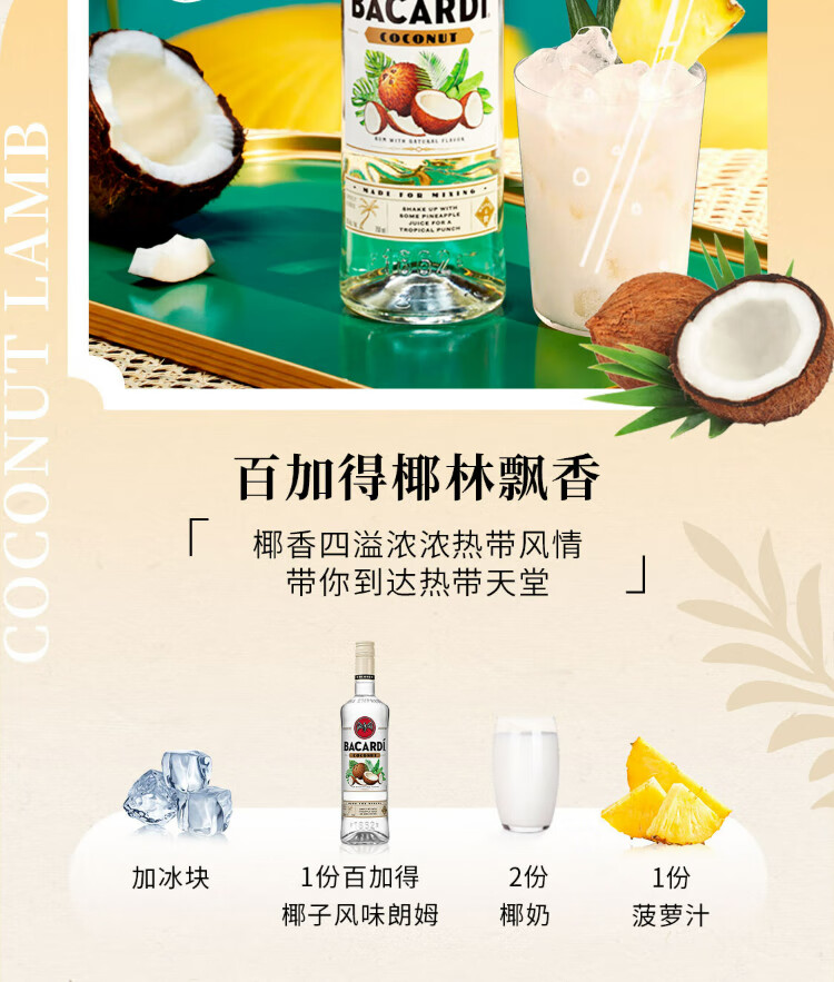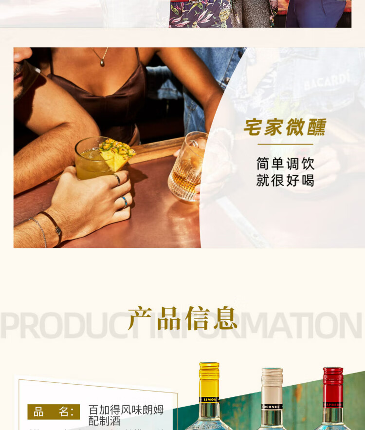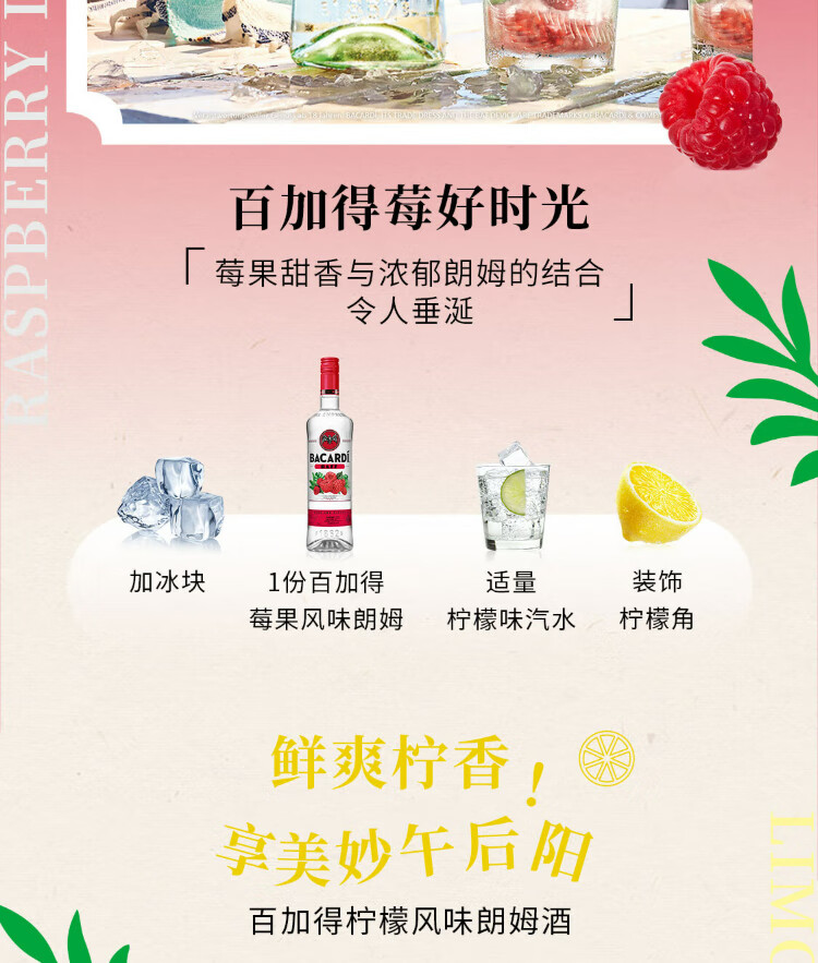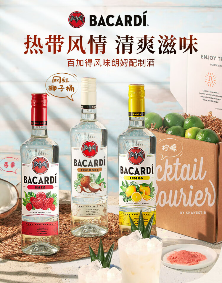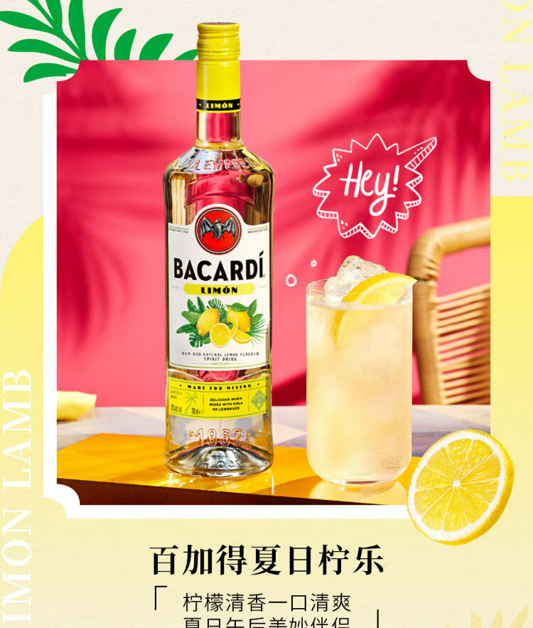 百加得柠檬风味朗姆酒700ml 基酒调酒烘焙 洋酒
