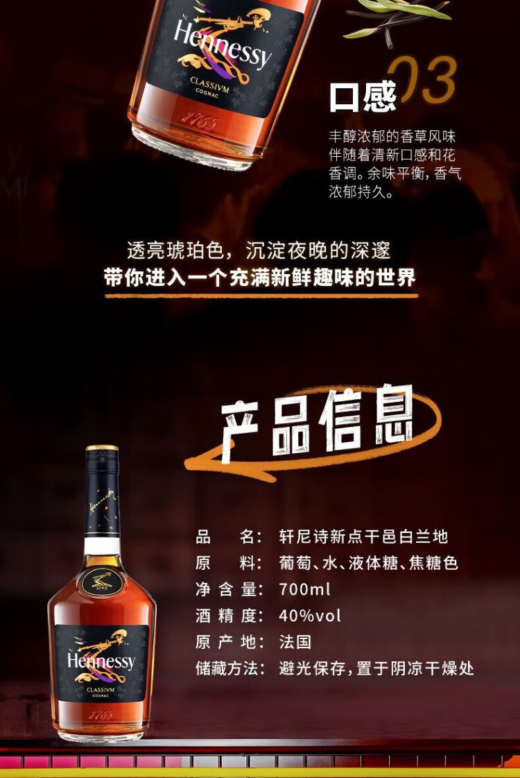 轩尼诗(Hennessy)新点 法国干邑白兰地 700ml 无盒