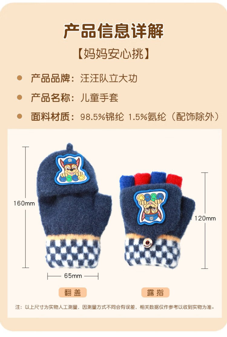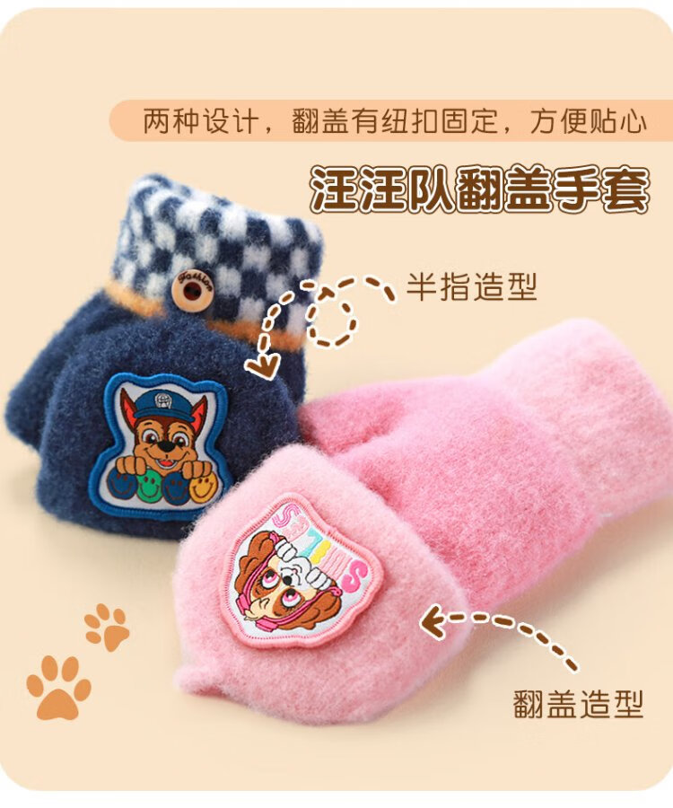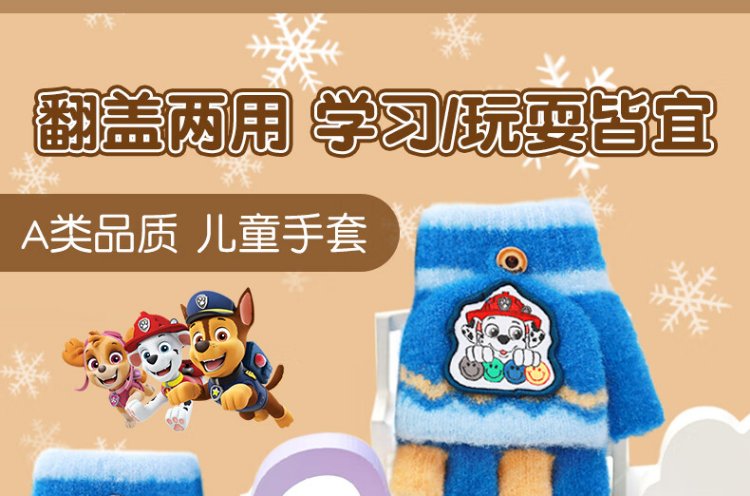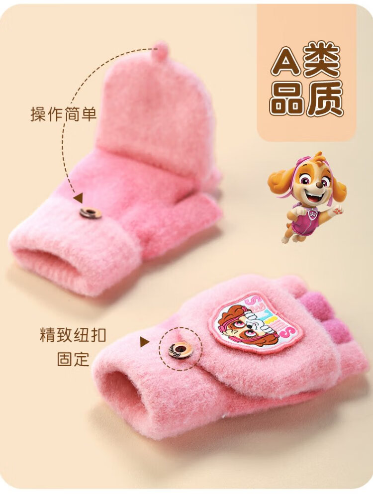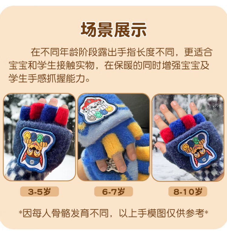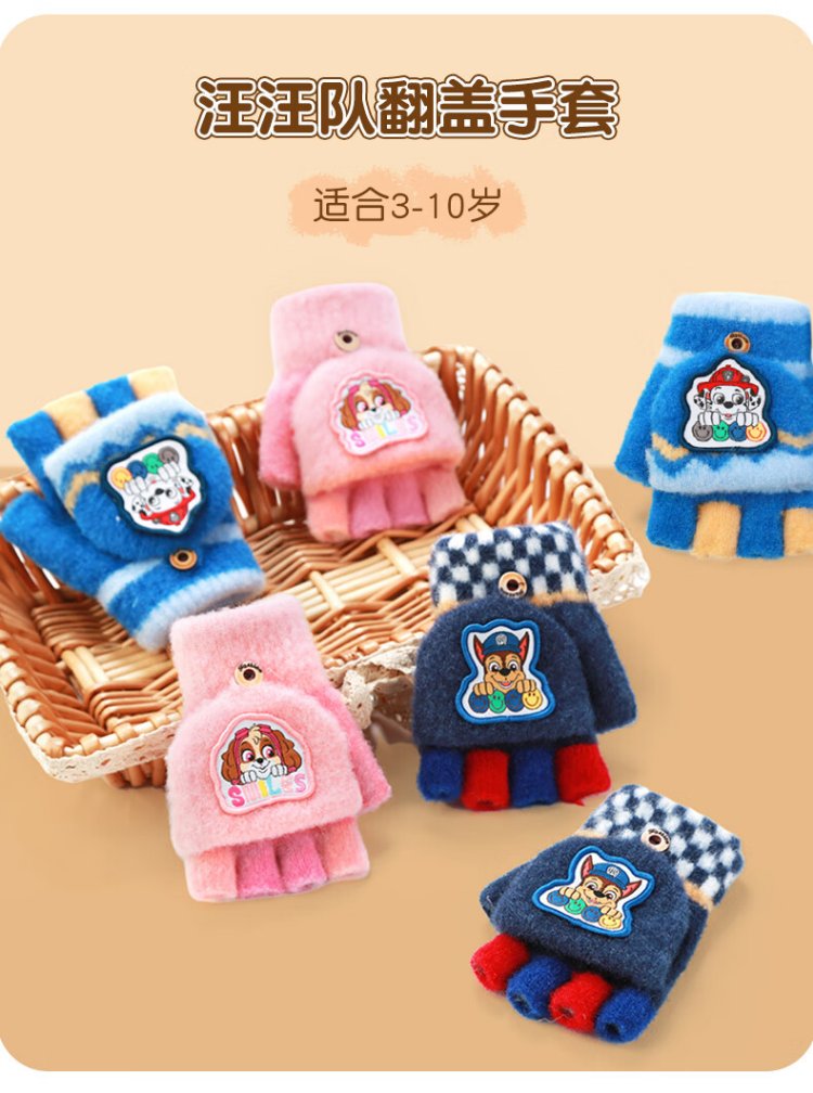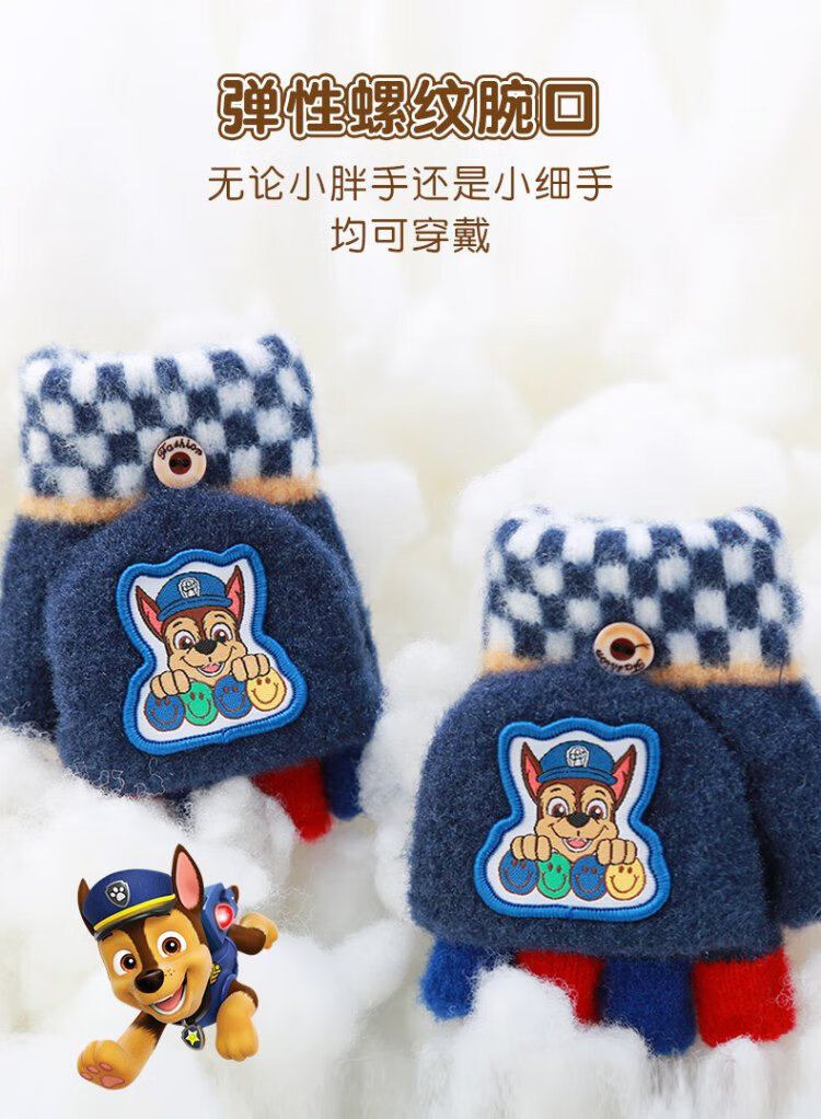 PAW PATROL Children's Gloves Autumn and Winter Detachable Baby Five-Finger Gloves Warm Boys and Girls Primary School Full Finger PA1862I