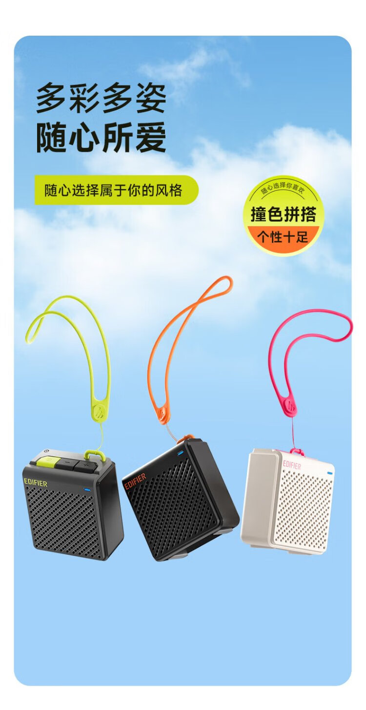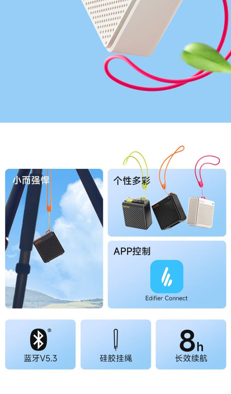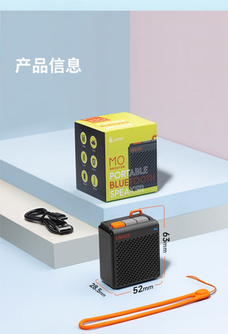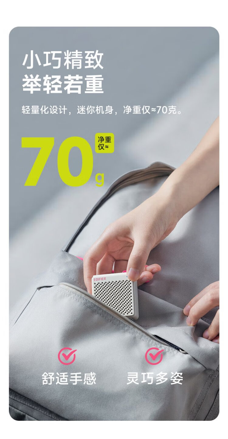 漫步者(EDIFIER)M0 便携式蓝牙音箱 户外迷你音箱音响 净重仅70g 超长续航 云岩白