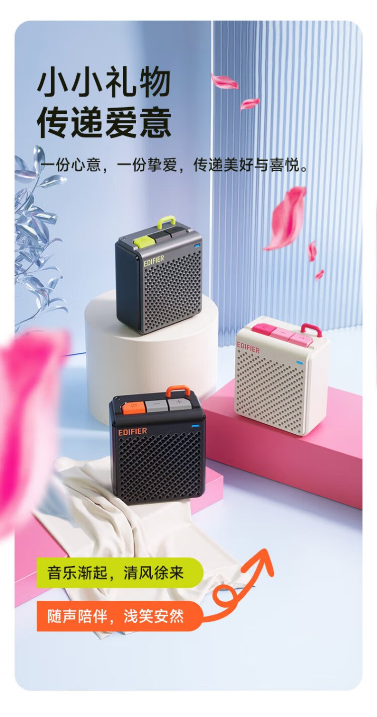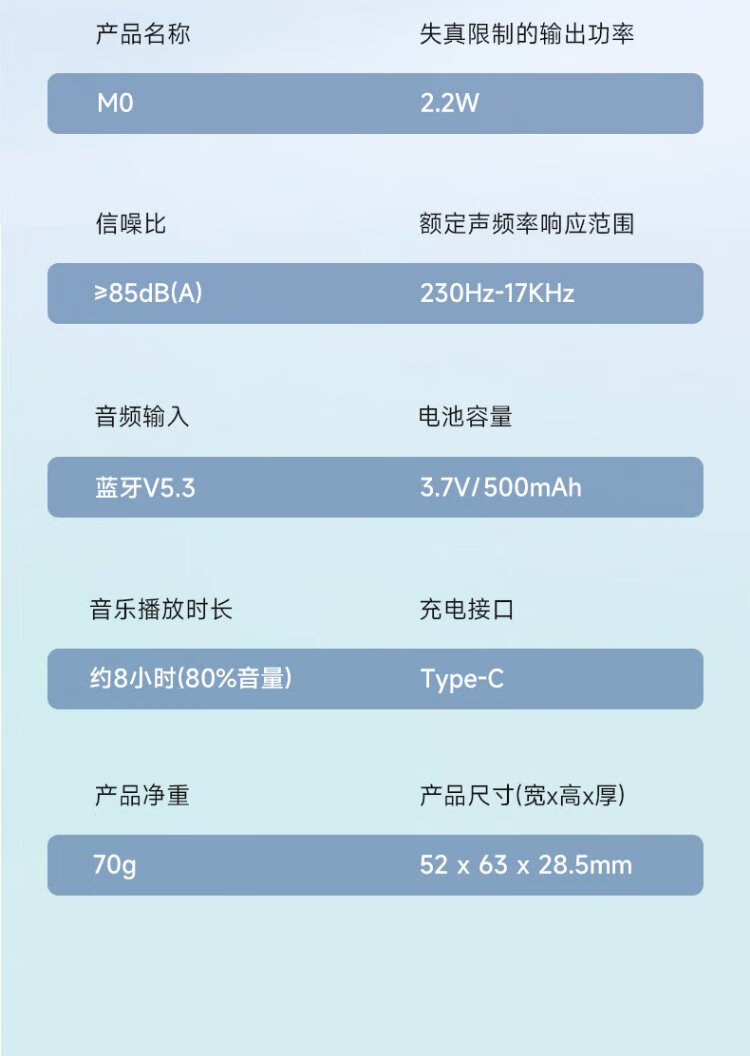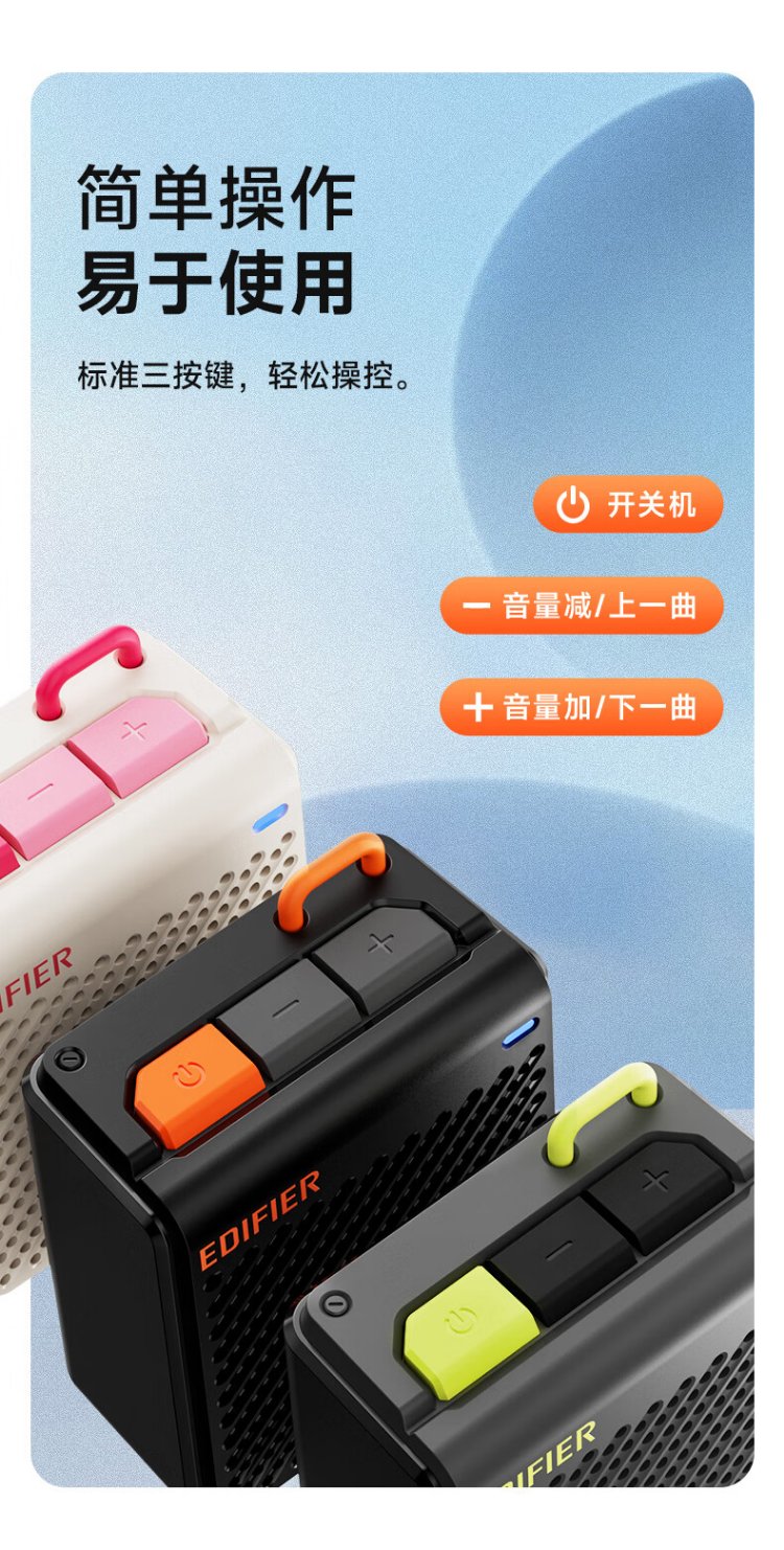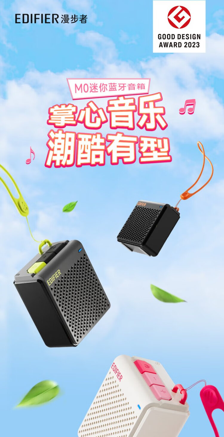 漫步者(EDIFIER)M0 便携式蓝牙音箱 户外迷你音箱音响 净重仅70g 超长续航 云岩白