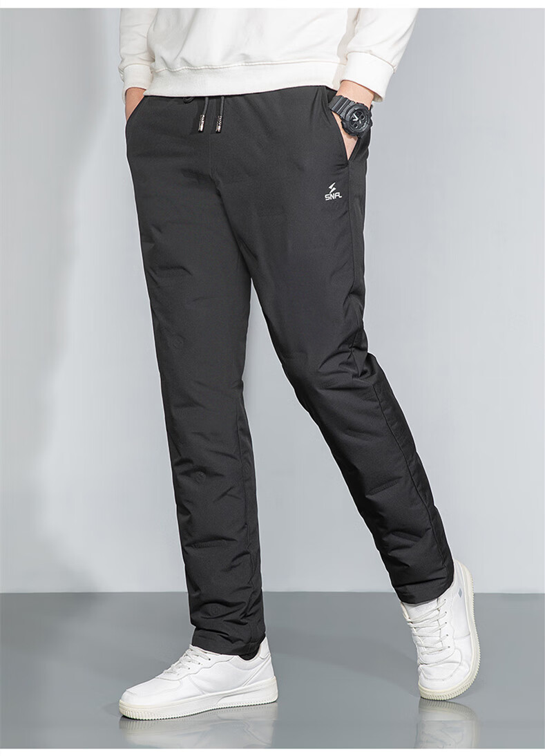 Брюки на пуху с гусиным пухом, мужские утепленные зимние теплые брюки с нашивками, ветрозащитные уличные повседневные брюки 185