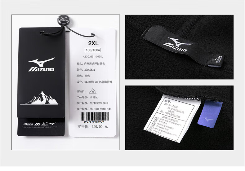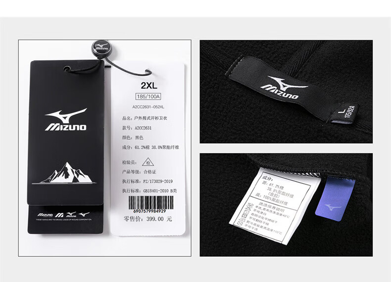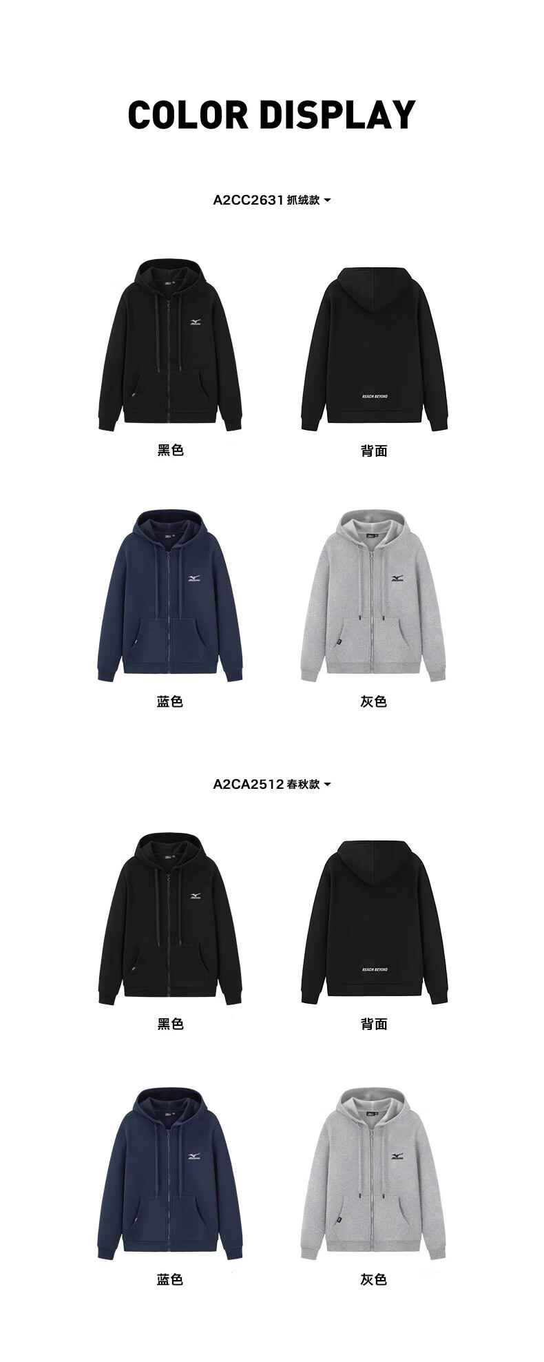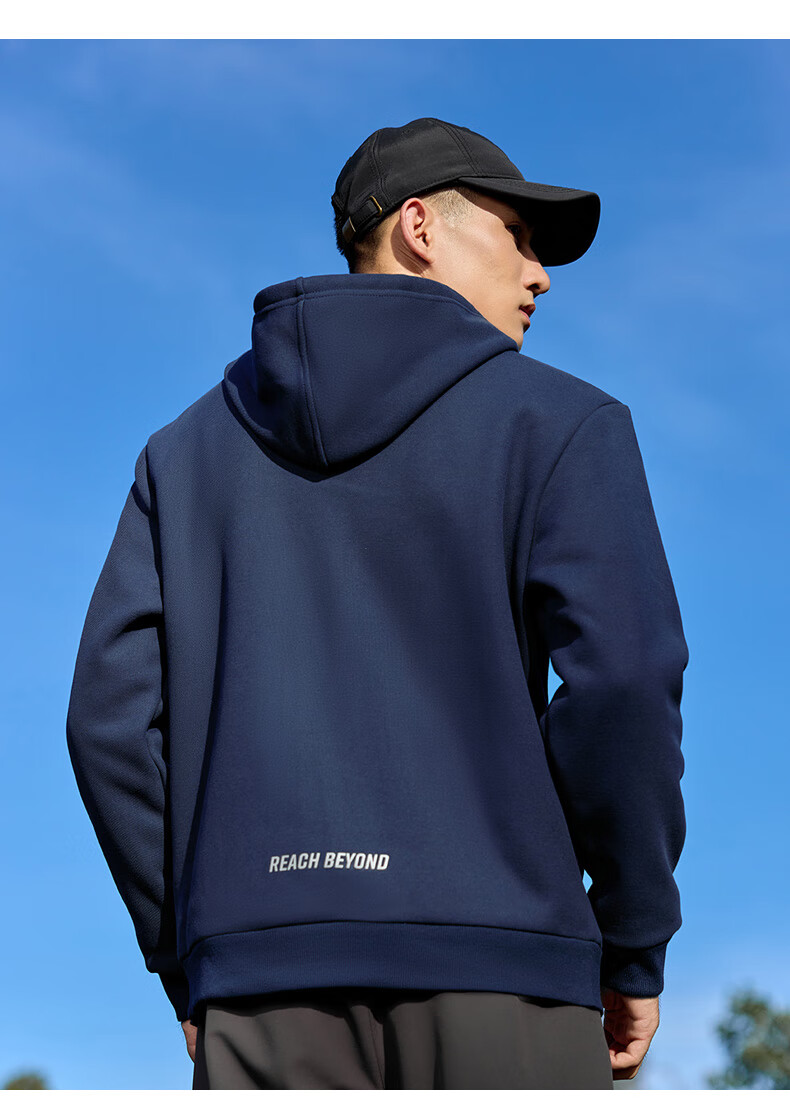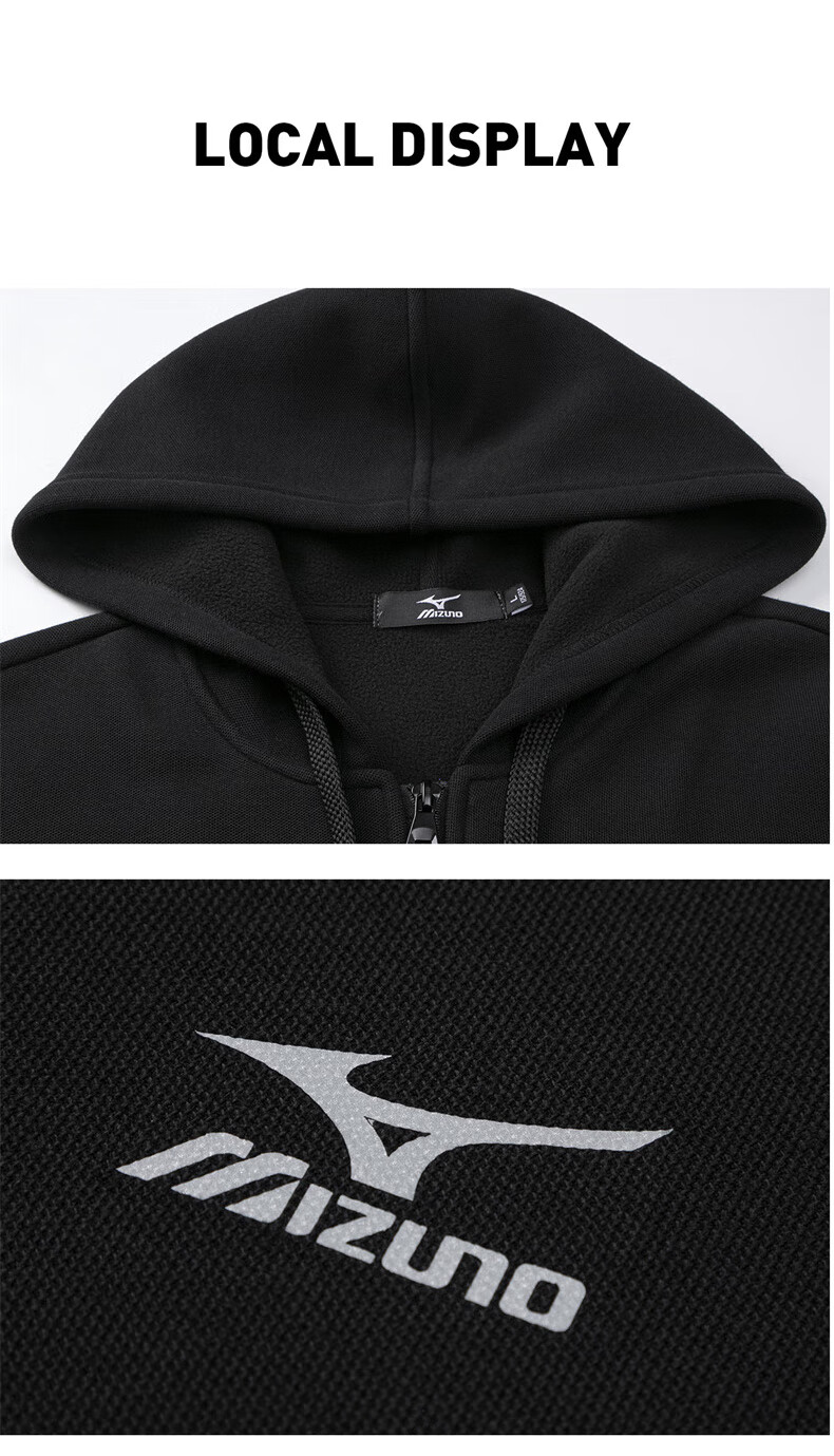 Mizuno MIZUNO outdoor casual sweatshirt men's spring, autumn and winter hooded cardigan plus velvet thickened jacket men's solid color loose