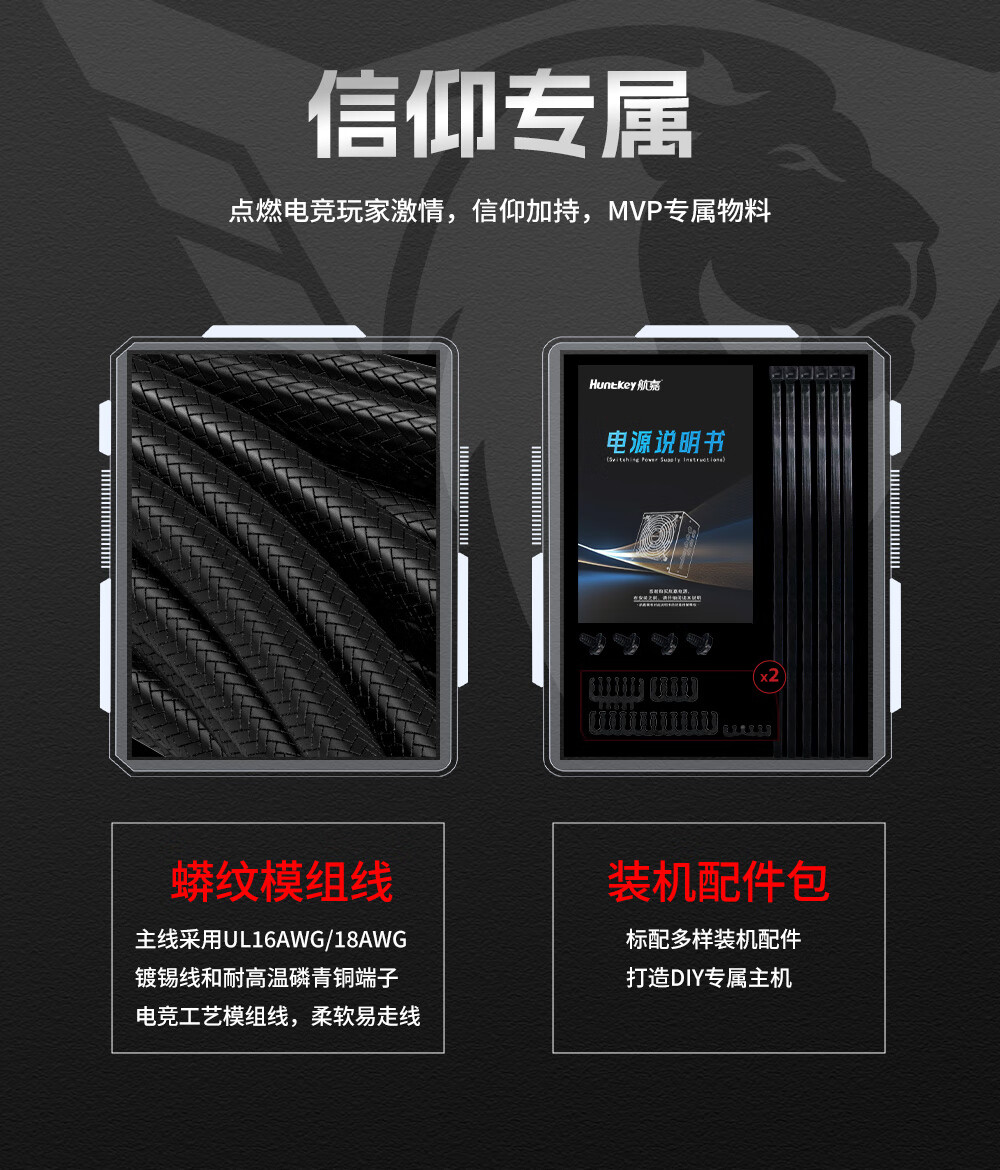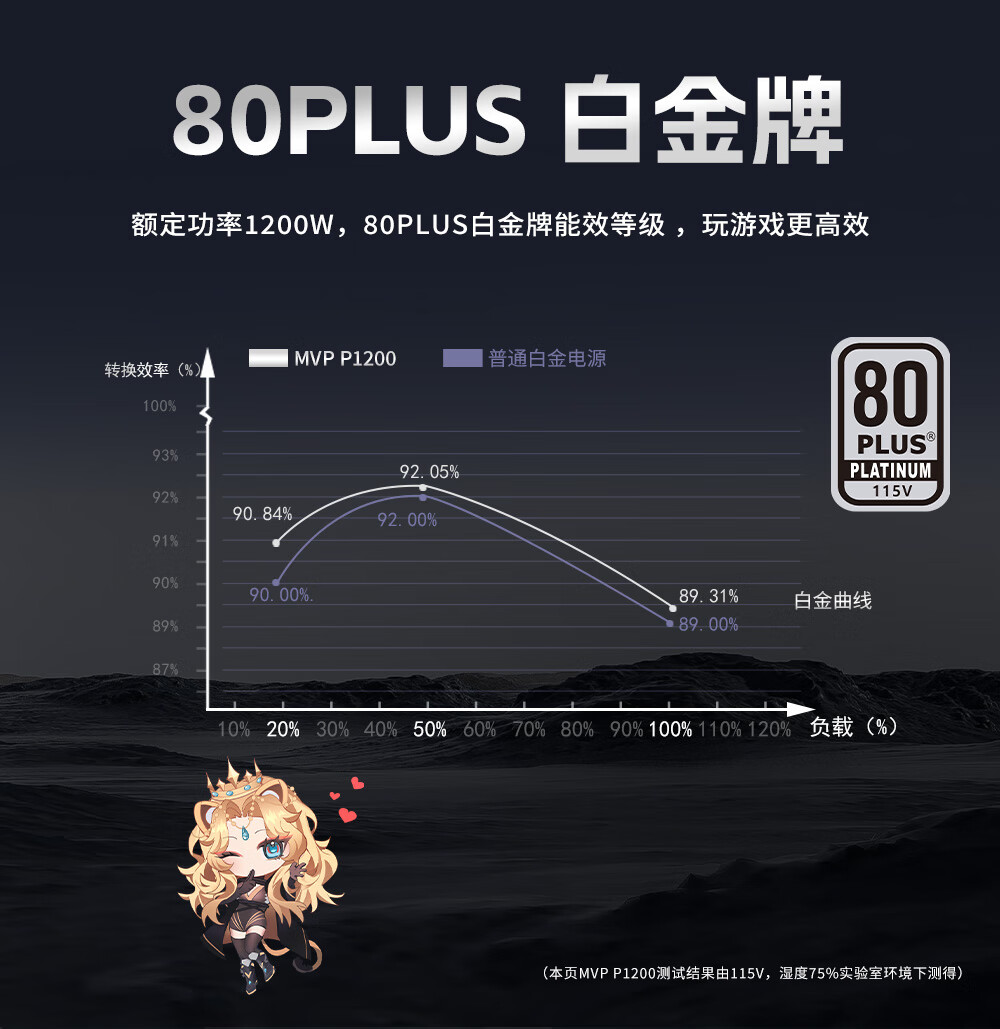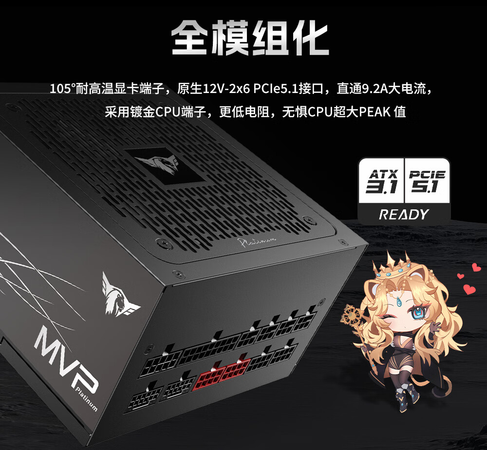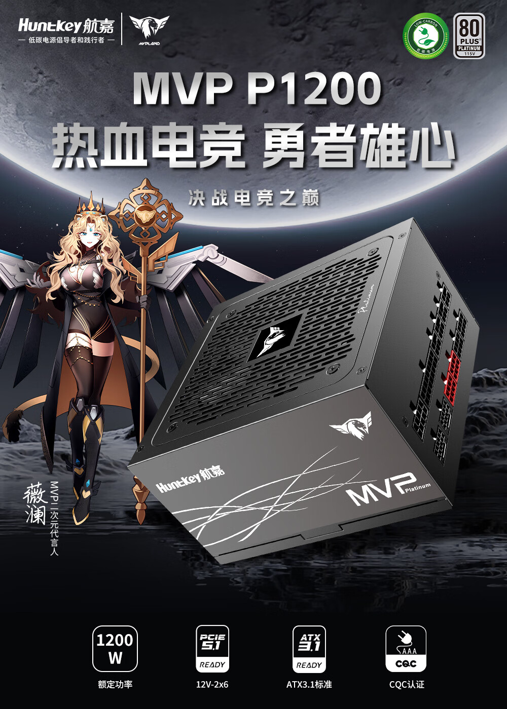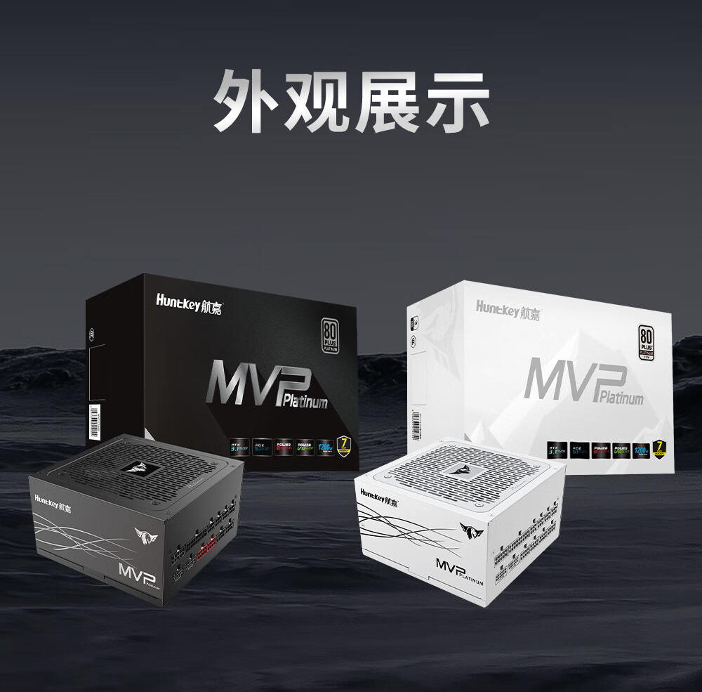 航嘉(Huntkey)MVP P1200黑色白金牌1200W电源(ATX3.1/80PLUS白金全模组/原生PCIe5.1/风扇启停/延时冷却)
