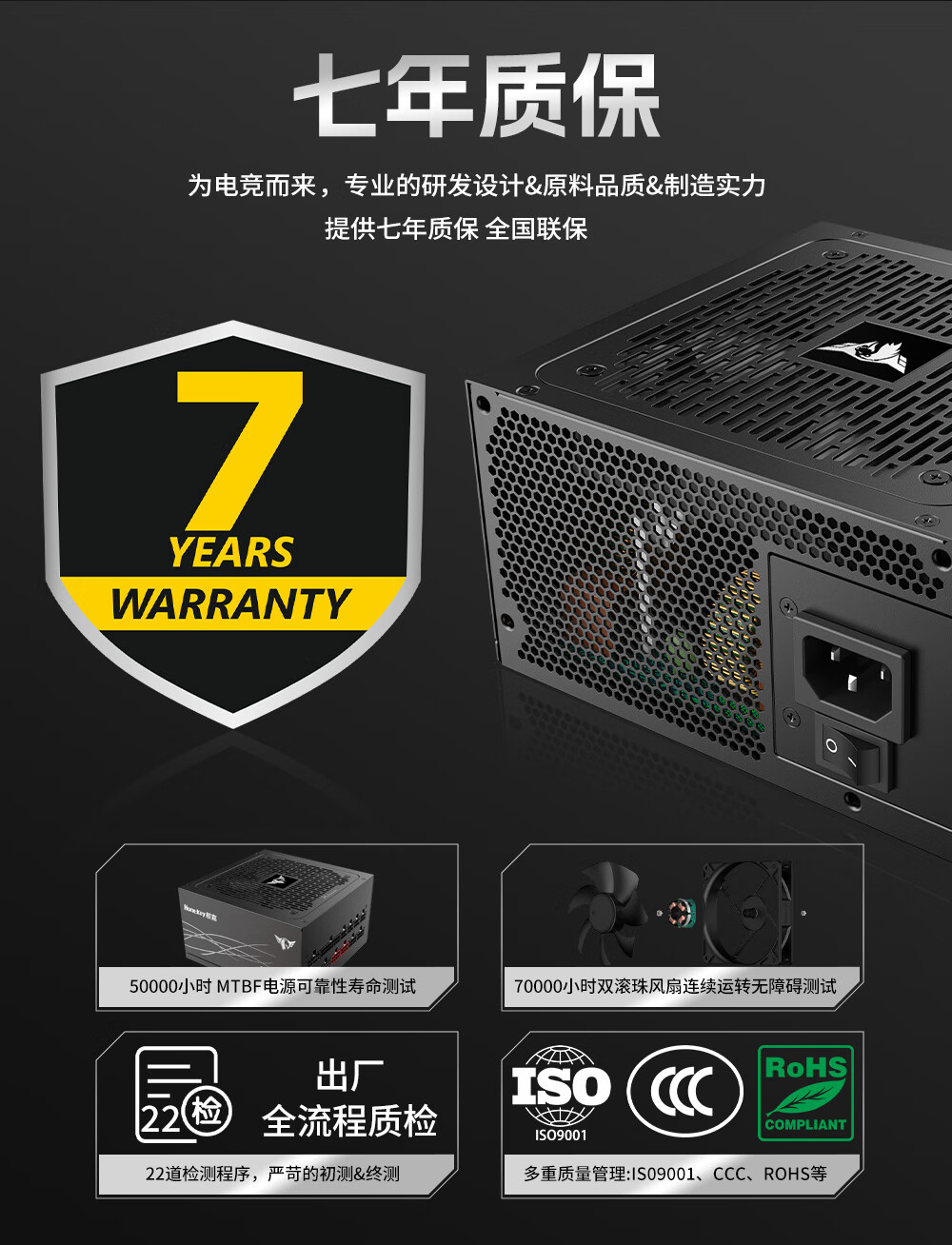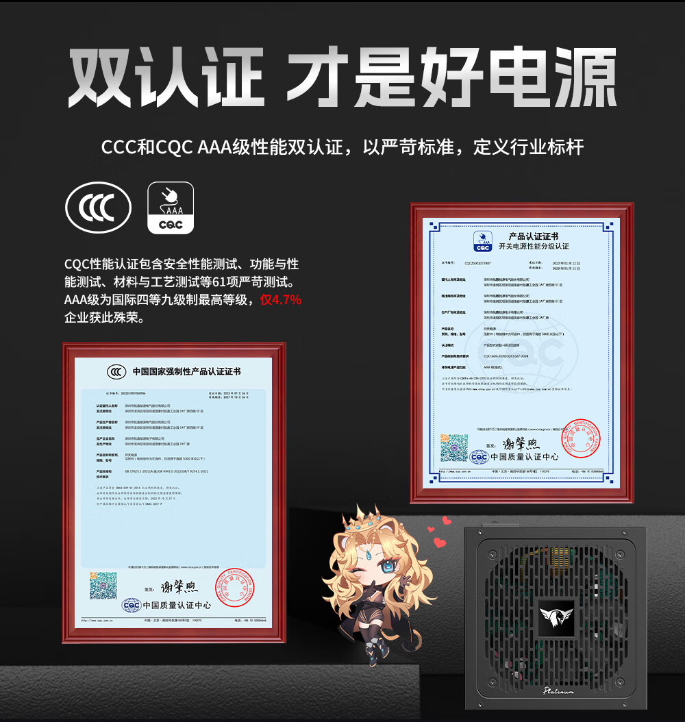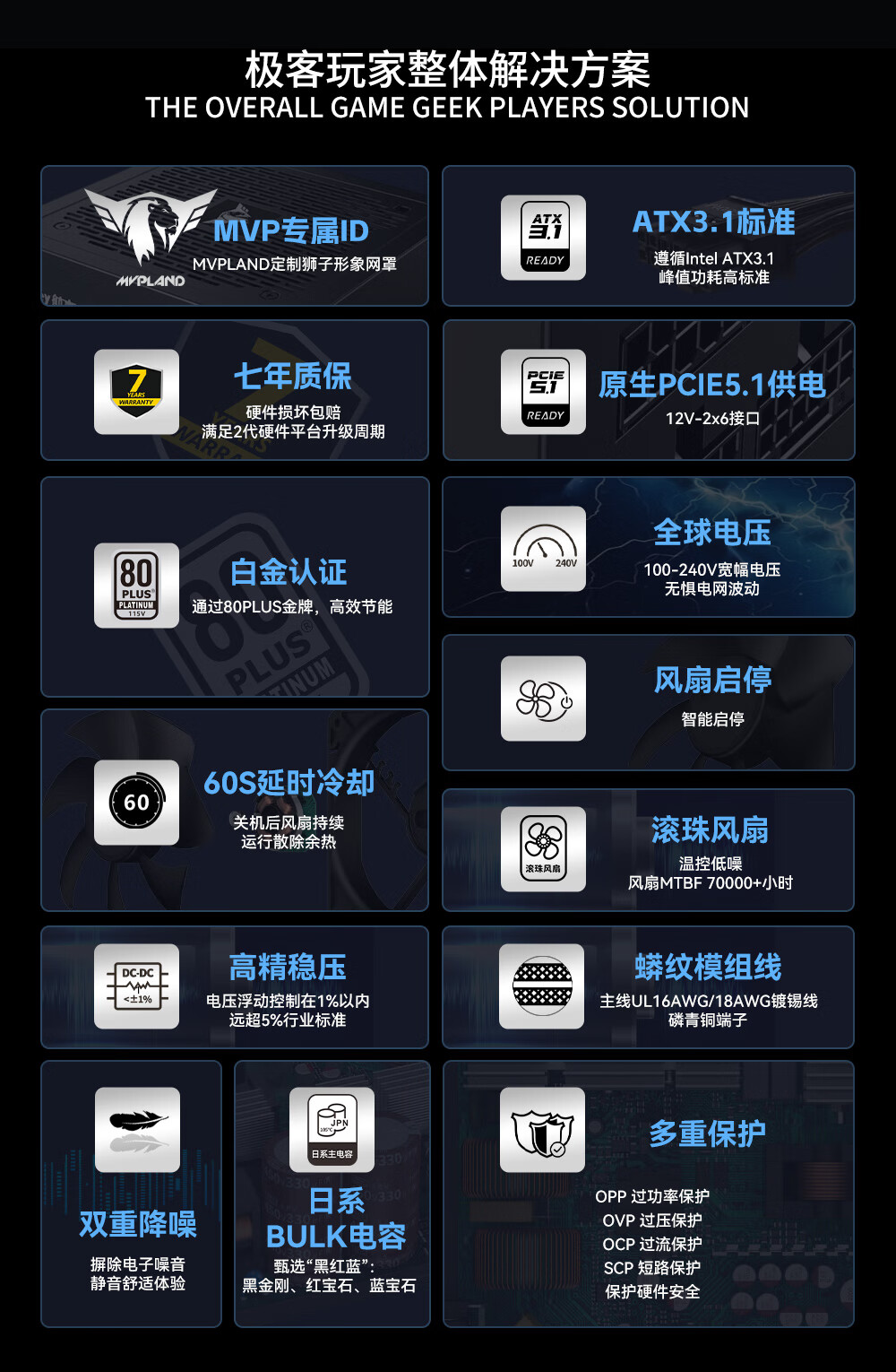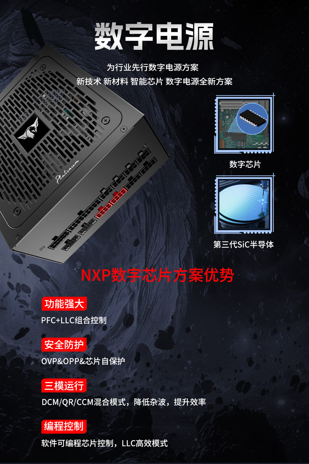 航嘉(Huntkey)MVP P1200黑色白金牌1200W电源(ATX3.1/80PLUS白金全模组/原生PCIe5.1/风扇启停/延时冷却)
