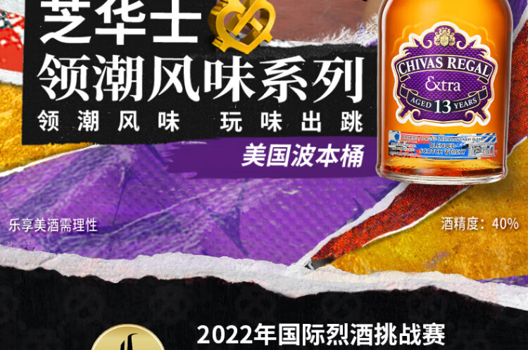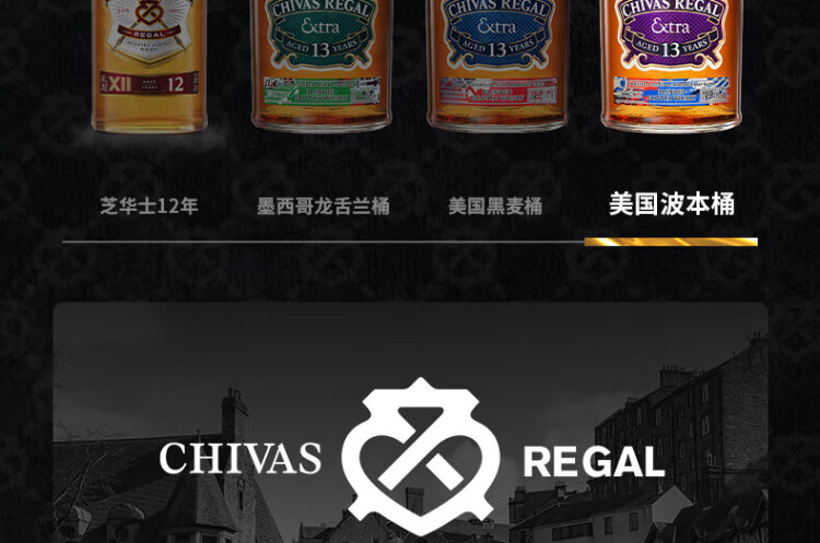 芝华士(Chivas Regal)领潮风味系列苏格兰调和威士忌波本桶500ml