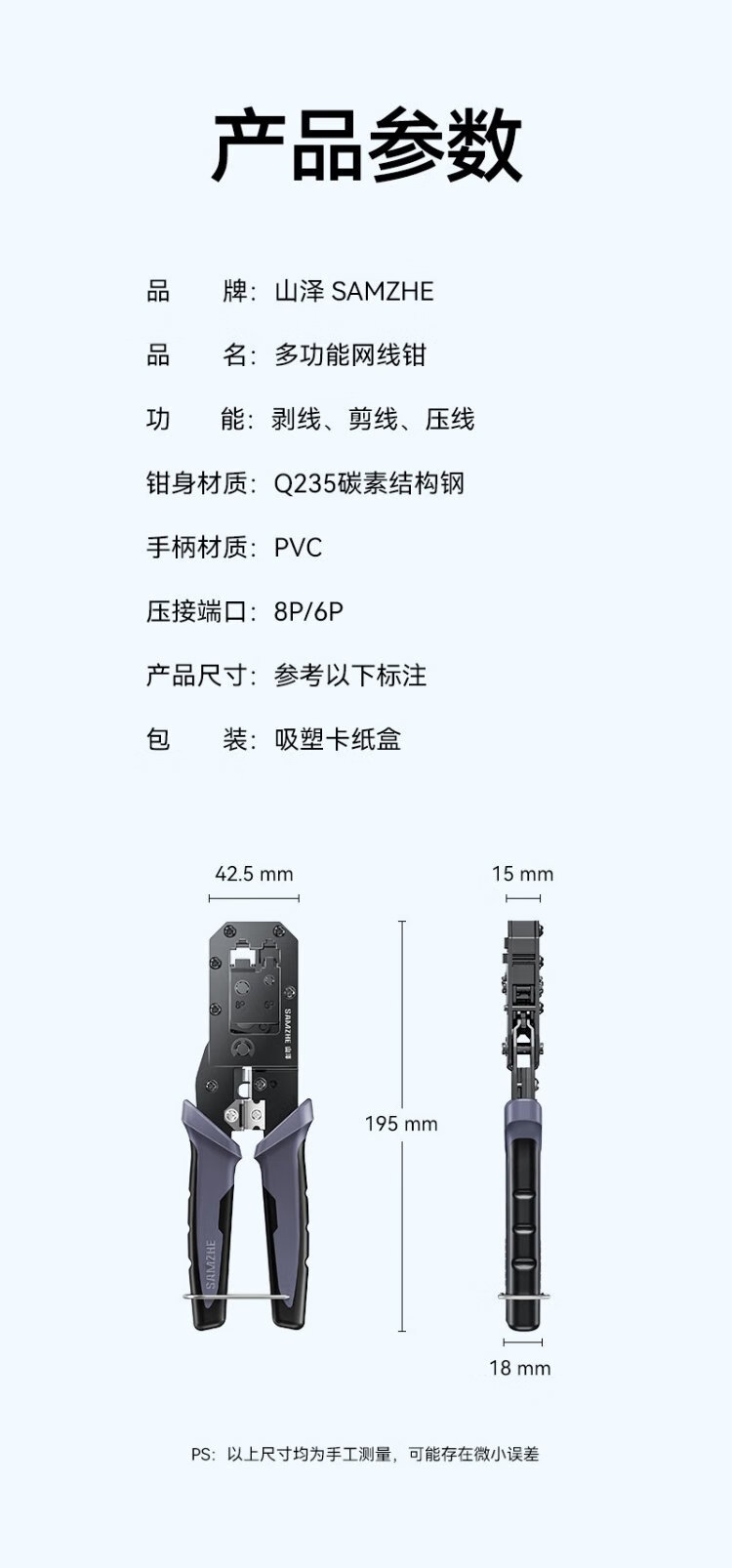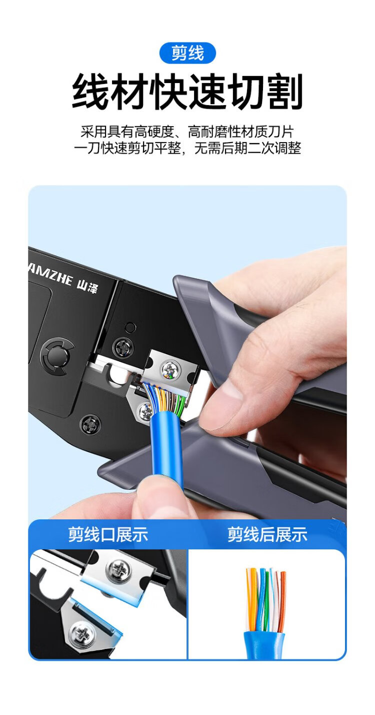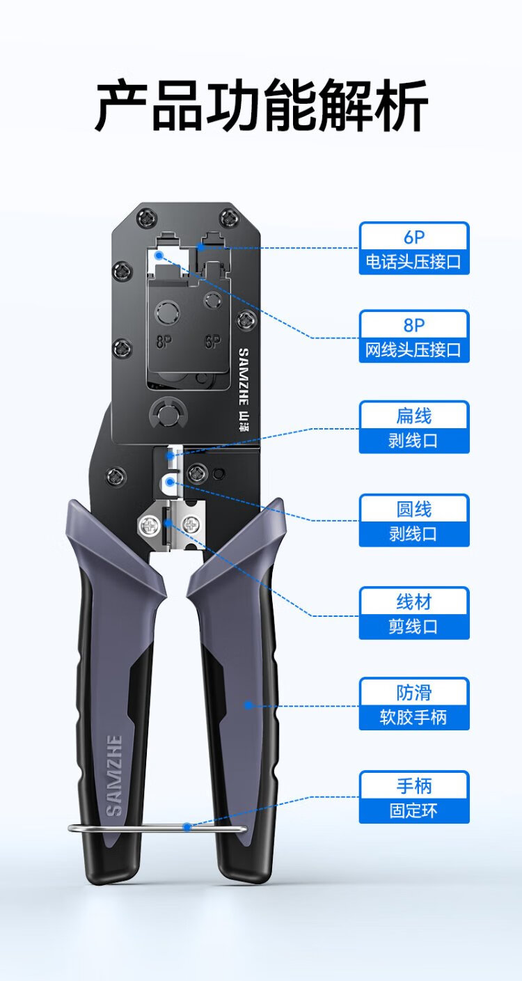 Shanze network cable pliers, Internet phone crystal head crimping pliers, 6P/8P dual-purpose multi-functional labor-saving stripping and cutting pliers, crimping crystal head tool GD-187