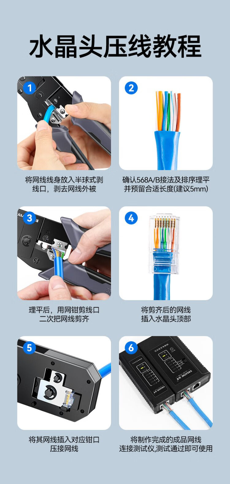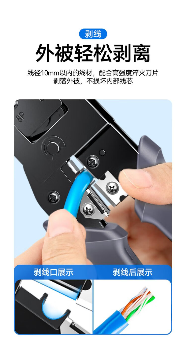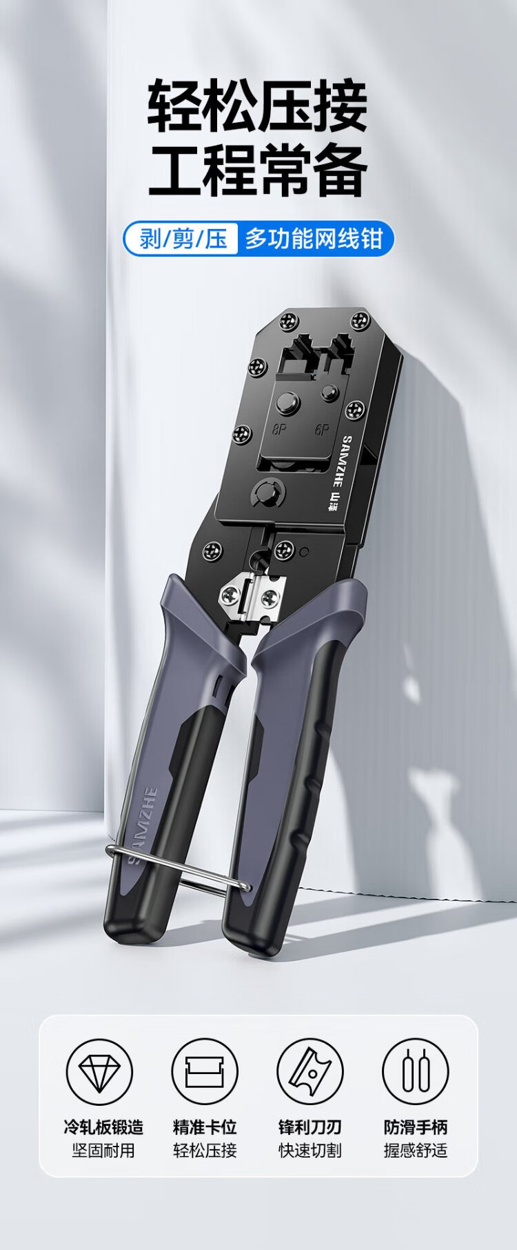 Shanze network cable pliers, Internet phone crystal head crimping pliers, 6P/8P dual-purpose multi-functional labor-saving stripping and cutting pliers, crimping crystal head tool GD-187