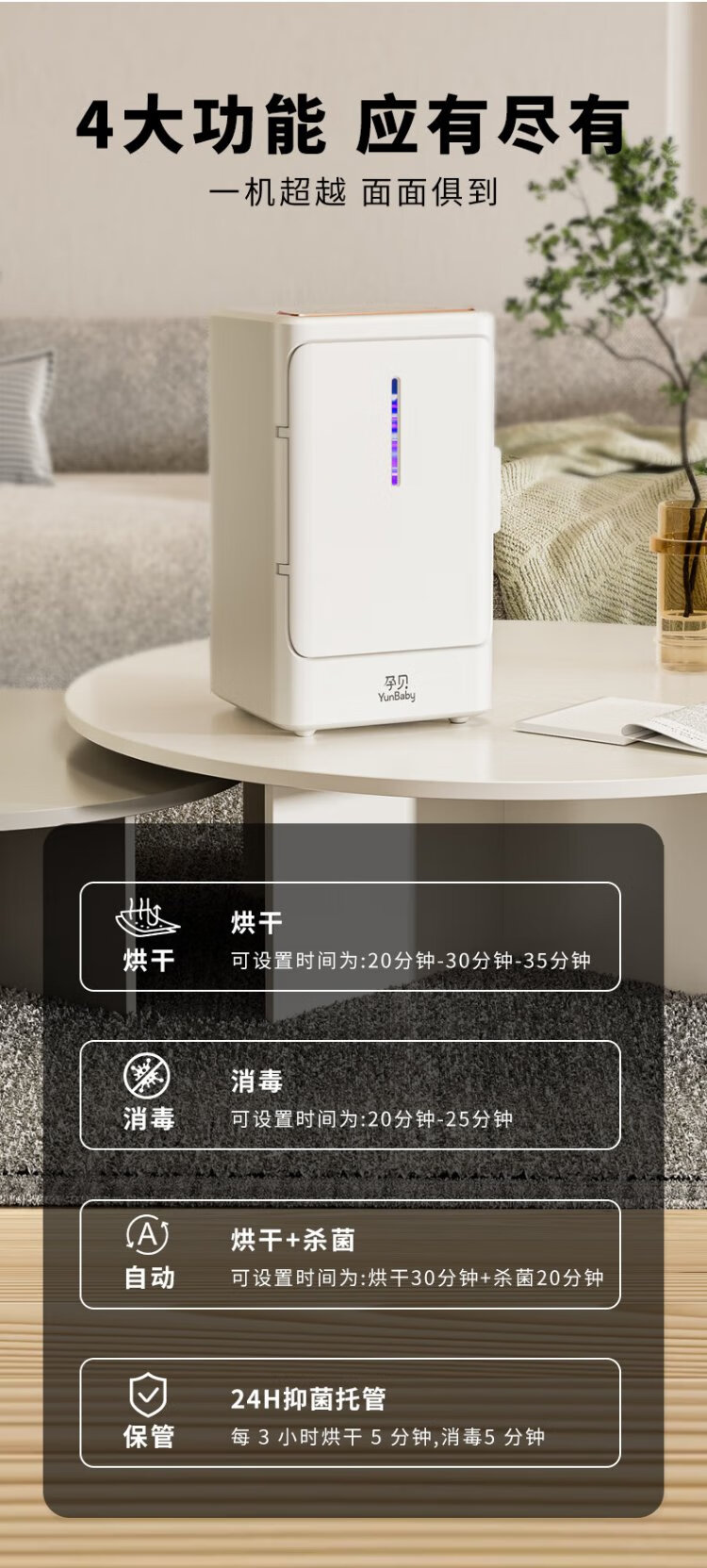 Pregnant baby bottle sterilizer with drying UV baby sterilizer 8 lights high temperature drying 6.5L