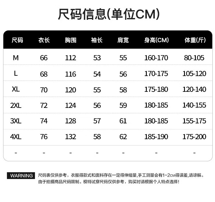 China (cm) 160-165/84-86 165-170 / 88-90 167-172 / 92-96 168-173 / 98-102 170-176 / 106-110