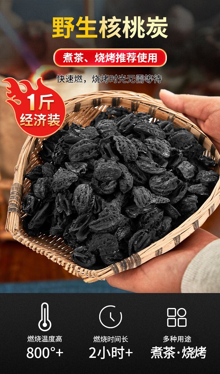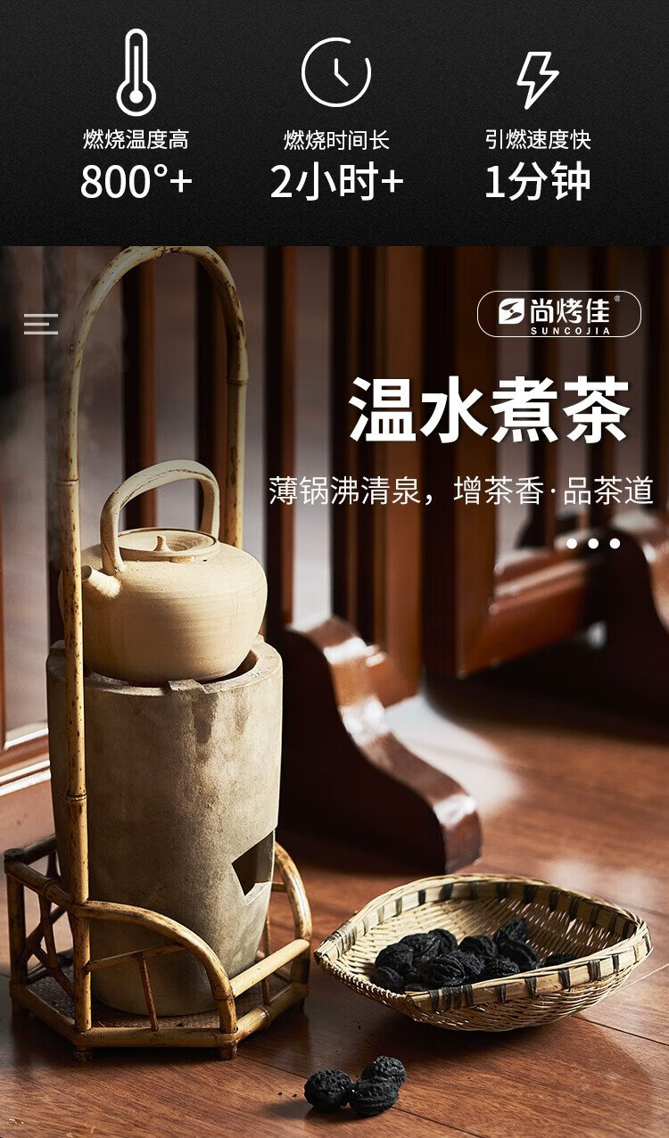 尚烤佳(Suncojia)煮茶炭 核桃炭 果木炭 龙眼炭 无烟烧烤碳 茶炉专用炭 经济装1斤