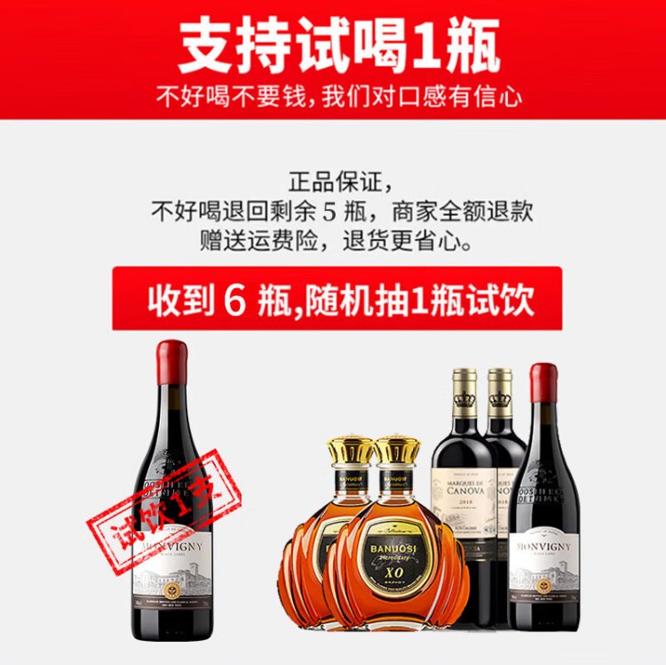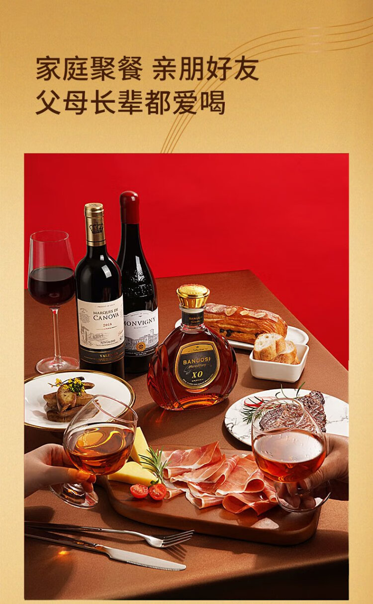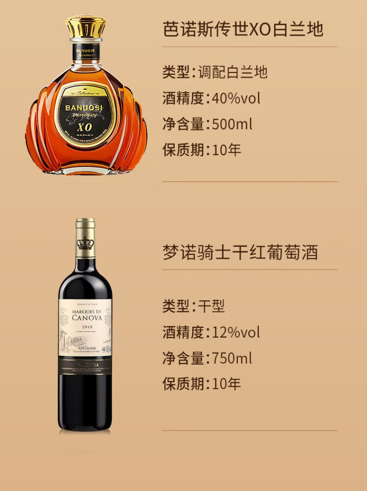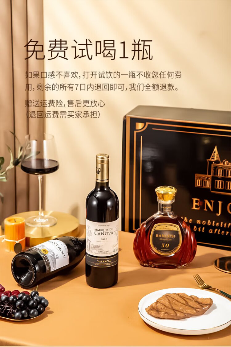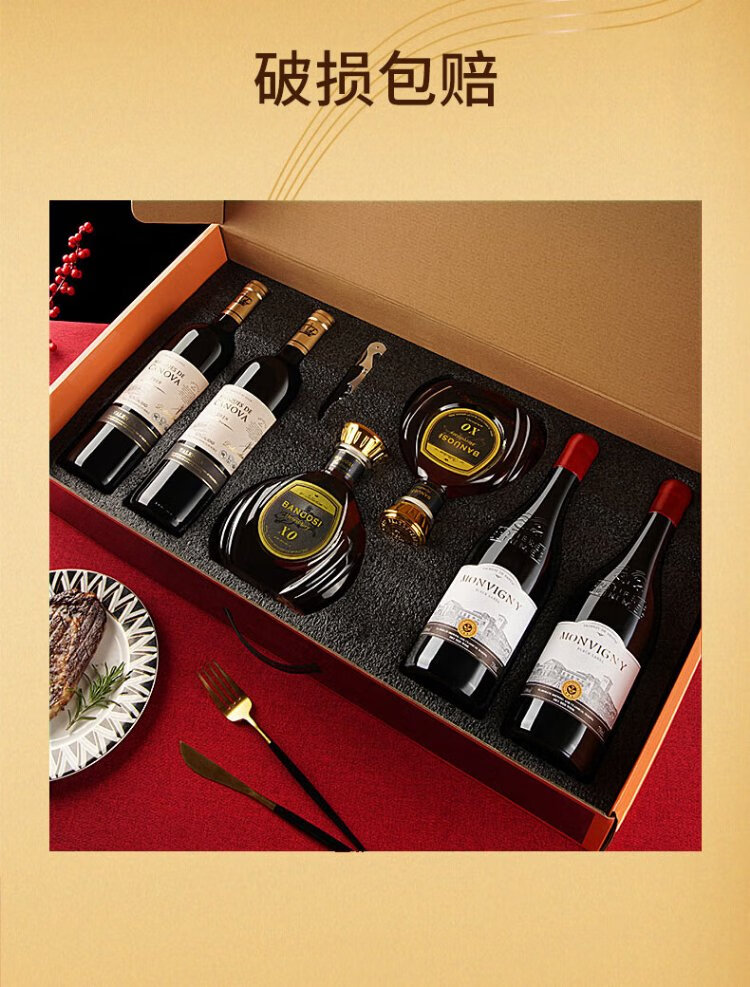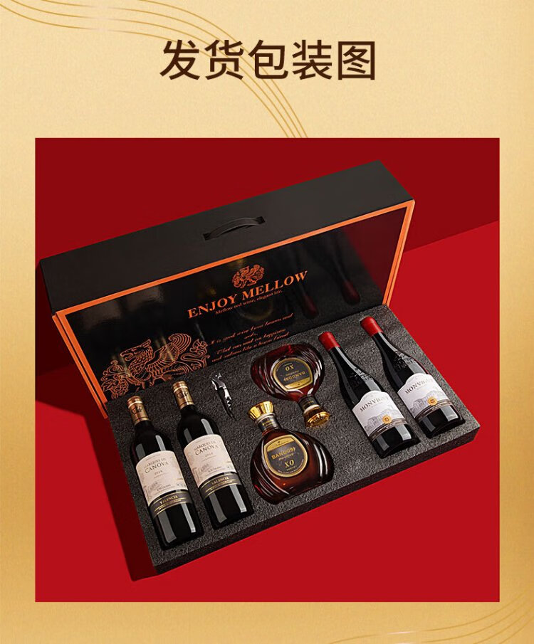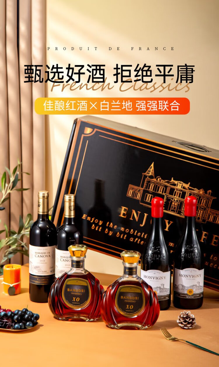 歌瑞安 法国进口14度红酒12度干红葡萄酒XO白兰地红洋酒组合整箱礼盒装