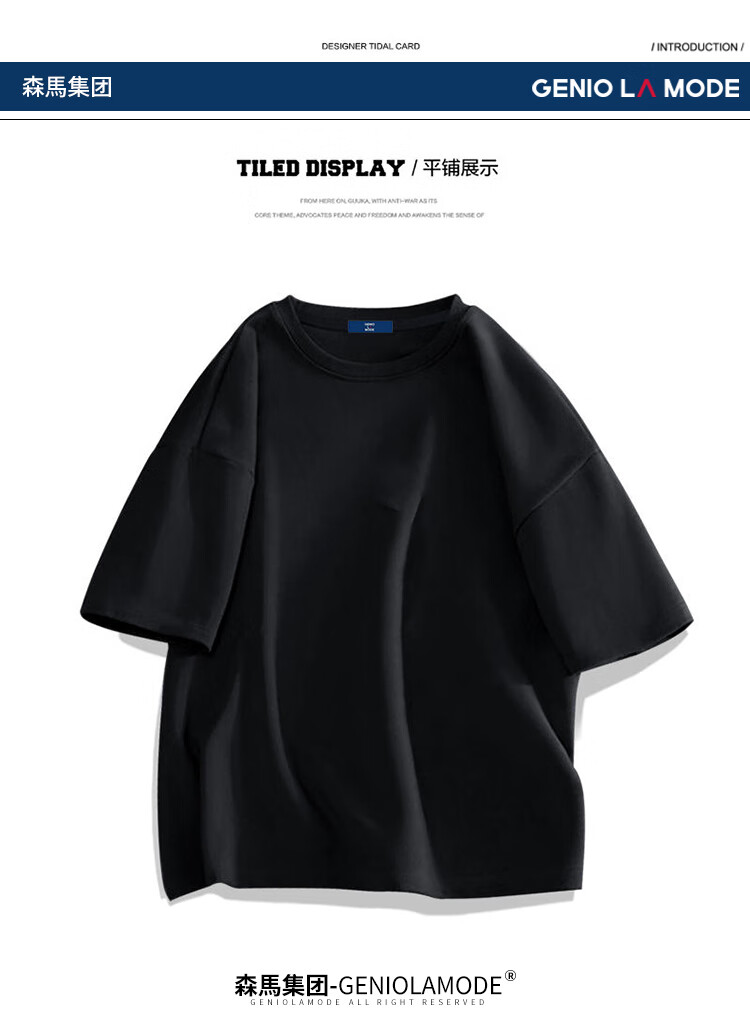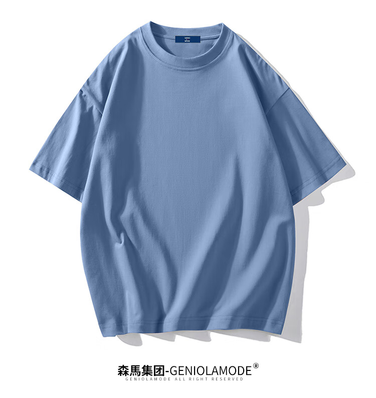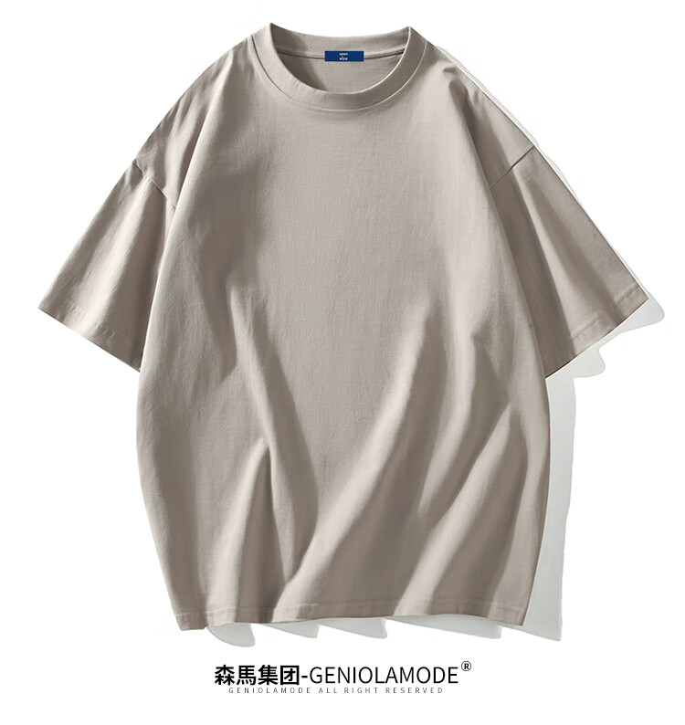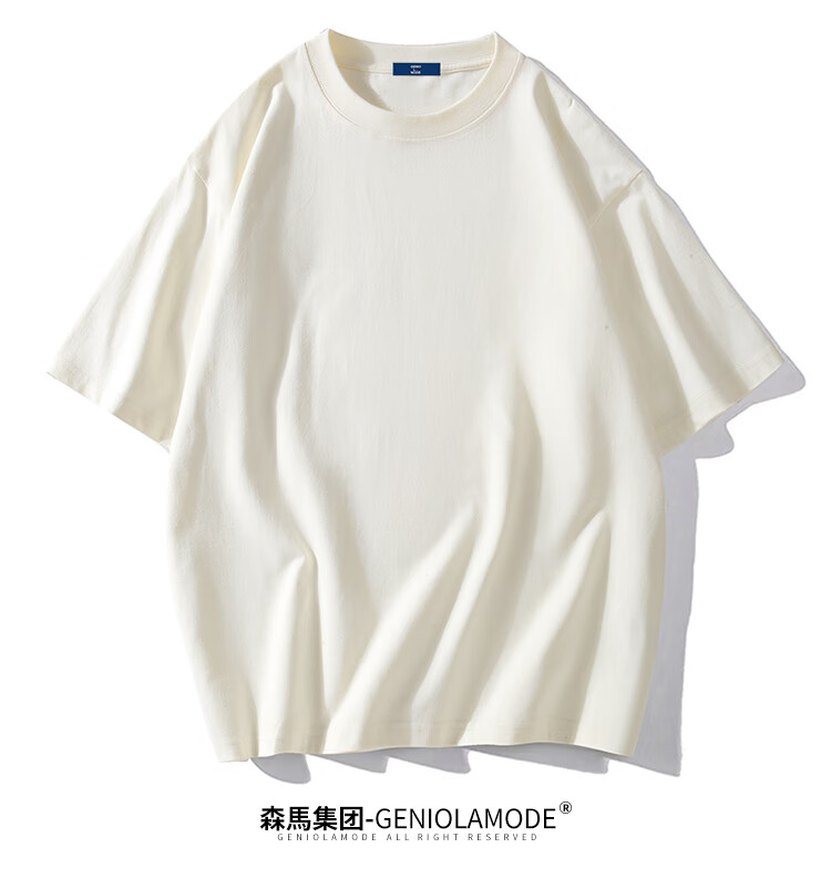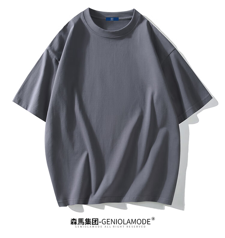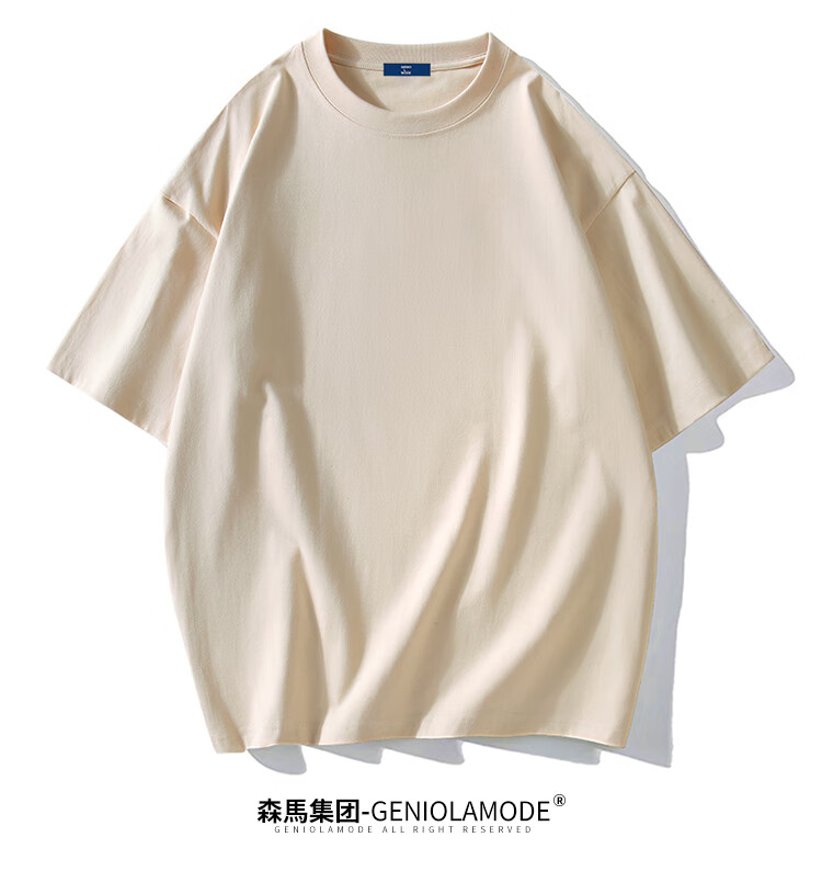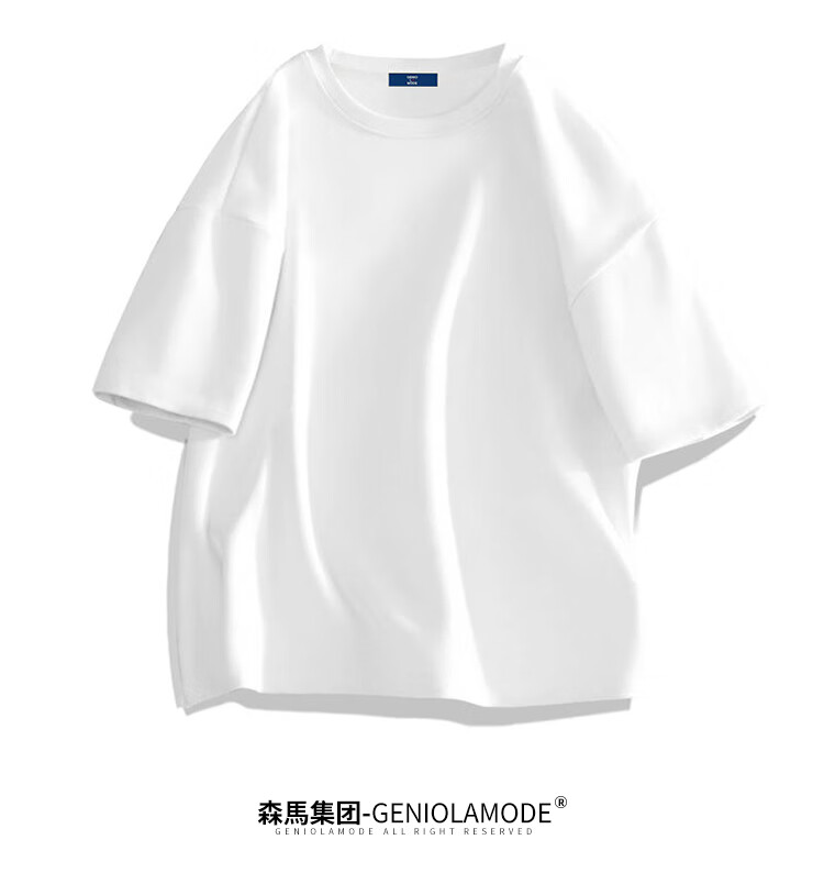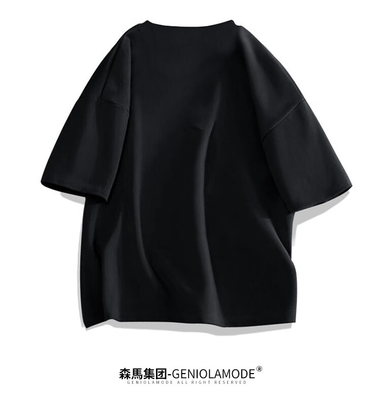 GENIOLAMODE森马集团短袖T恤男纯色基础宽松休闲纯棉五分袖舒适潮牌百搭t恤